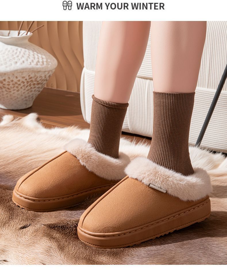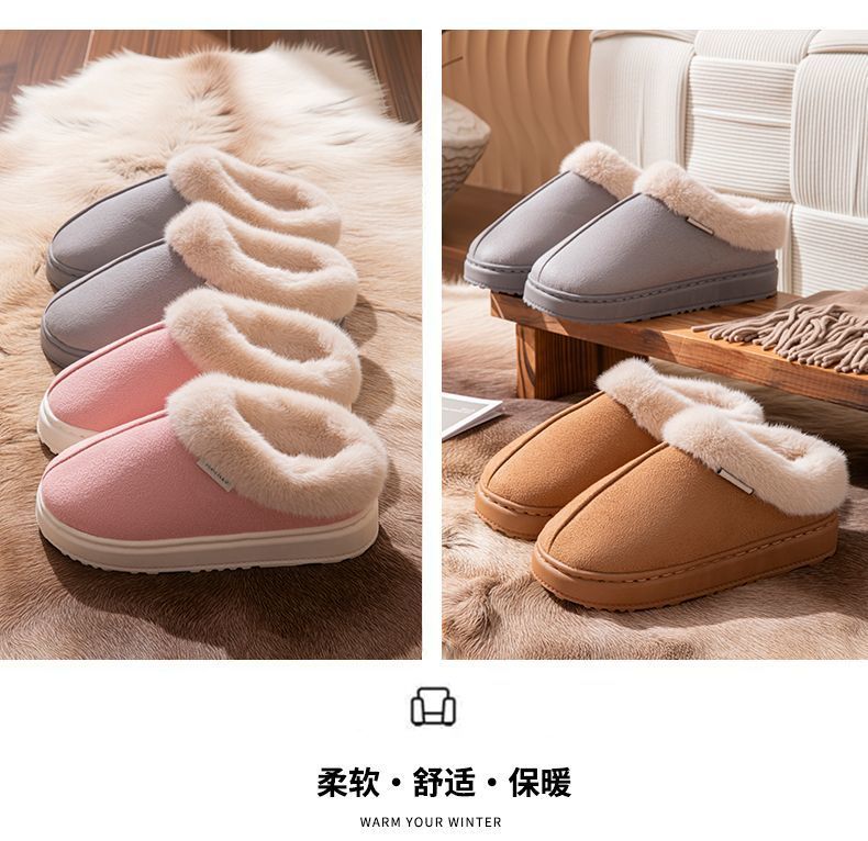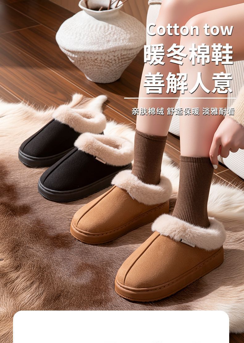 毛口棉拖鞋女士新款秋冬季厚底家居室內防滑保暖毛絨情侶男士2025