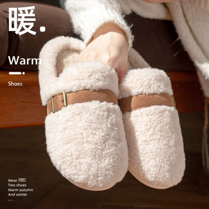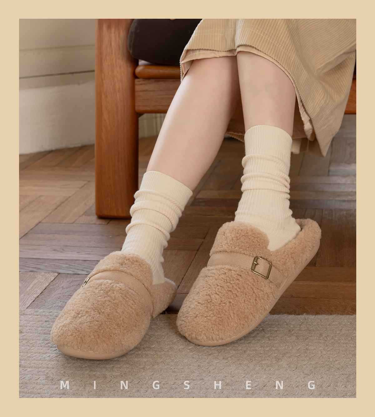 2025毛毛絨拖鞋女新款秋冬季防滑居家保暖棉拖鞋半拖外穿時尚勃肯