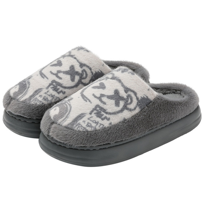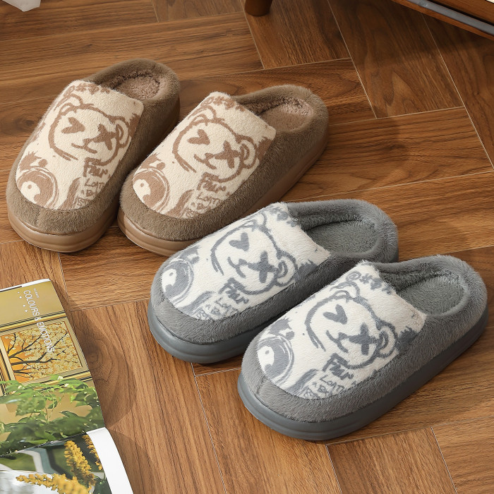 秋冬可愛小熊棉拖鞋男包頭居家加絨保暖耐磨防滑軟底棉拖男士