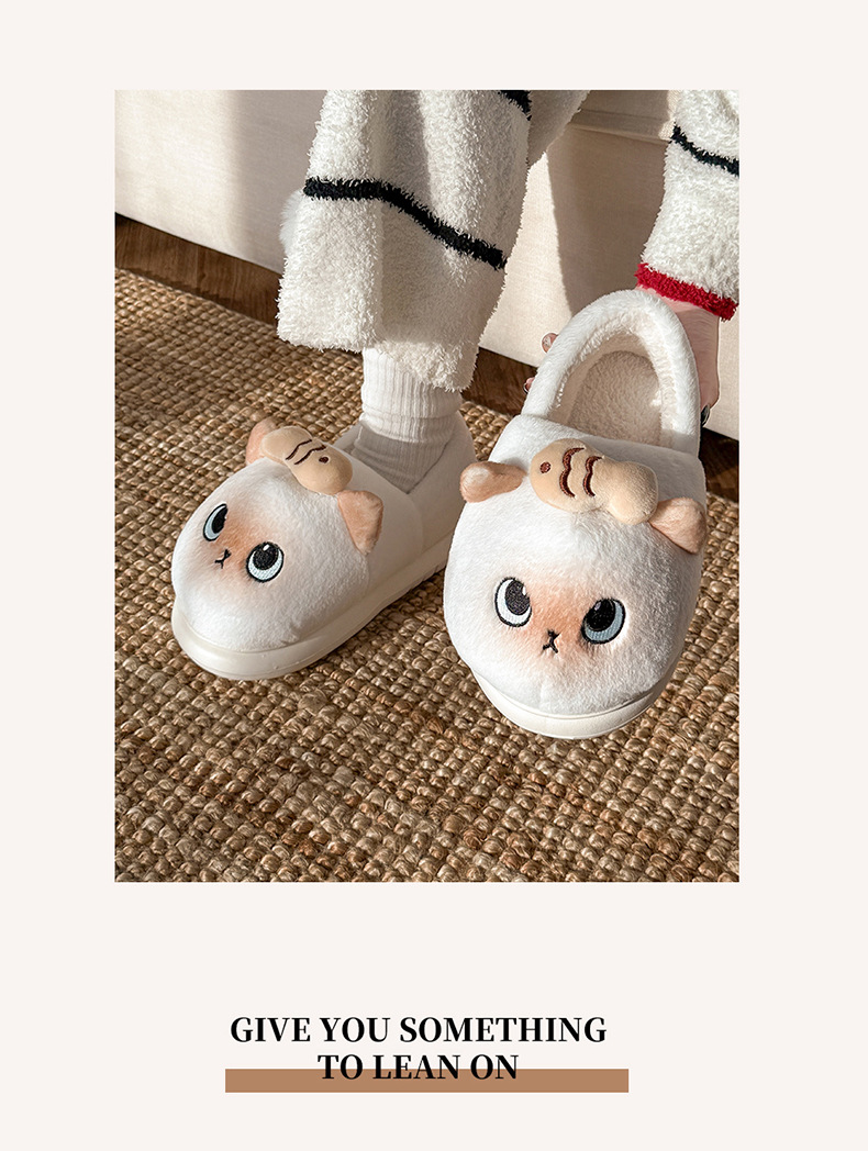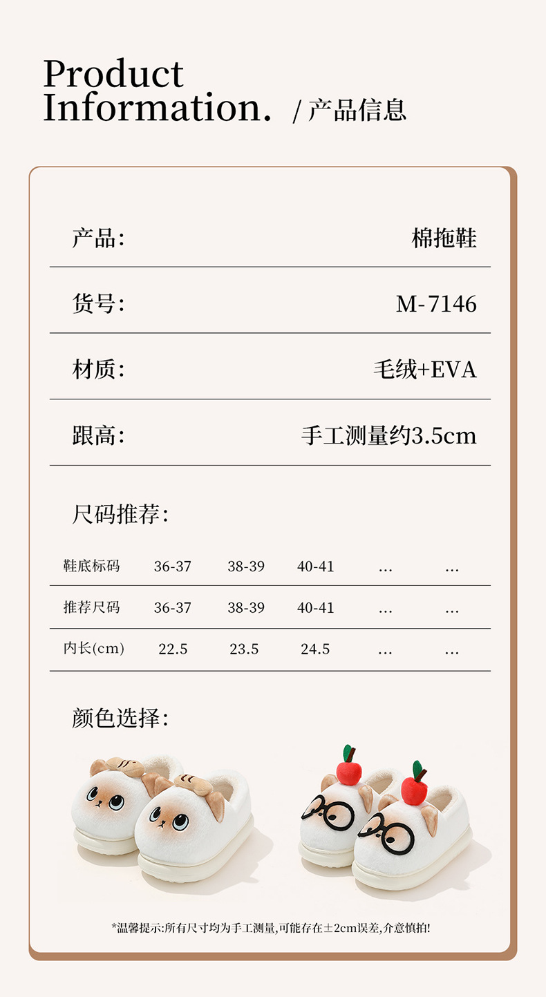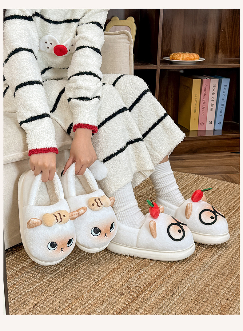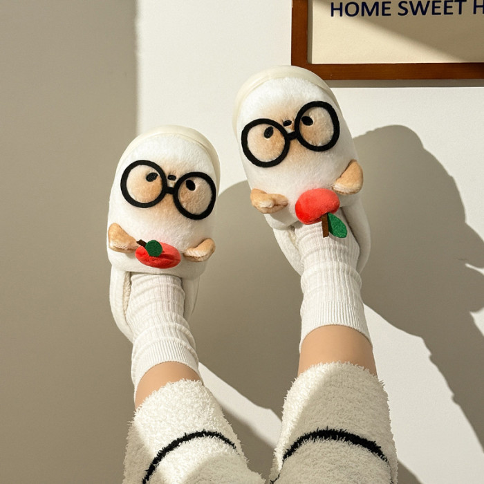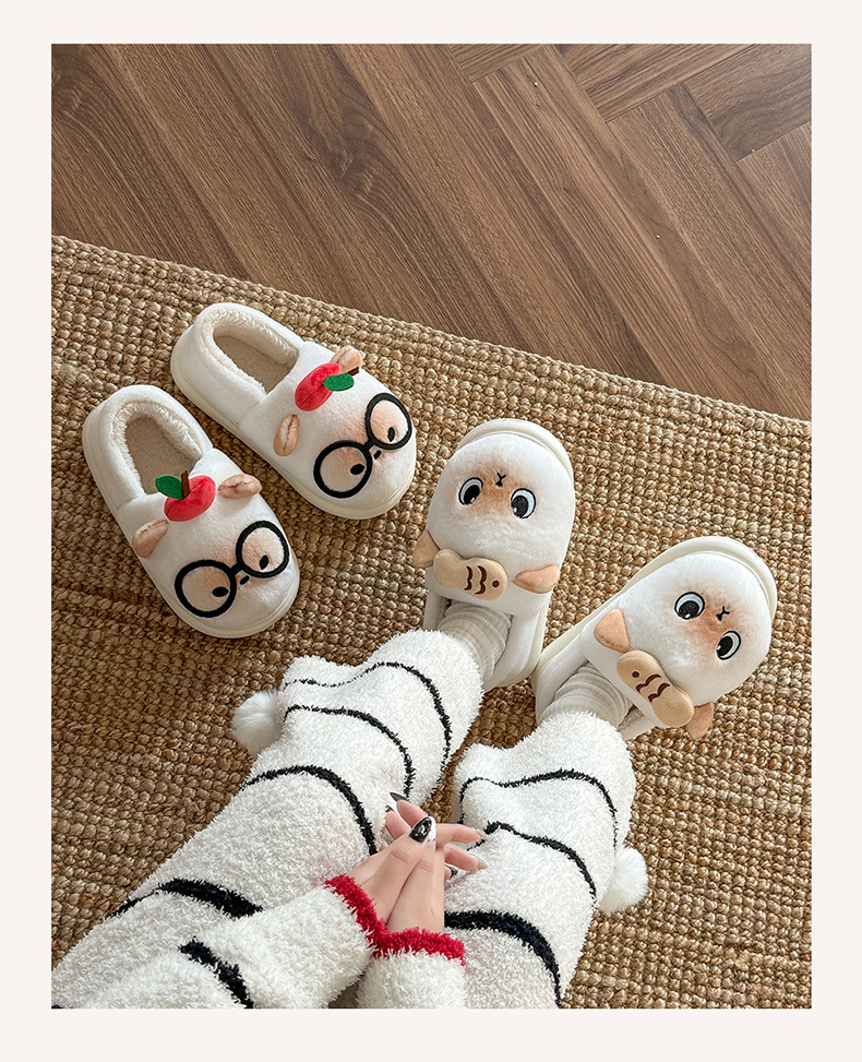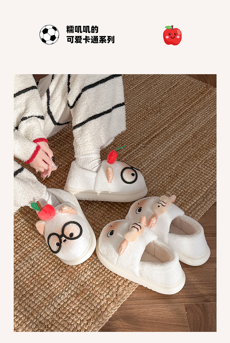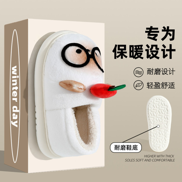 秋冬季棉拖鞋女踩屎感卡通大眼型室內居家保暖加絨厚底情侶棉拖鞋