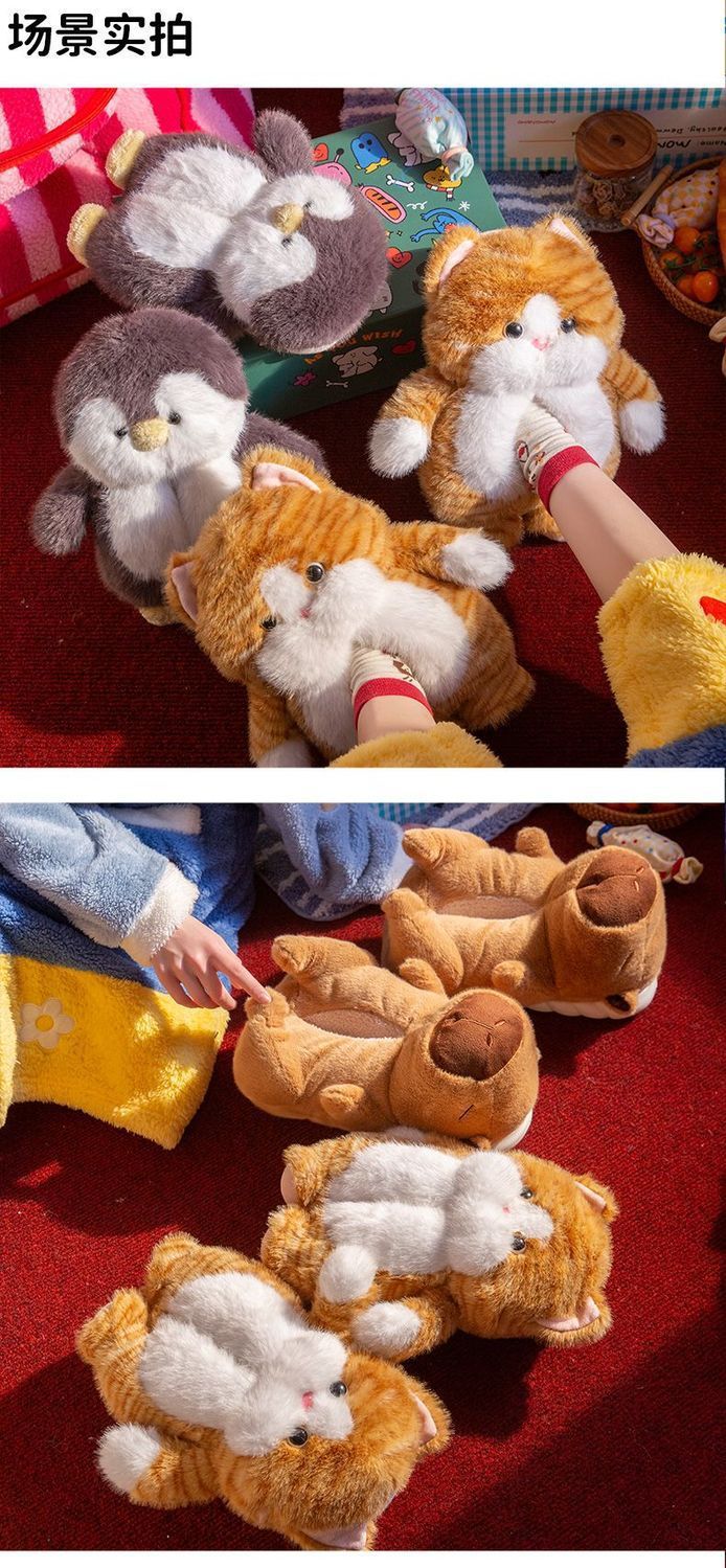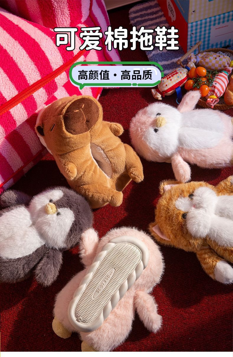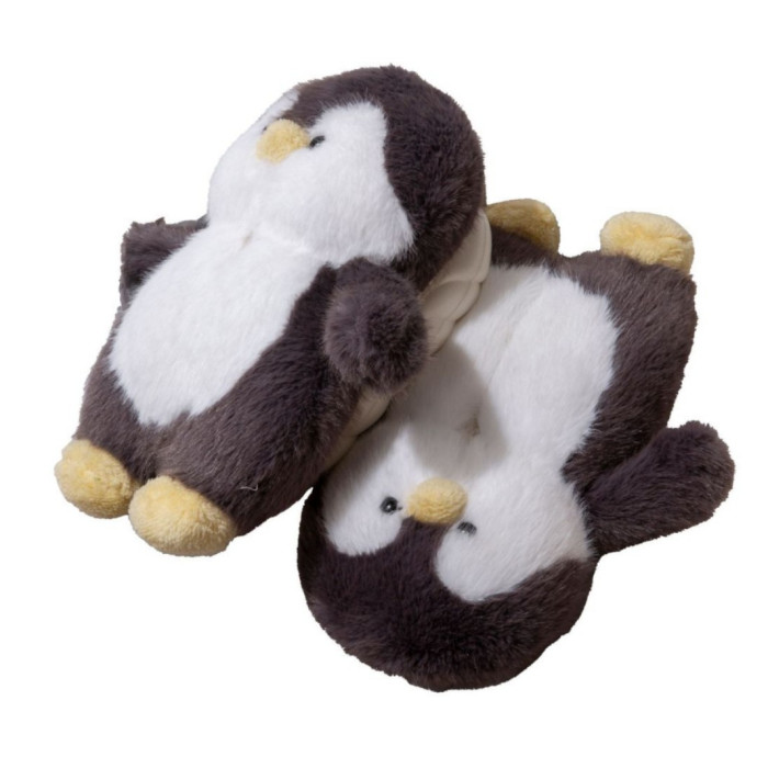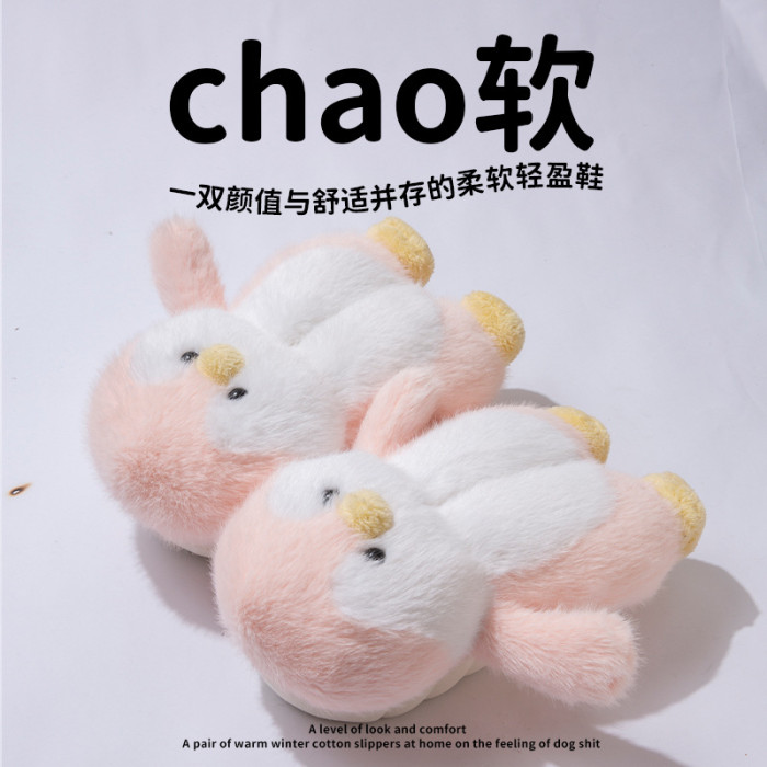 可愛小企鵞毛毛絨拖鞋女款冬季包跟居家保暖厚底加絨外穿棉拖鞋男