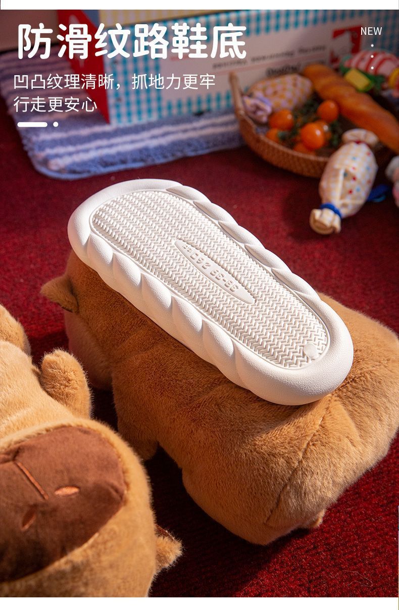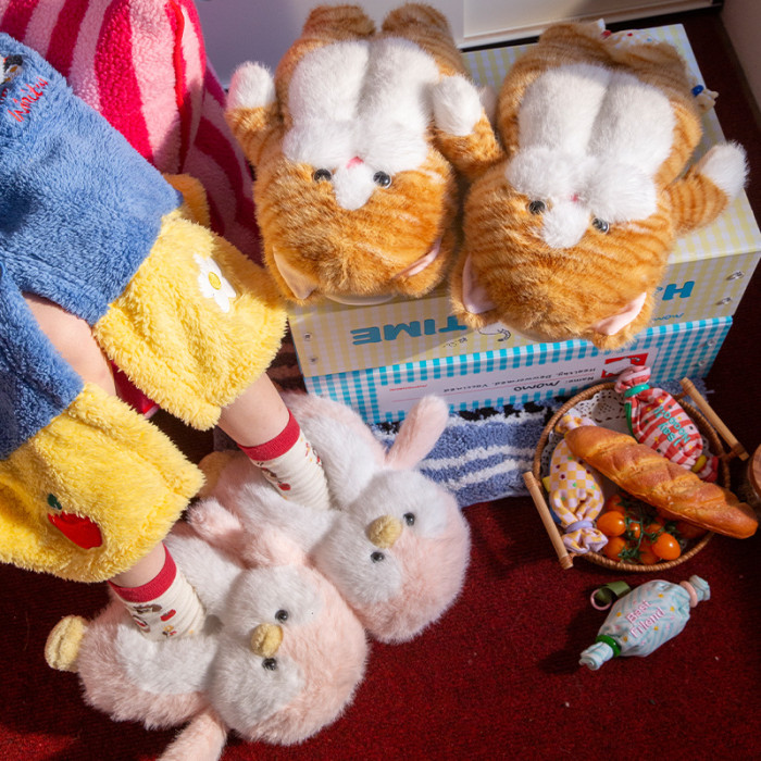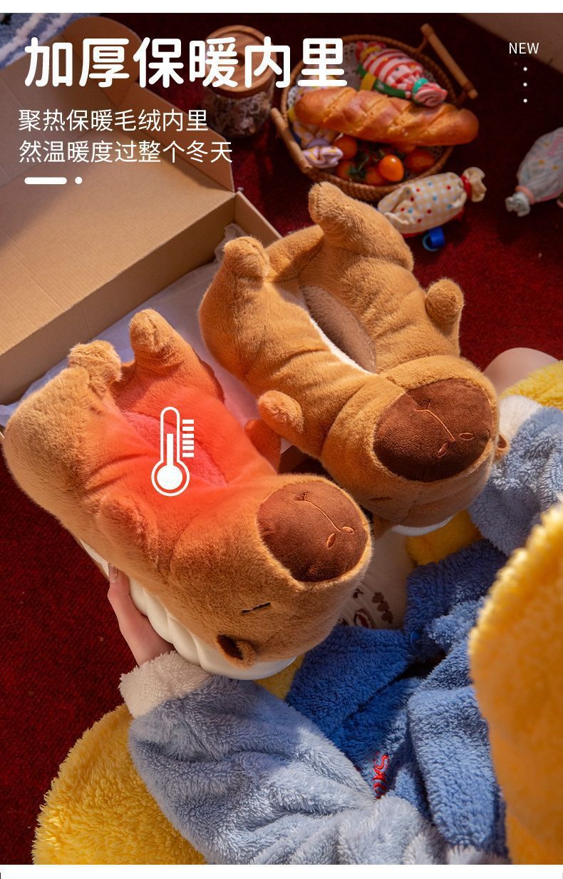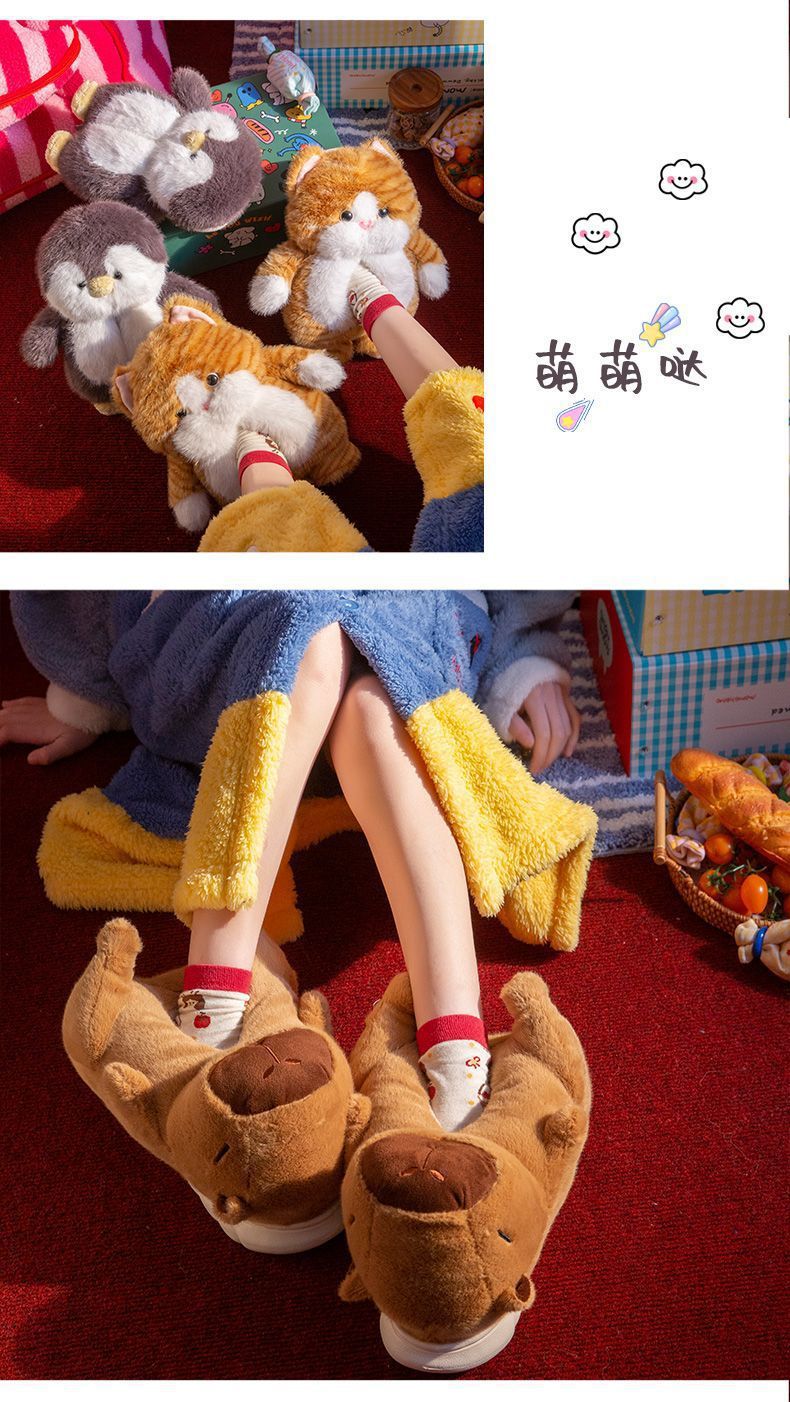 可愛小企鵞毛毛絨拖鞋女款冬季包跟居家保暖厚底加絨外穿棉拖鞋男