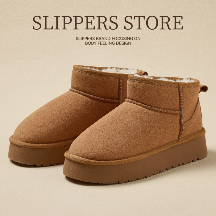 麂皮絨雪地靴女冬季外穿厚底防滑家居厚毛絨保暖包跟棉鞋女款