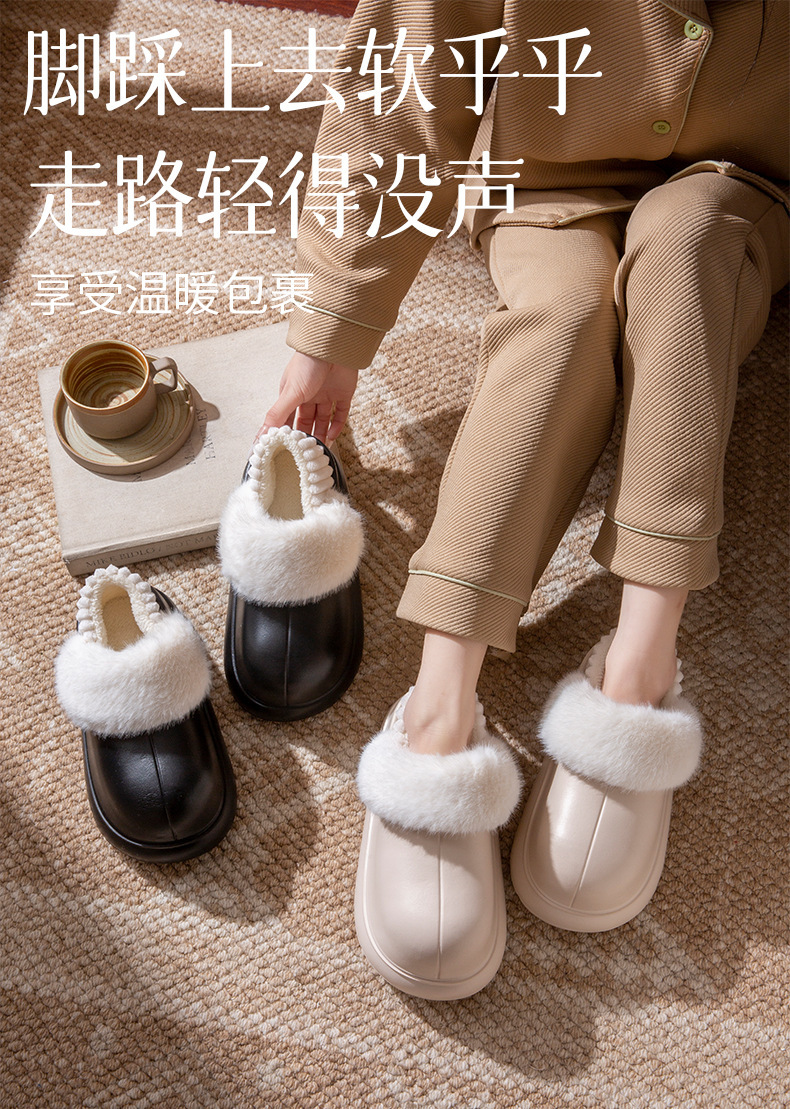 厚底增高可拆洗棉拖鞋女2025新款爆款秋冬外穿加絨包跟防水棉鞋女