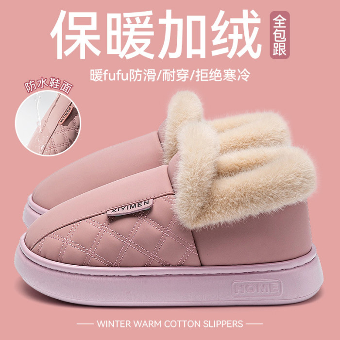 棉拖鞋女款2025新款冬季室內家居厚底保暖加絨包跟防水月子棉鞋女