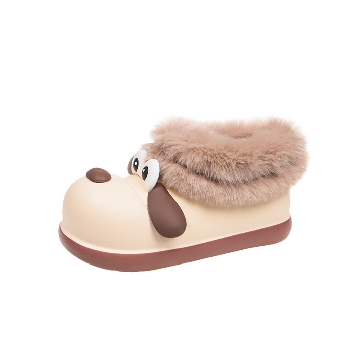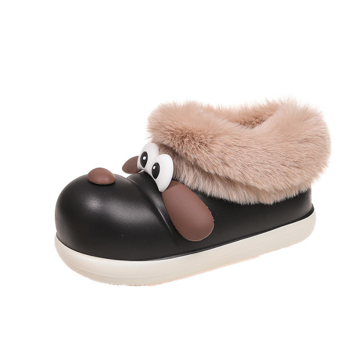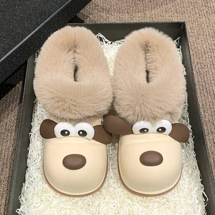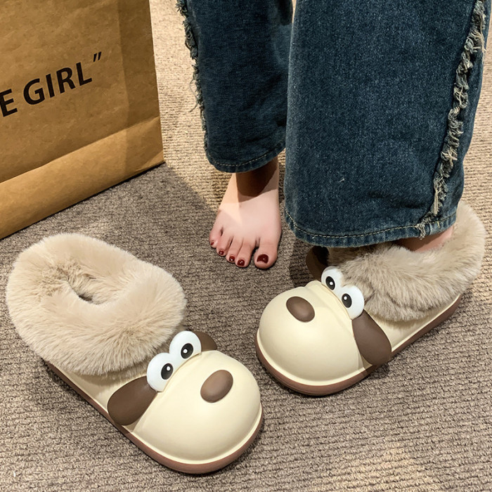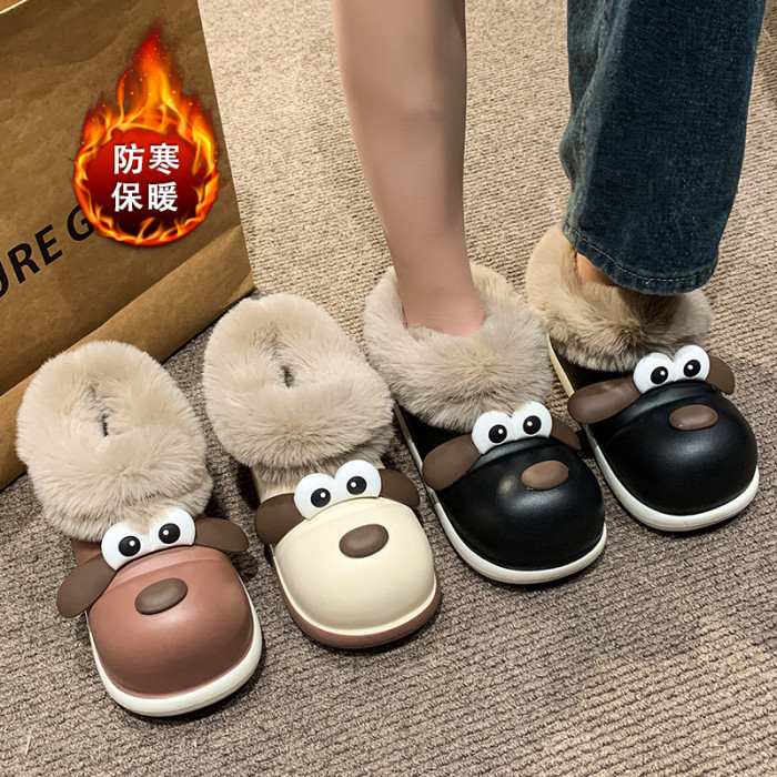 可愛大眼狗棉拖鞋女外穿防滑2025新款保暖厚底增高包頭沙灘涼拖鞋