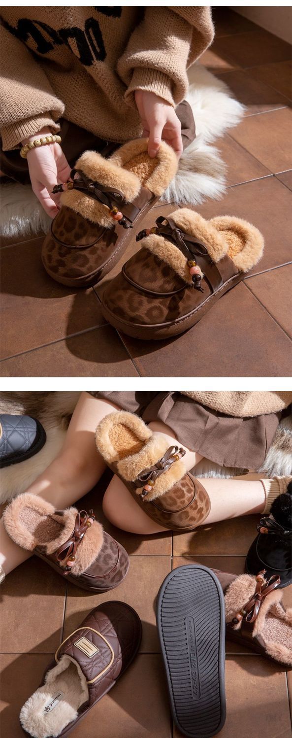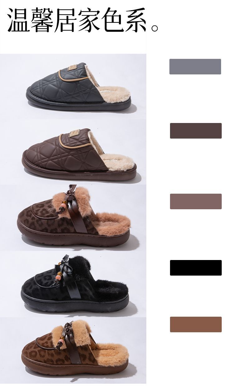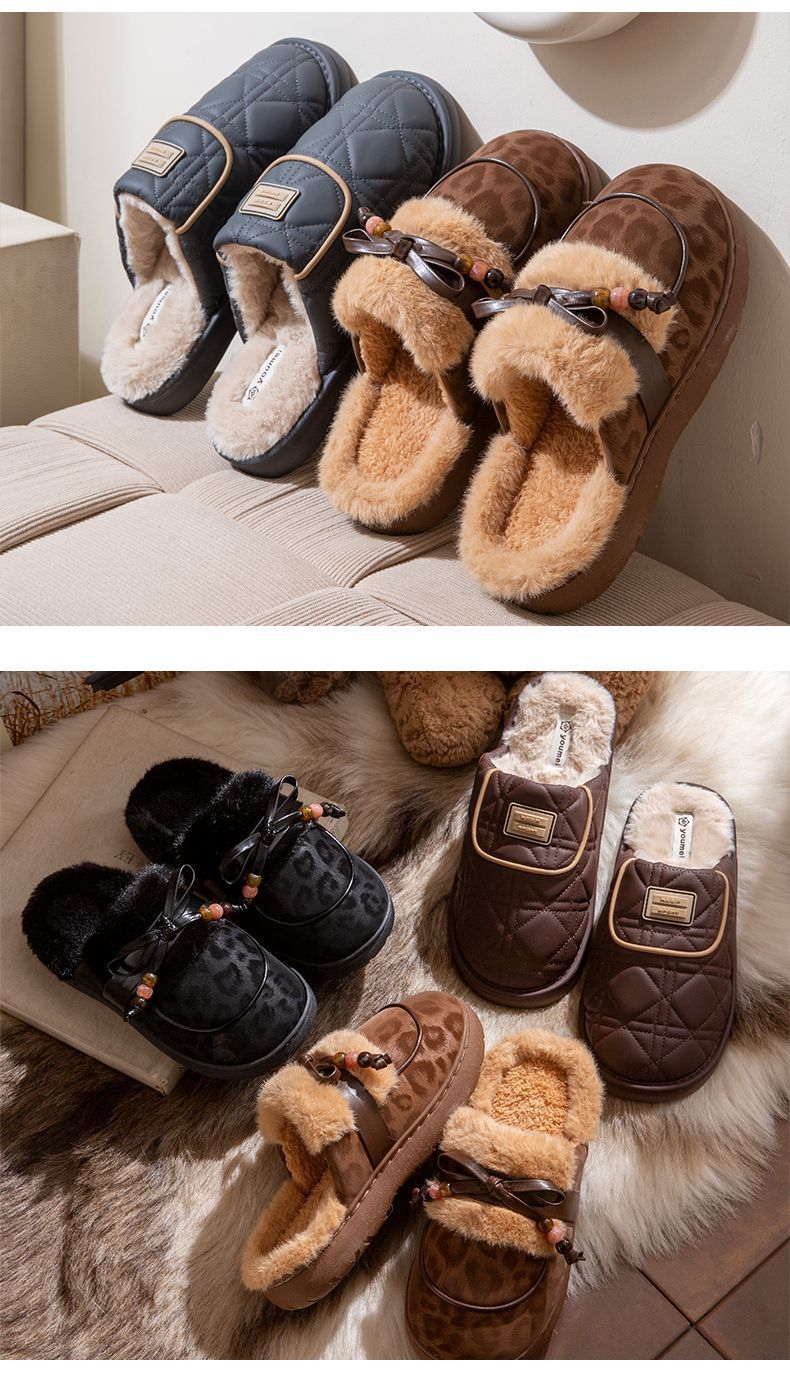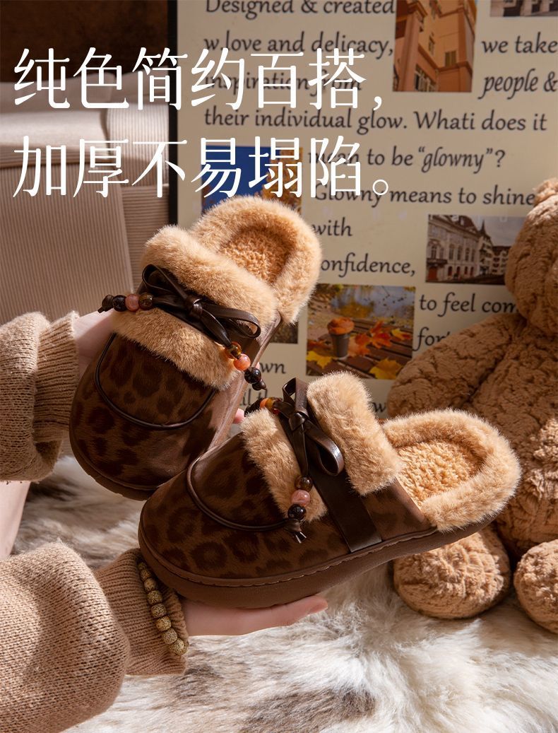 時尚蝴蝶結棉拖鞋女冬季加絨保暖家居室內防滑厚底包頭毛拖女外穿