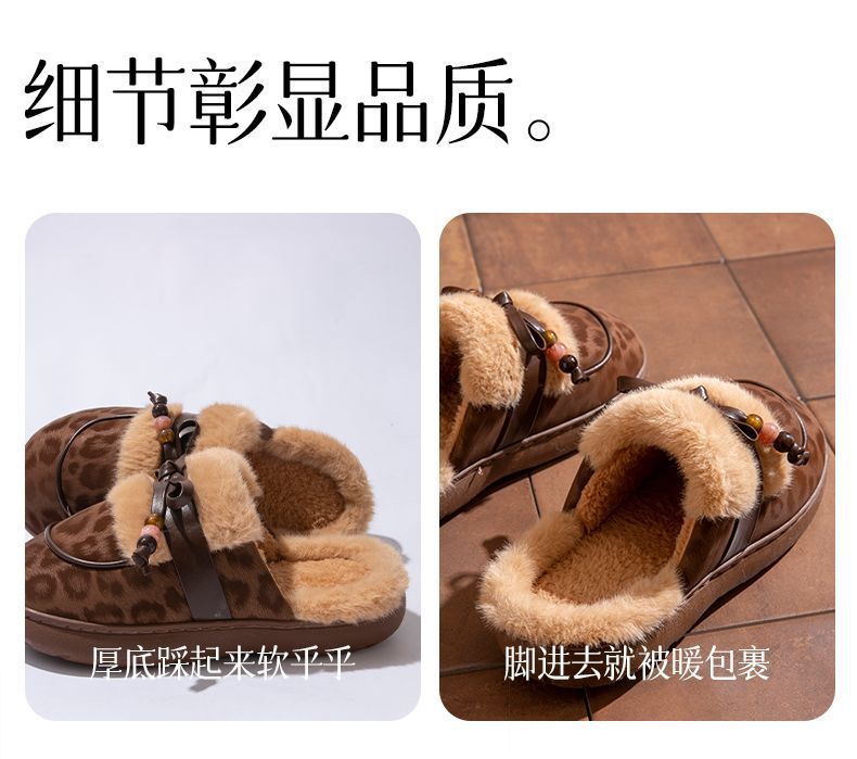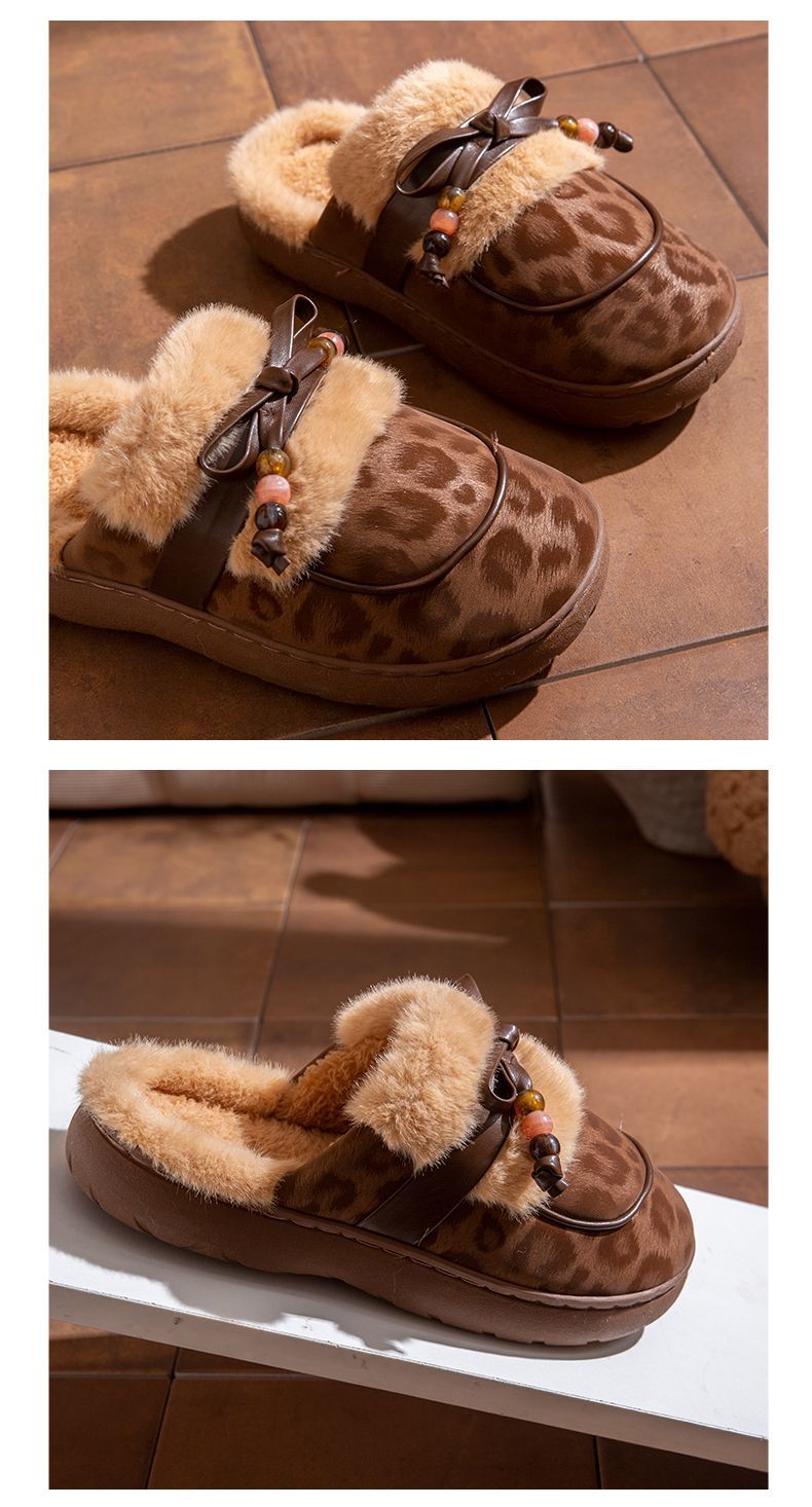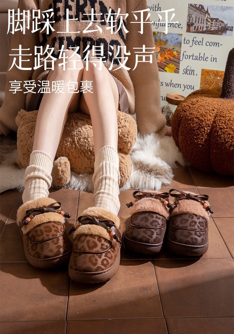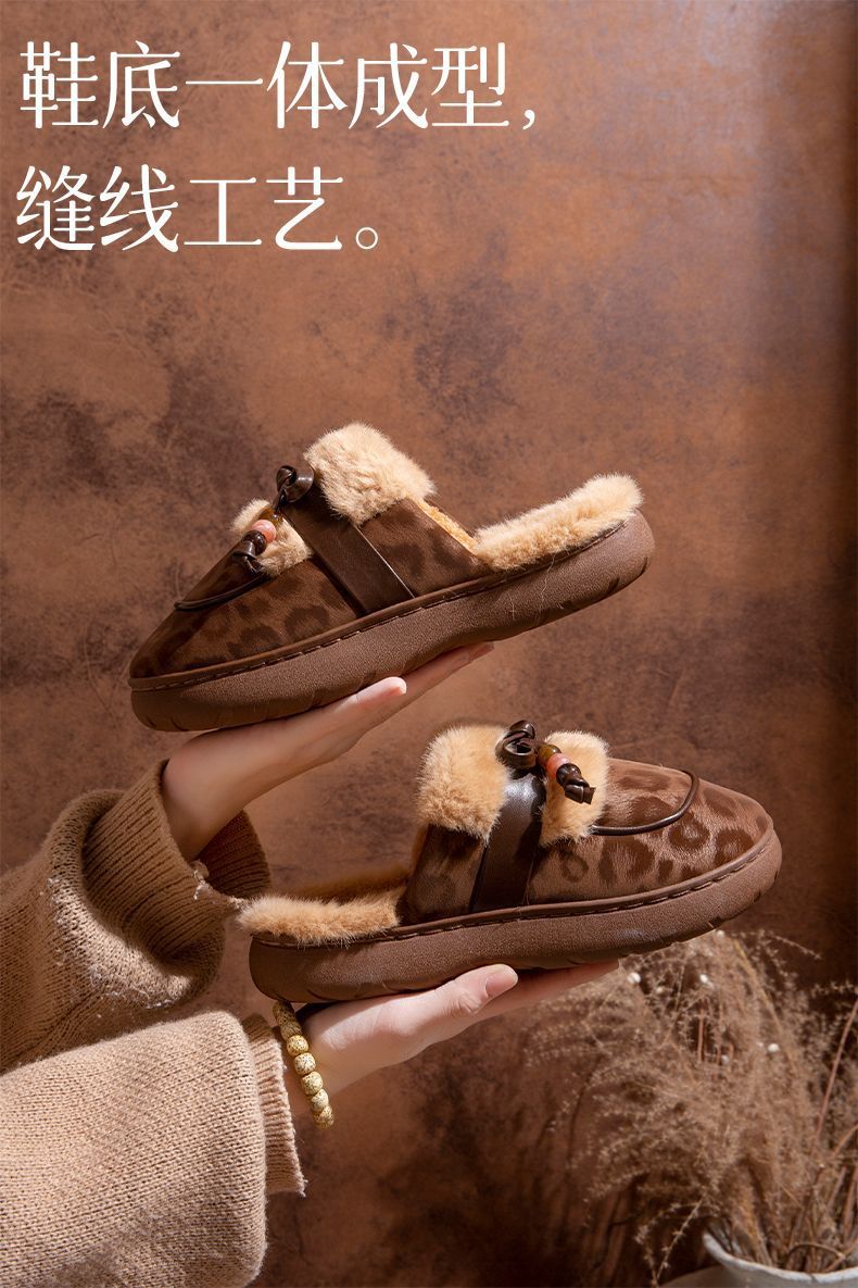 時尚蝴蝶結棉拖鞋女冬季加絨保暖家居室內防滑厚底包頭毛拖女外穿