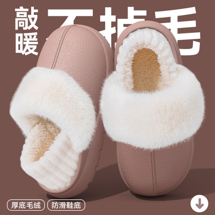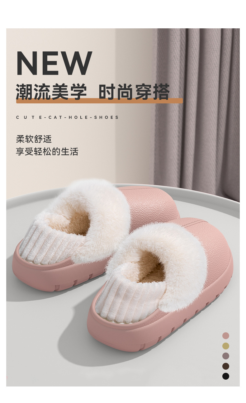防水棉拖鞋女款2025新款冬季防滑保暖厚底包跟外穿毛絨可拆卸棉鞋