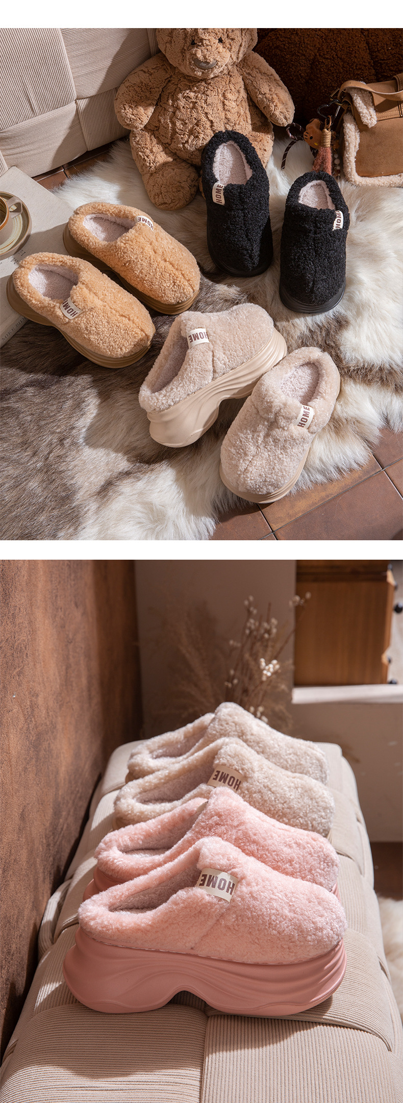 厚底棉拖鞋女秋冬季新款家居防滑保暖加絨毛毛小個子女生增高拖鞋