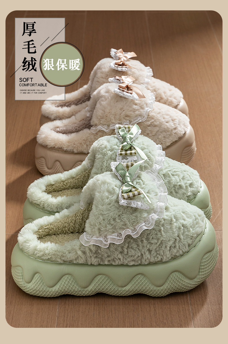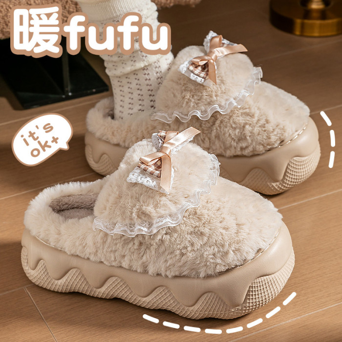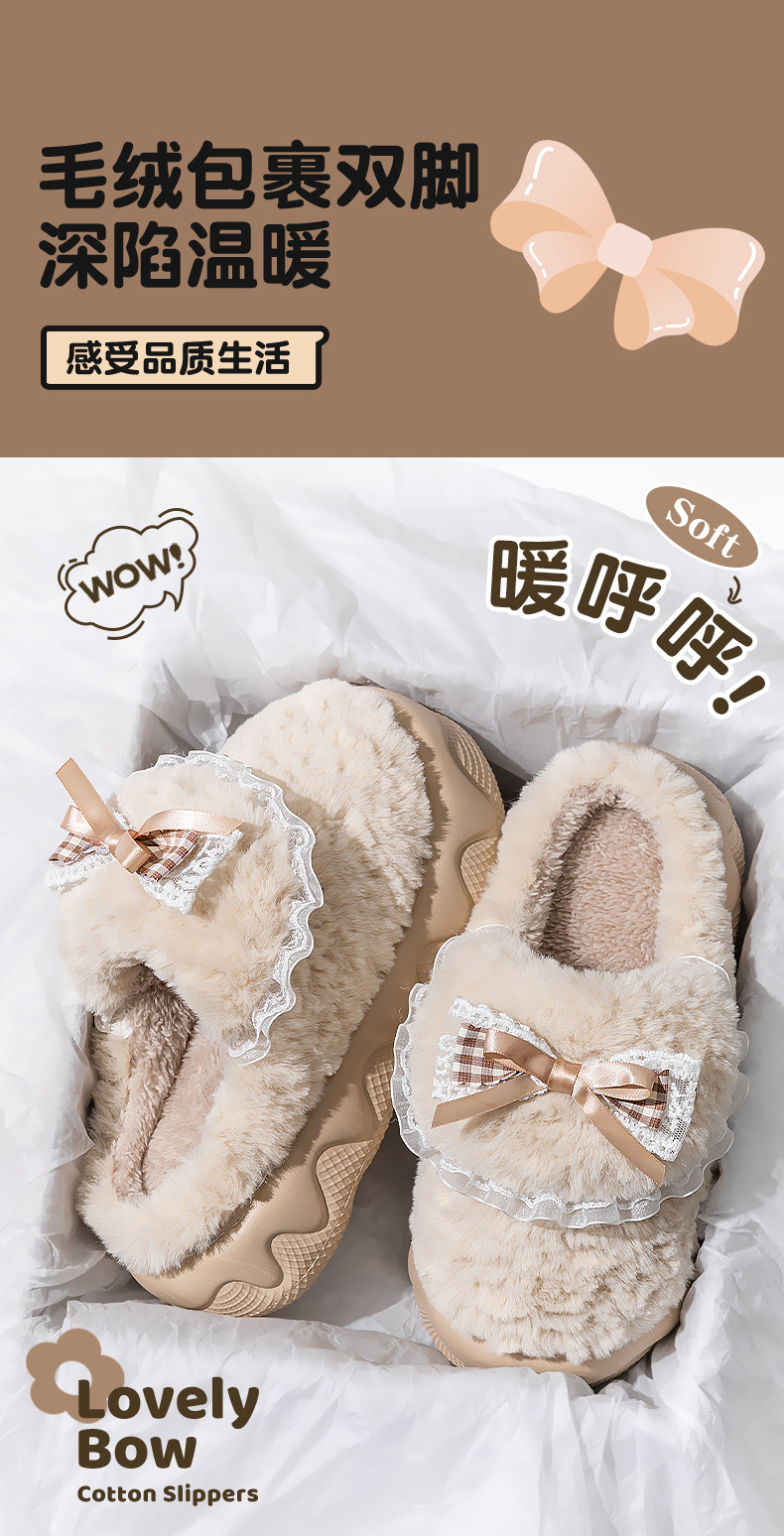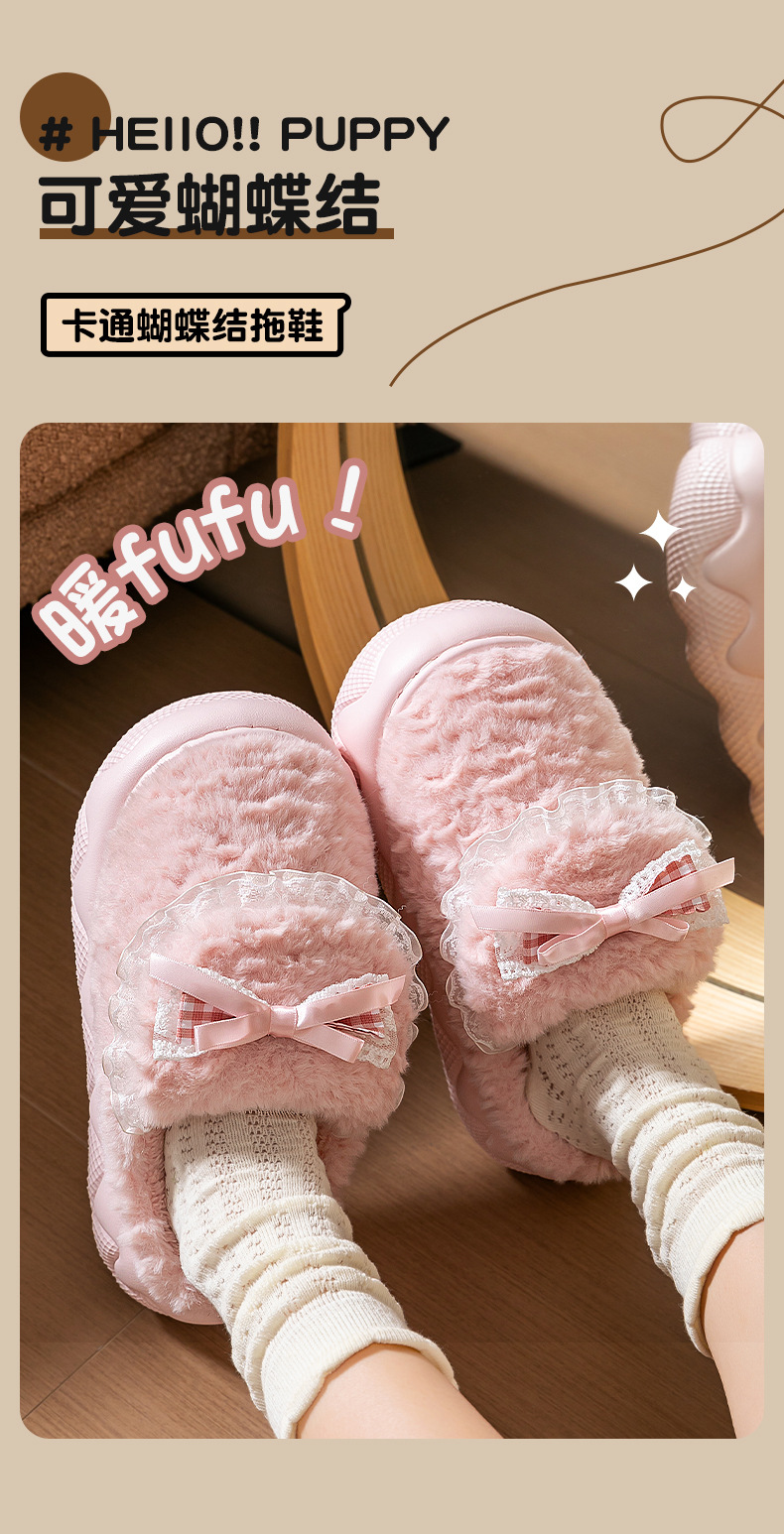 蝴蝶結棉拖鞋女2025秋冬季新款室內家居加絨保暖厚底防滑毛絨棉拖