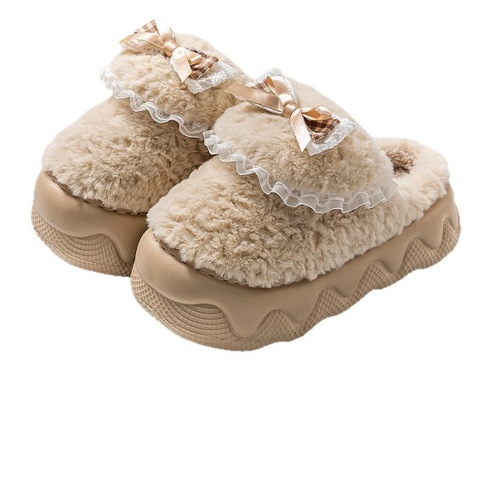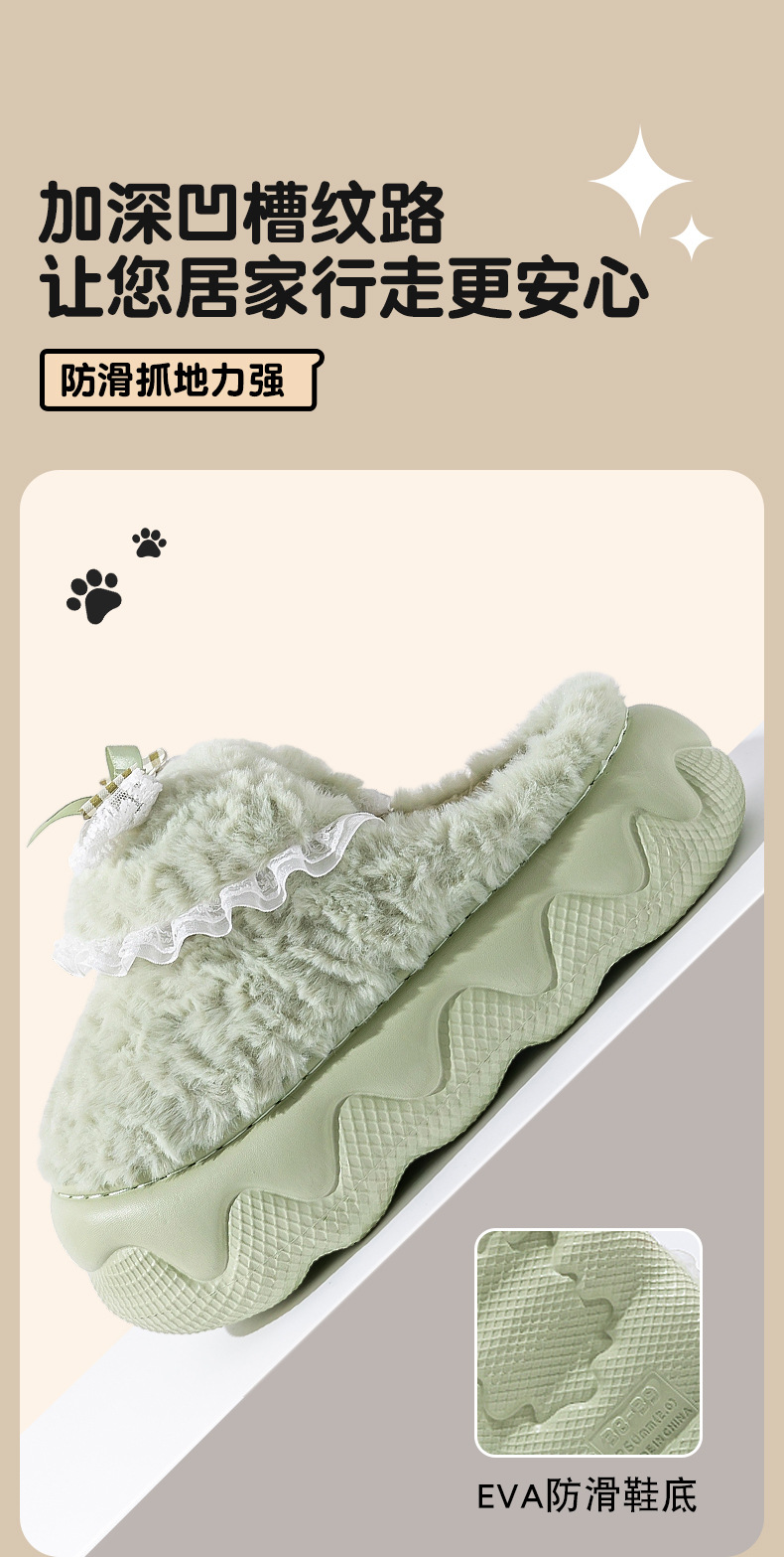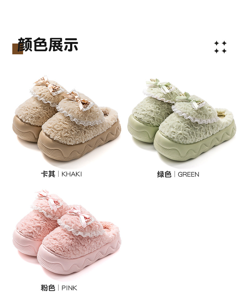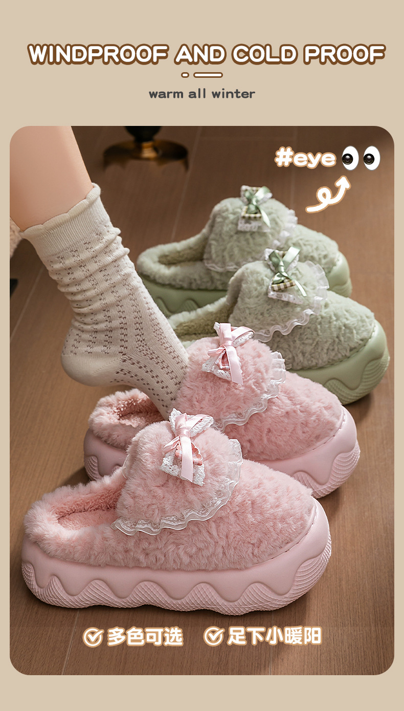 蝴蝶結棉拖鞋女2025秋冬季新款室內家居加絨保暖厚底防滑毛絨棉拖