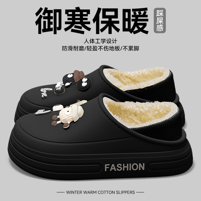 踩屎感棉拖鞋男款2025新款冬季室內家居保暖加絨包跟防水棉鞋