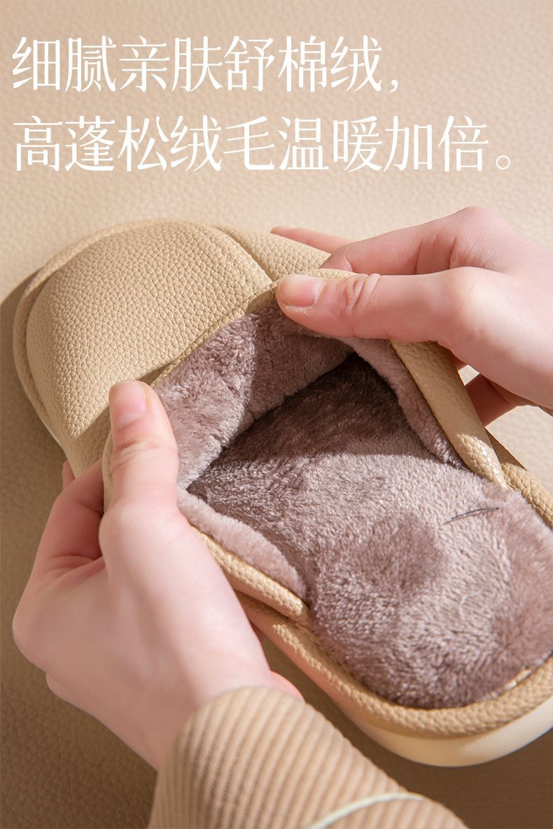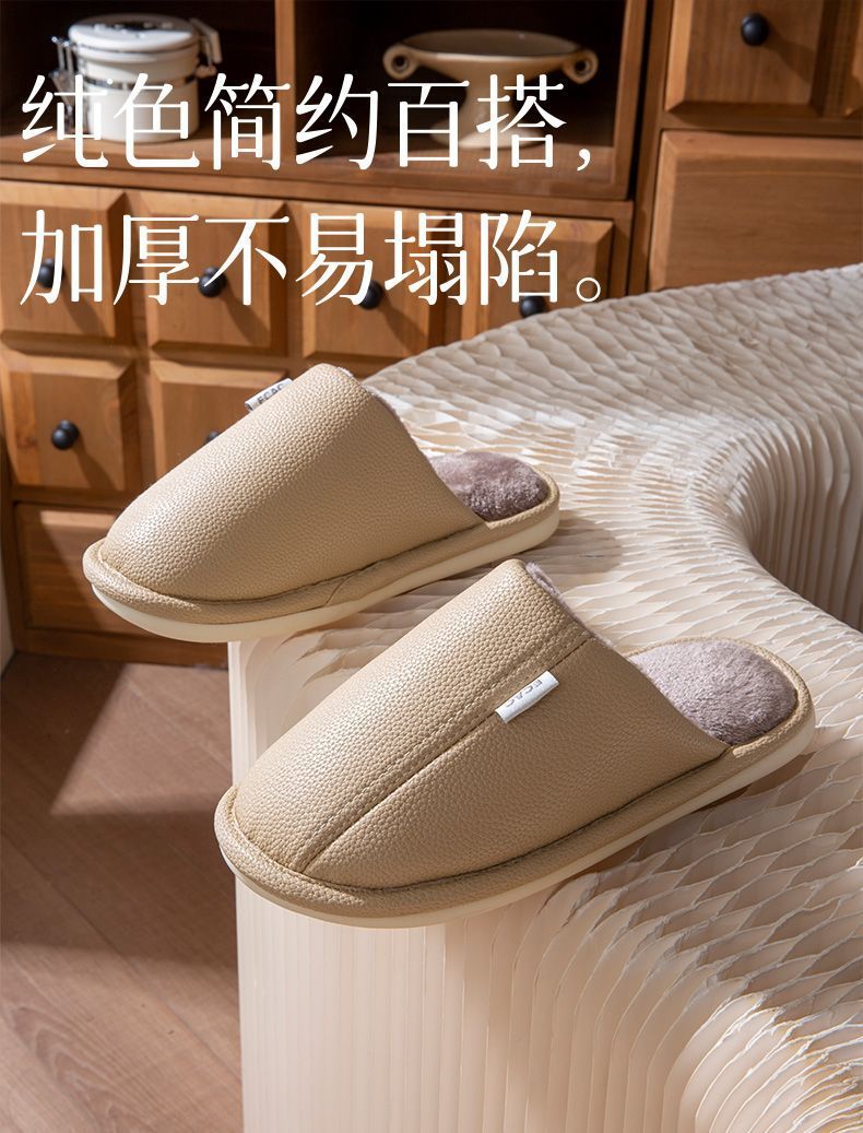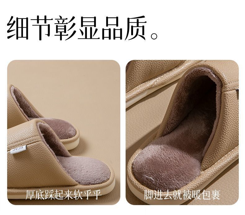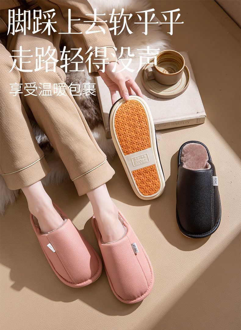 PU防水棉拖鞋女士秋冬季2025新款室內家居軟底防滑保暖靜音拖鞋男
