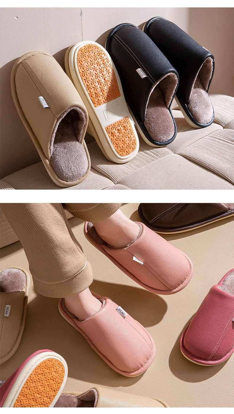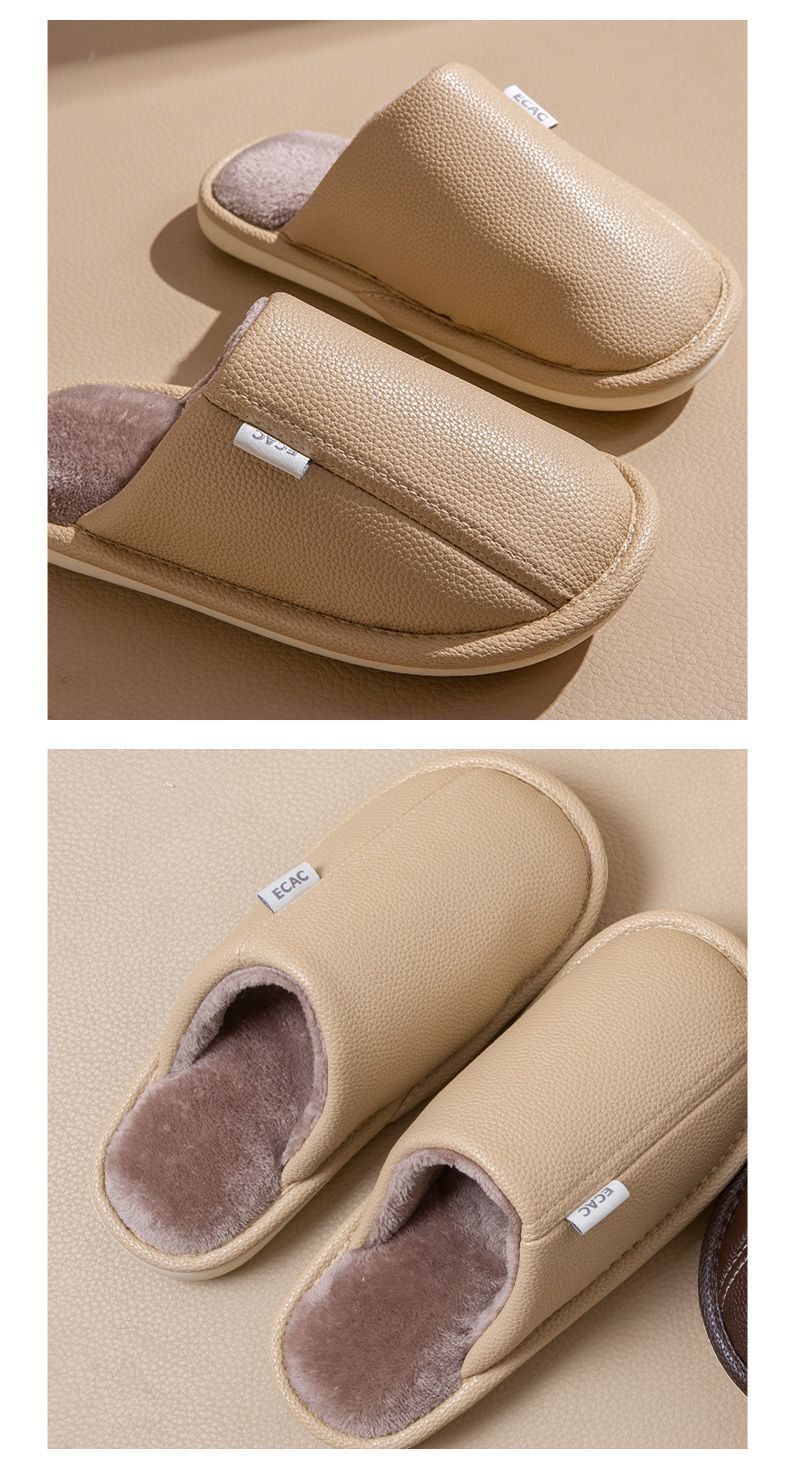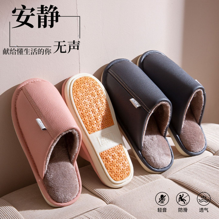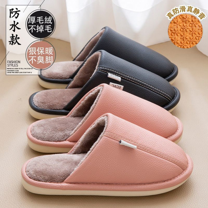 PU防水棉拖鞋女士秋冬季2025新款室內家居軟底防滑保暖靜音拖鞋男