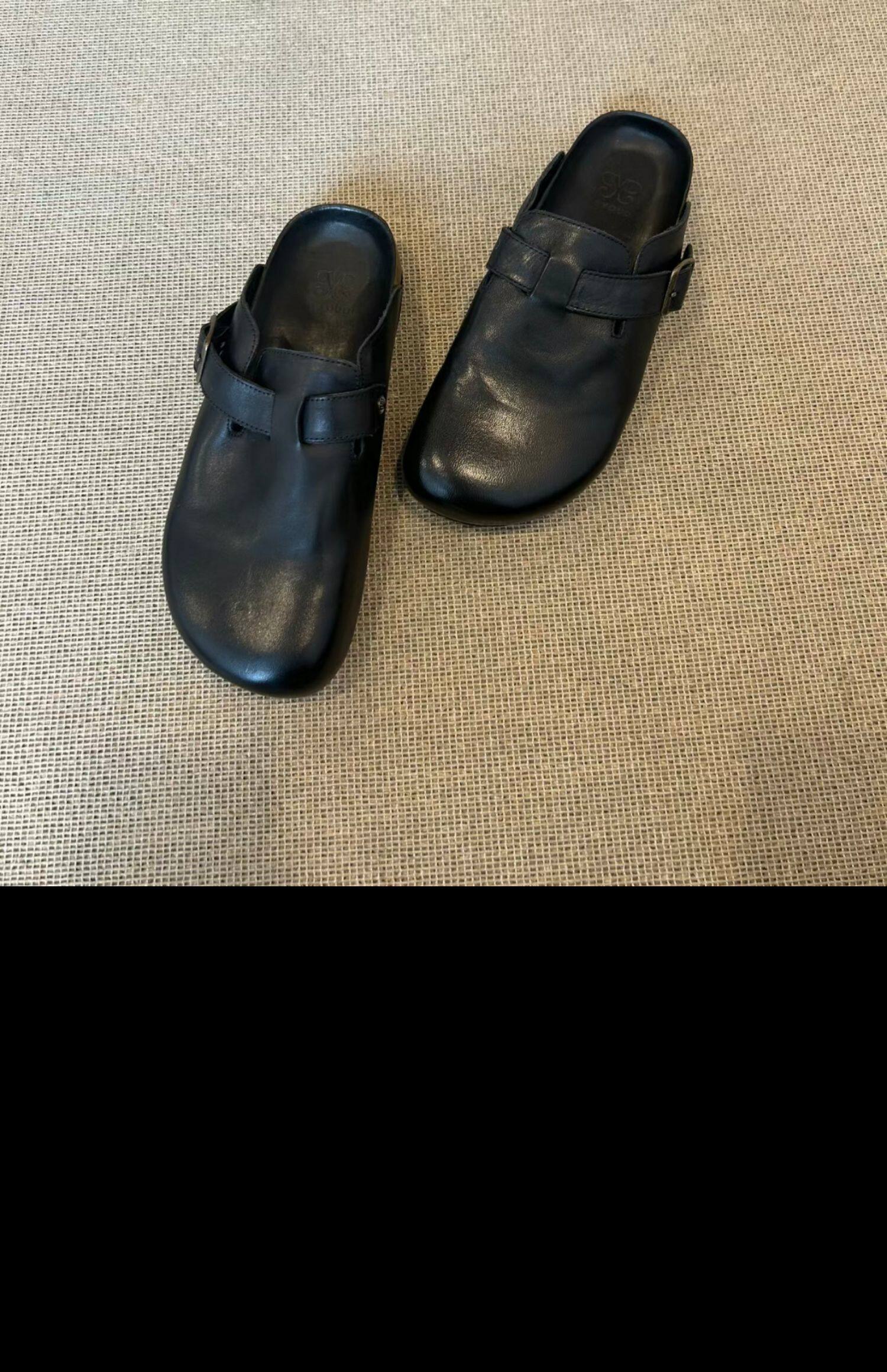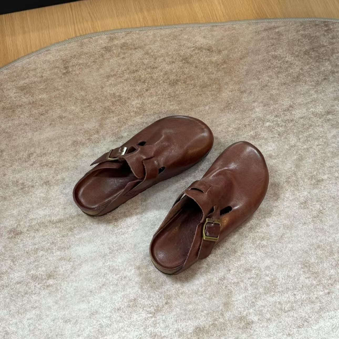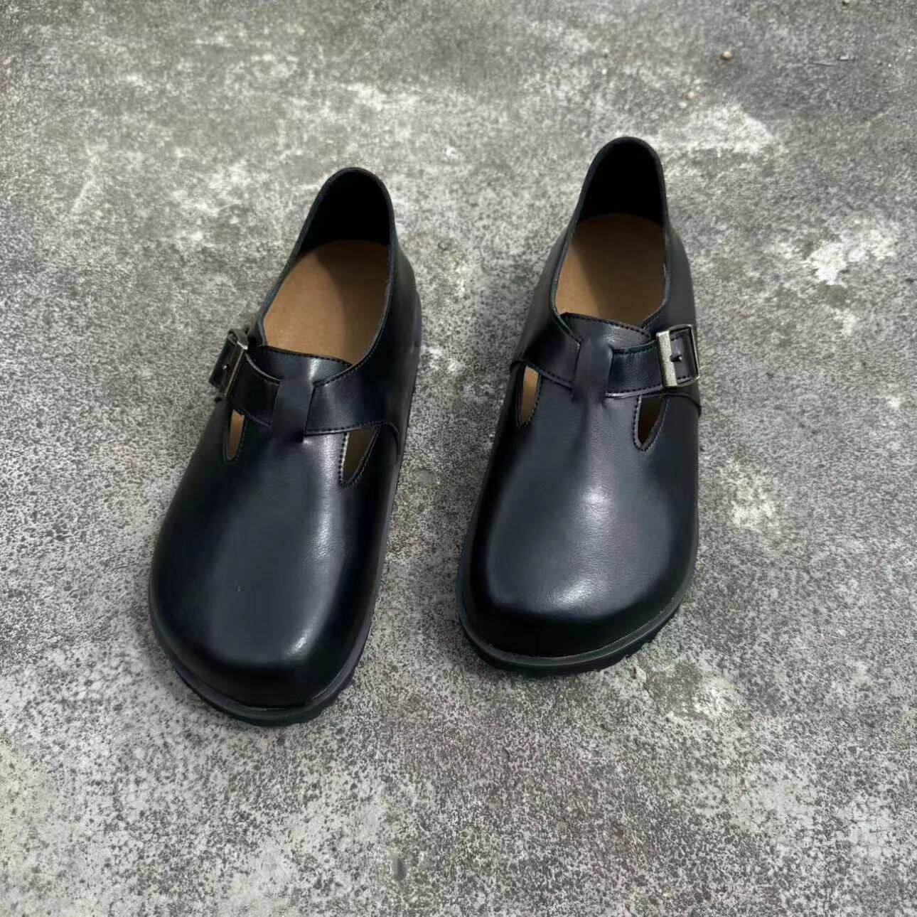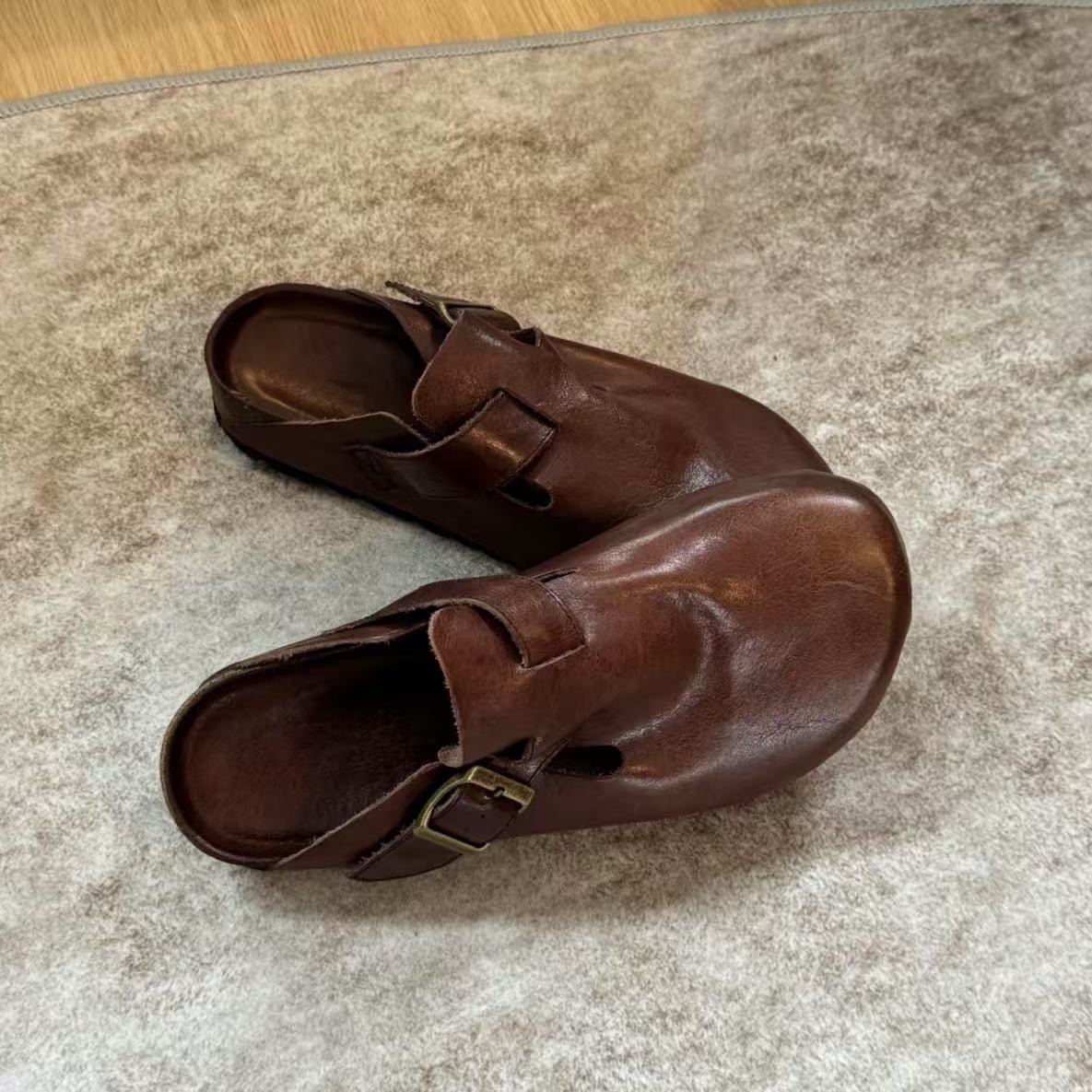 男女同款黑色包頭半拖勃肯鞋女夏季外穿2025新款真皮厚底復古拖鞋