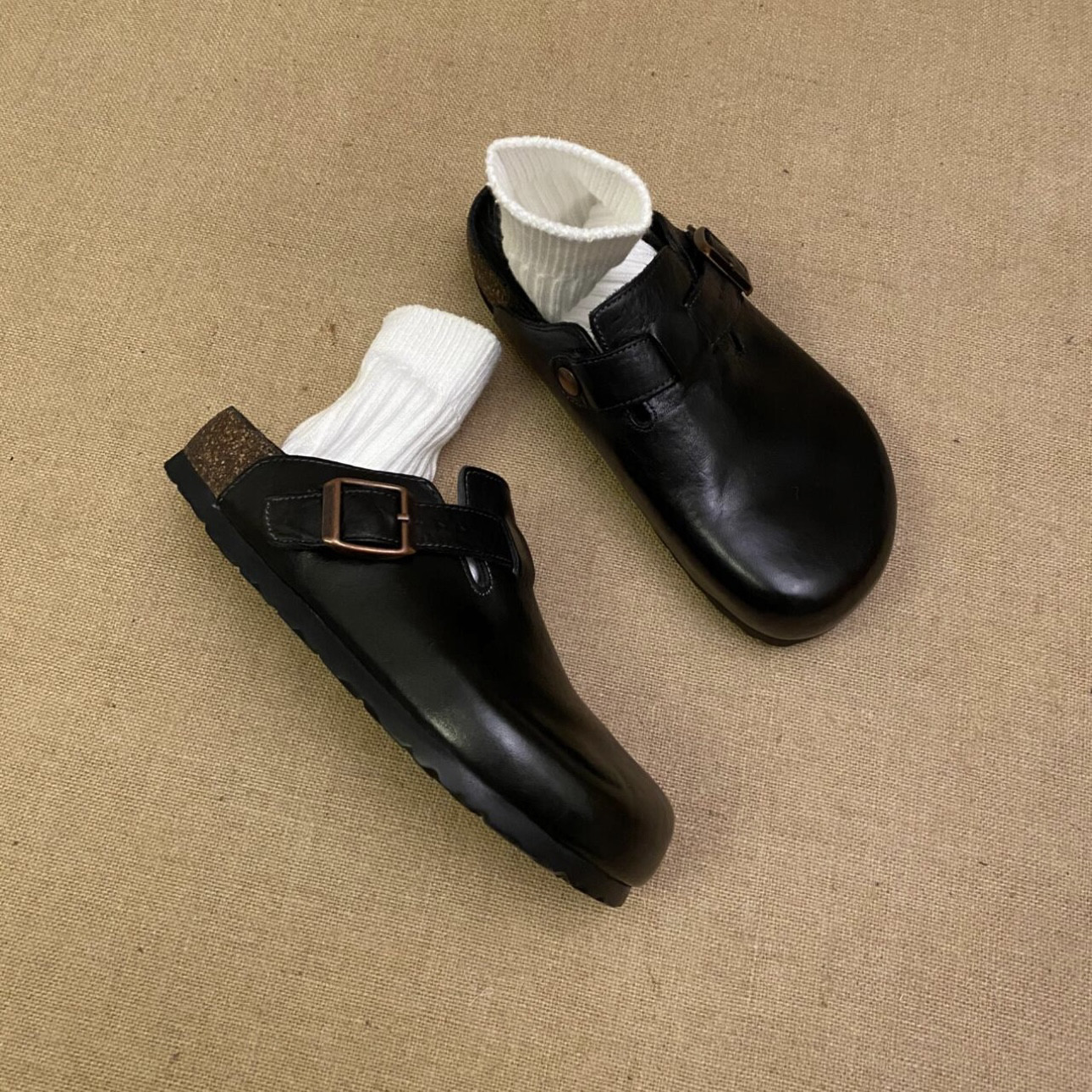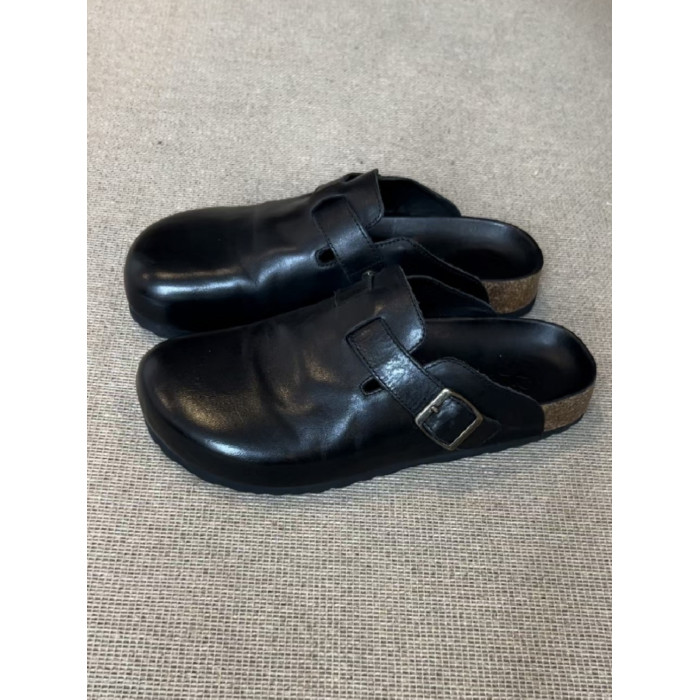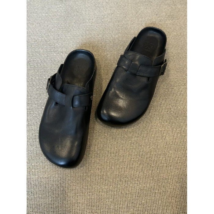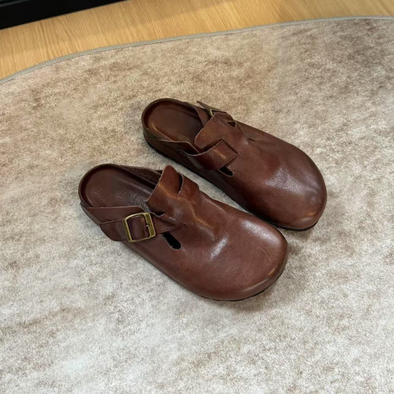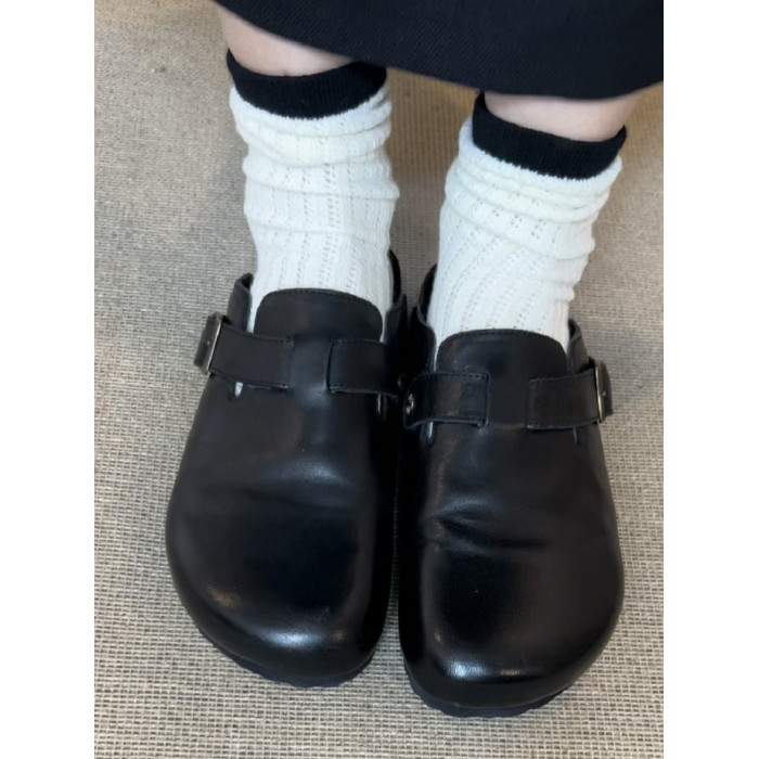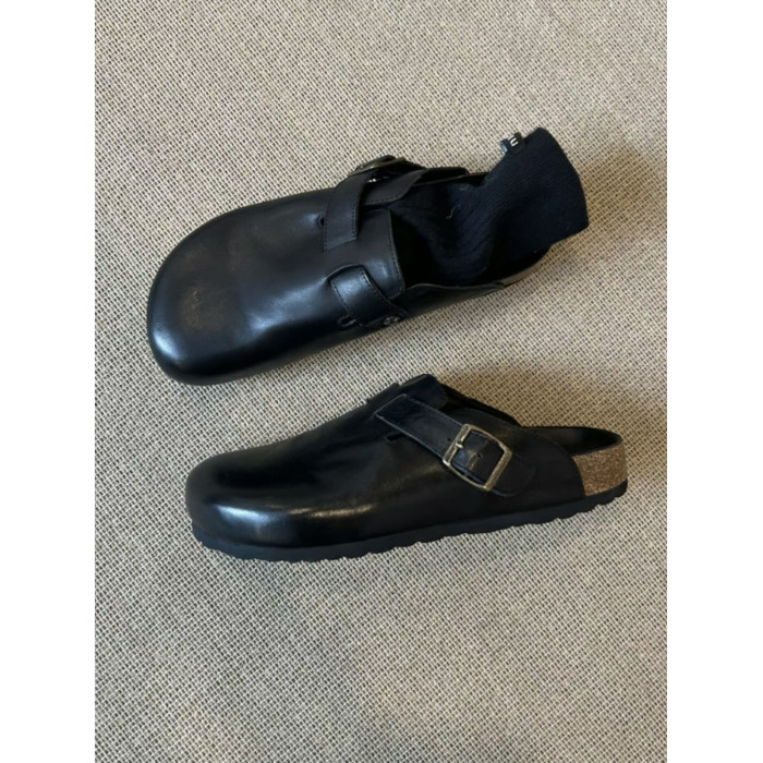 男女同款黑色包頭半拖勃肯鞋女夏季外穿2025新款真皮厚底復古拖鞋