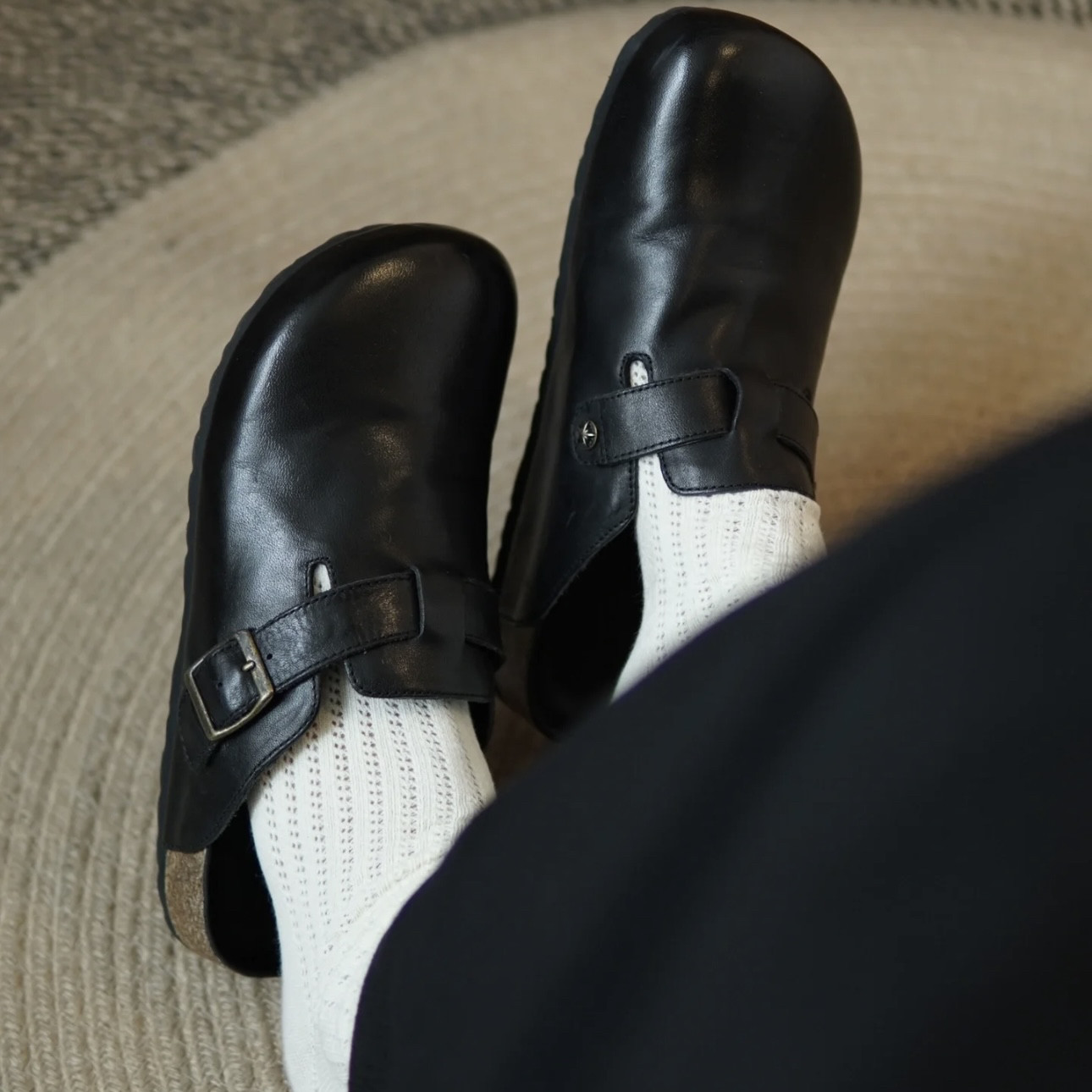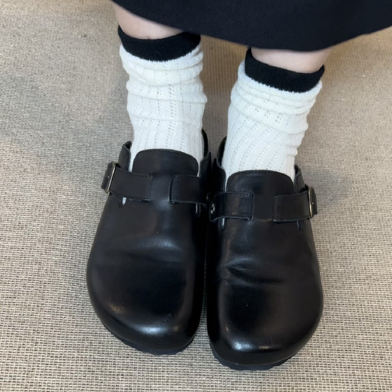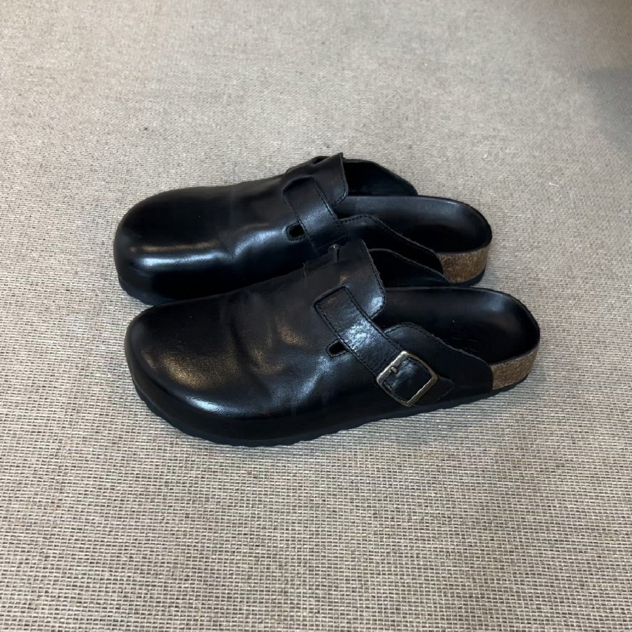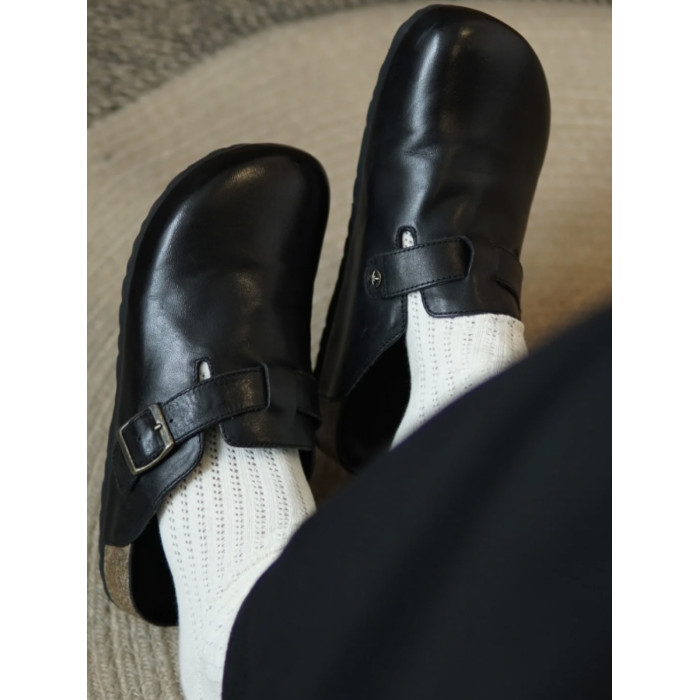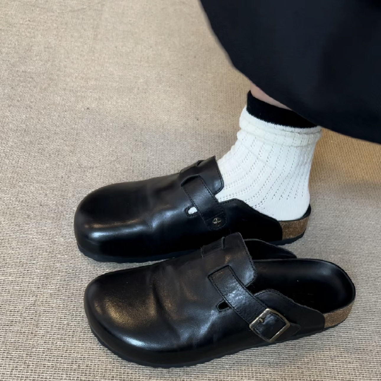 男女同款黑色包頭半拖勃肯鞋女夏季外穿2025新款真皮厚底復古拖鞋