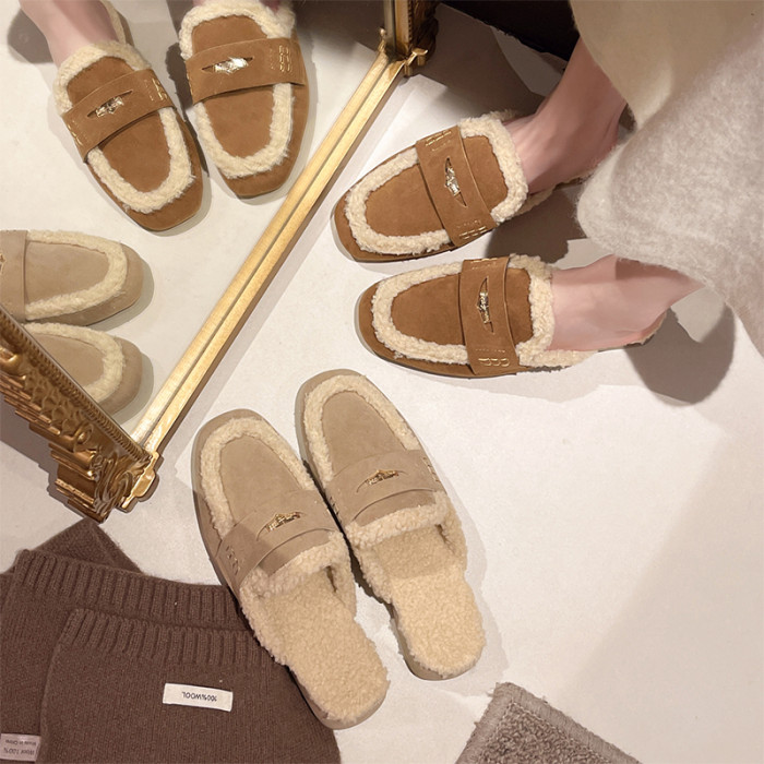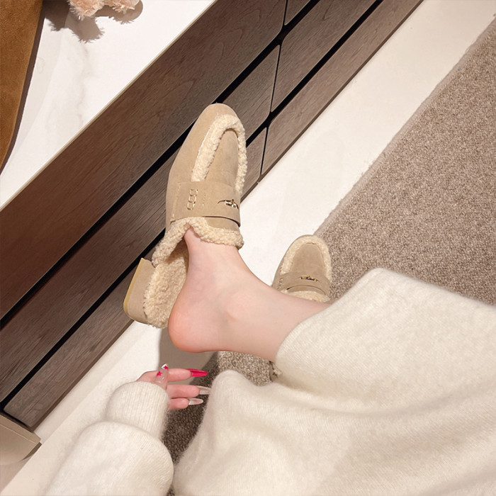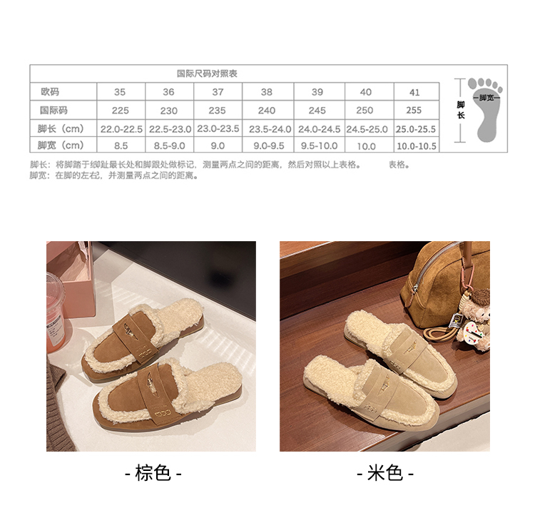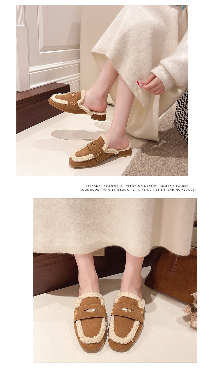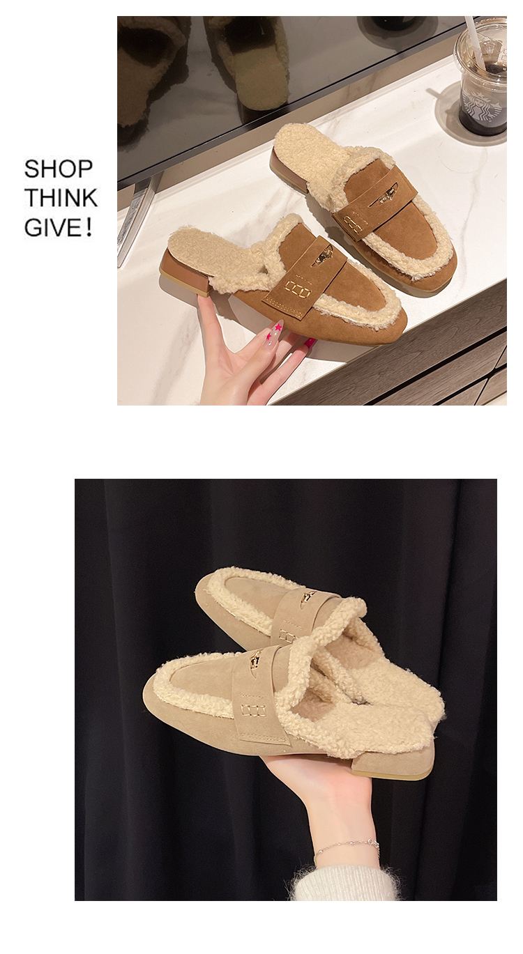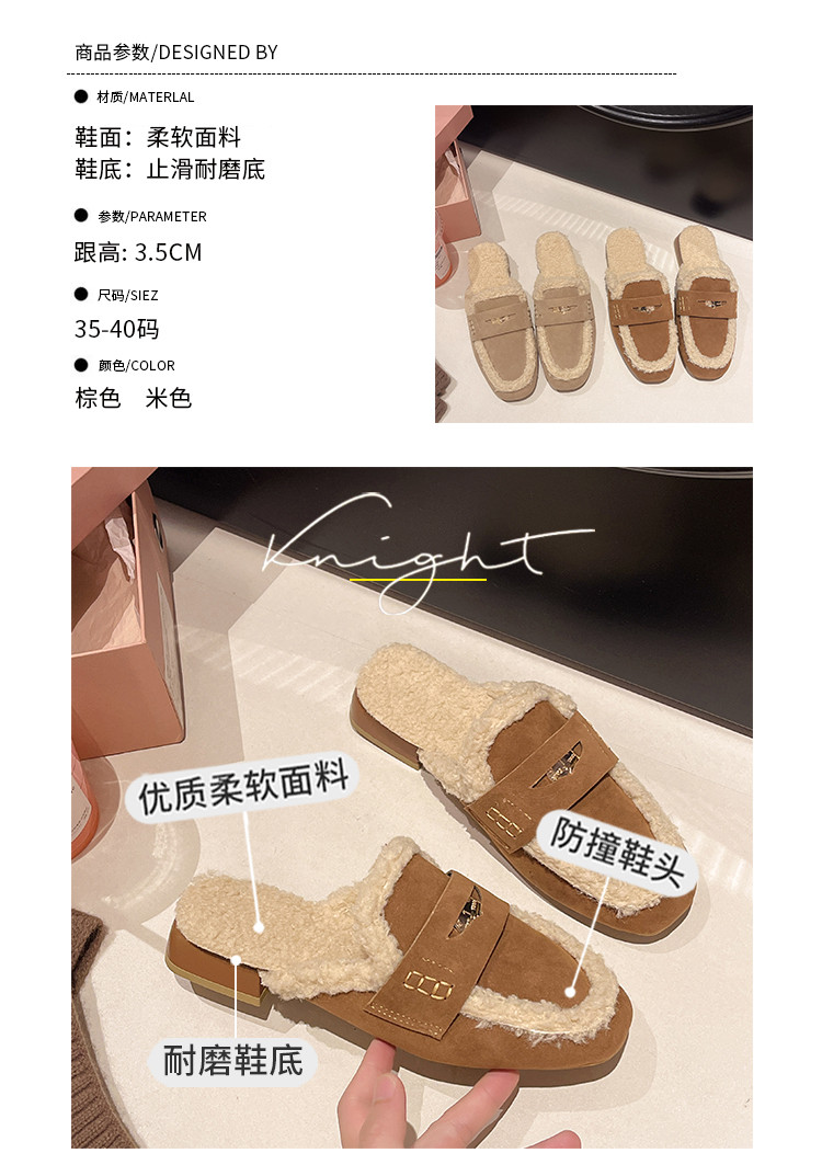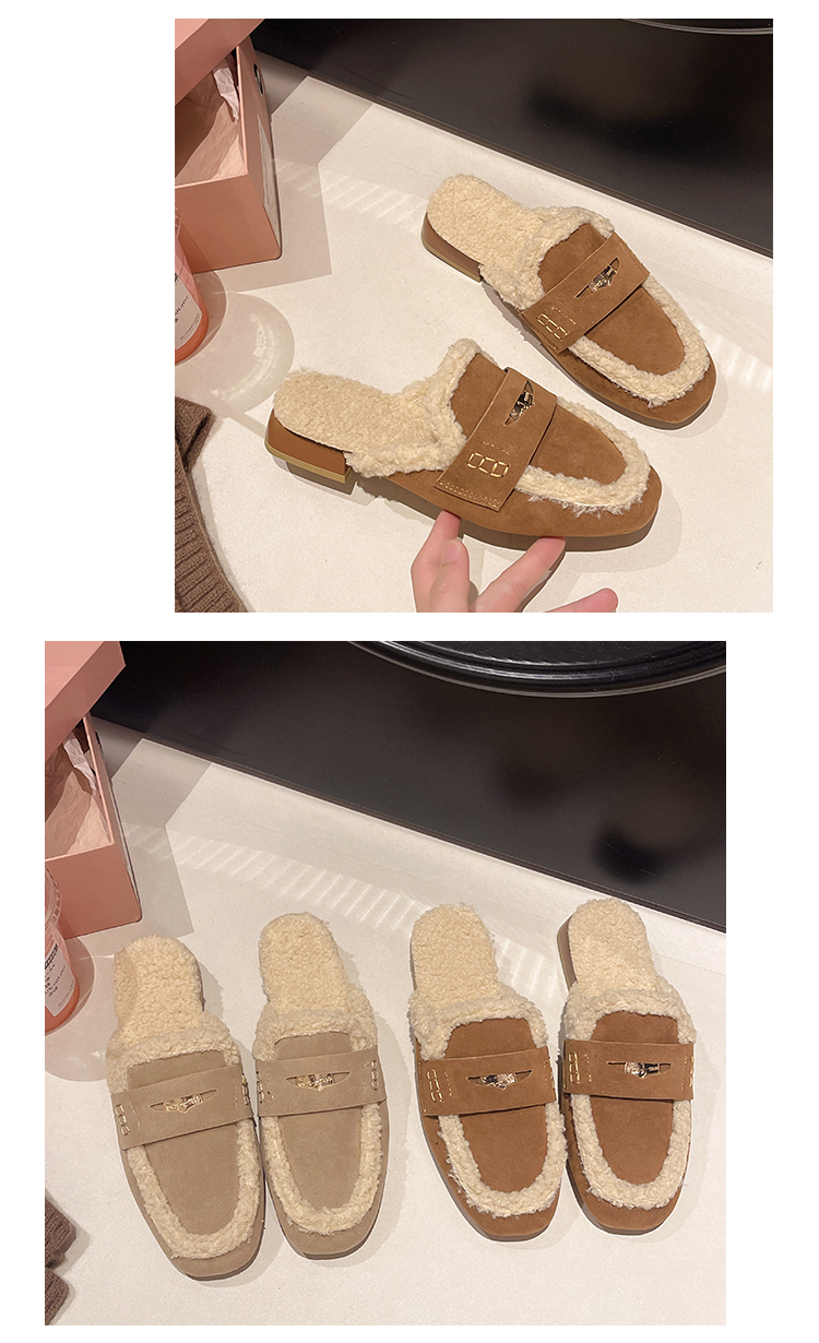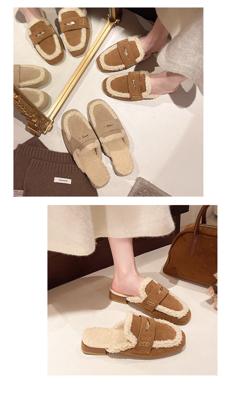 毛毛包頭半拖鞋女外穿2025秋冬新款配裙子加絨保暖粗跟穆勒棉拖鞋
