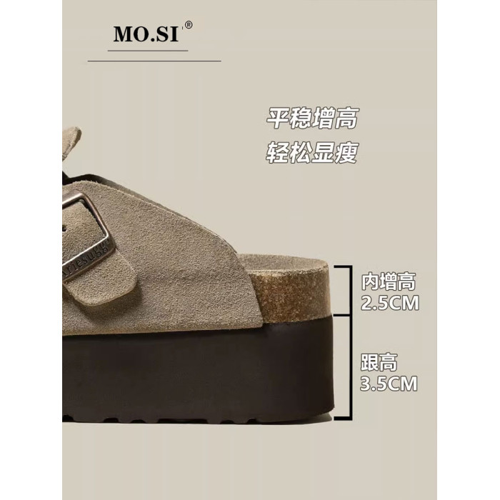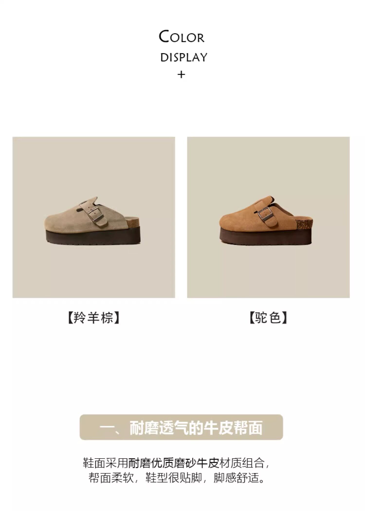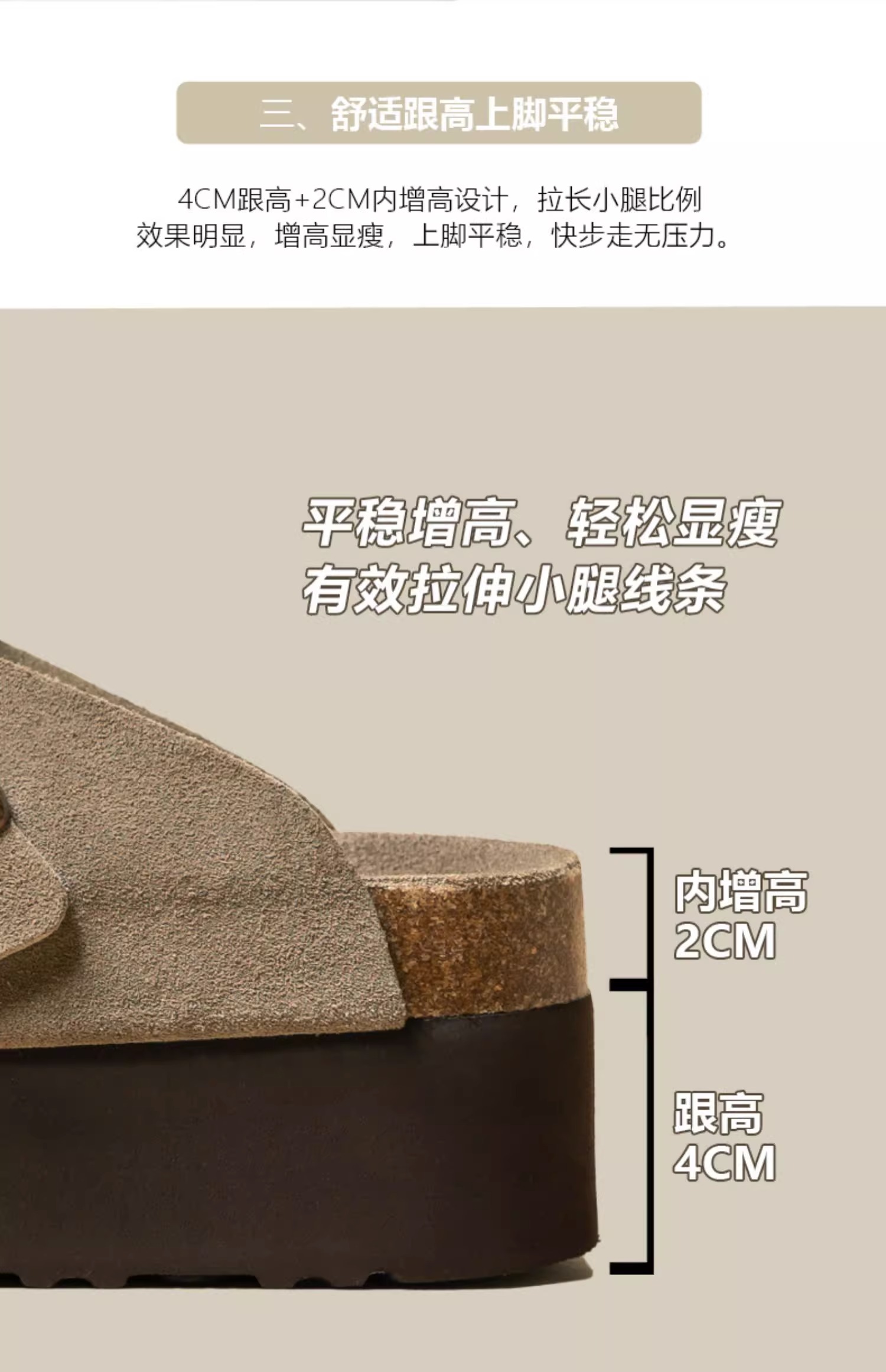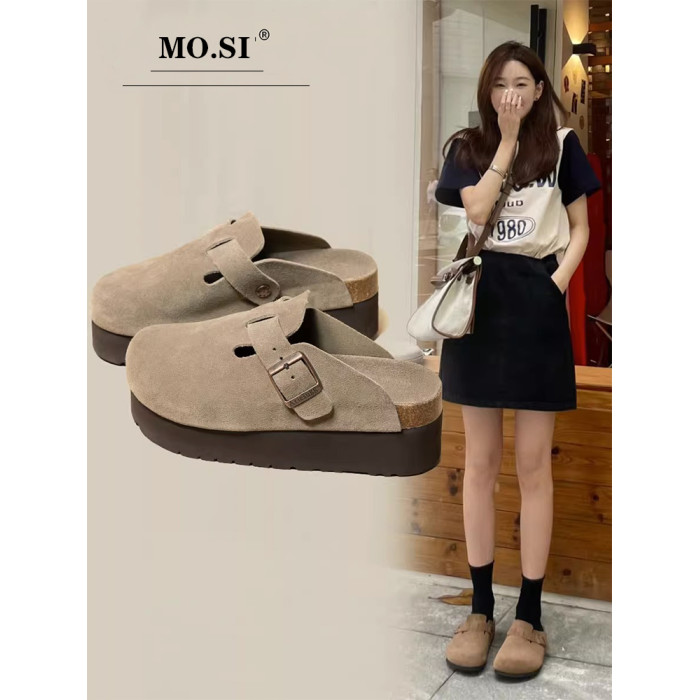 松糕厚底勃肯鞋女增高包頭半拖鞋外穿2025新款春秋一腳蹬博肯拖鞋