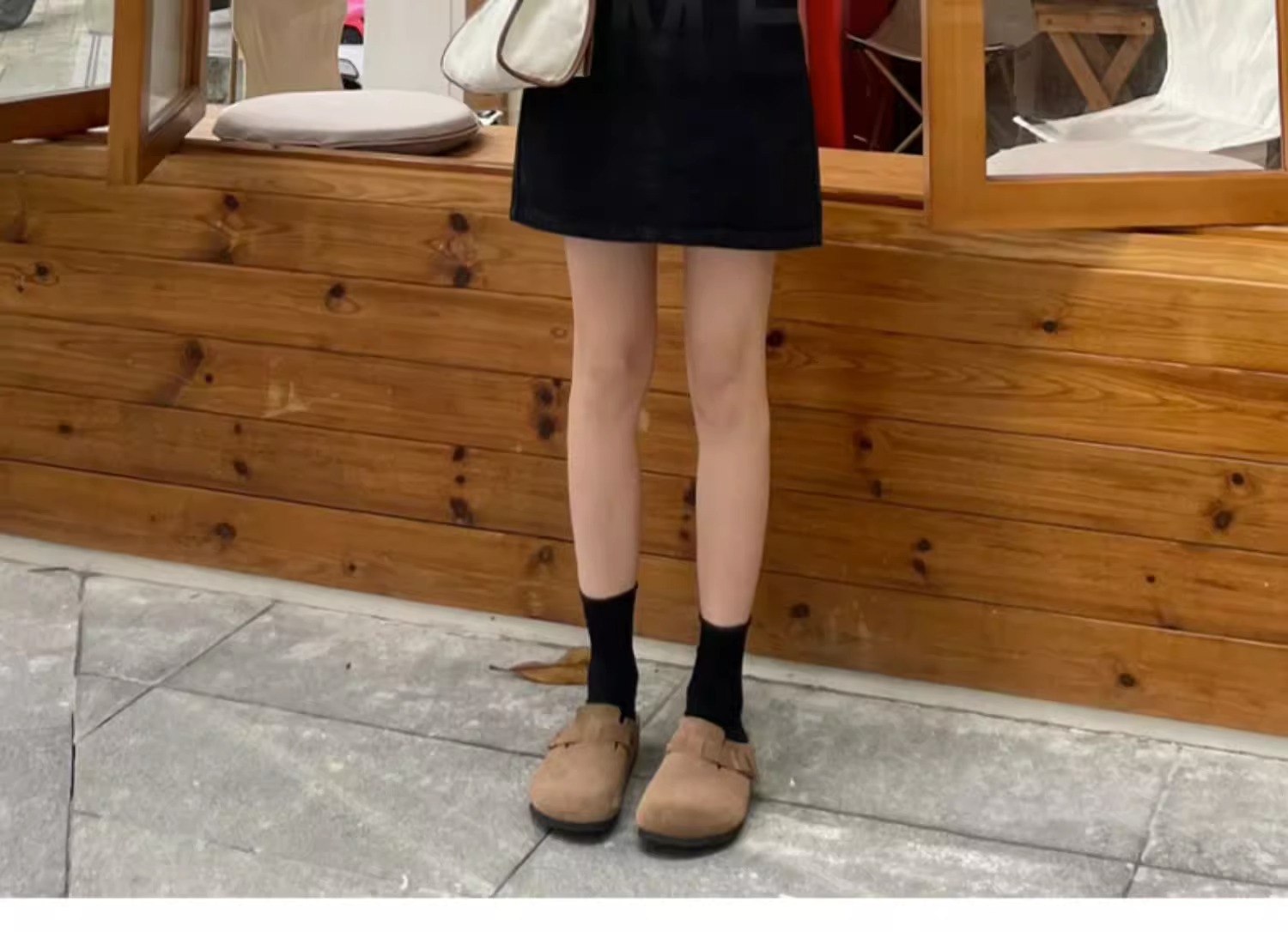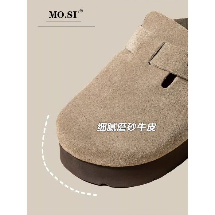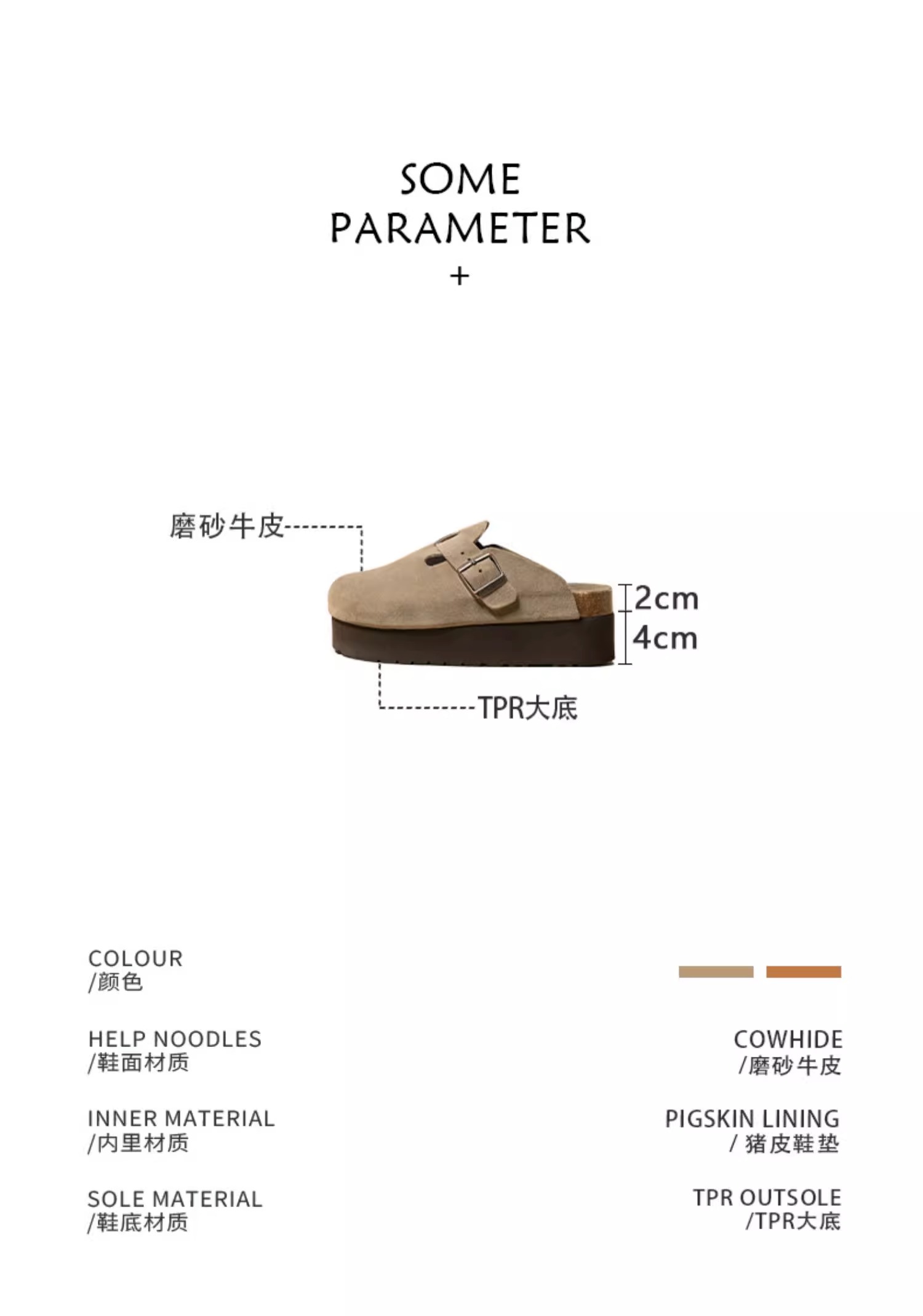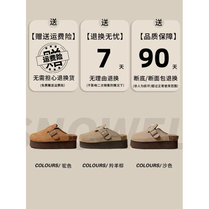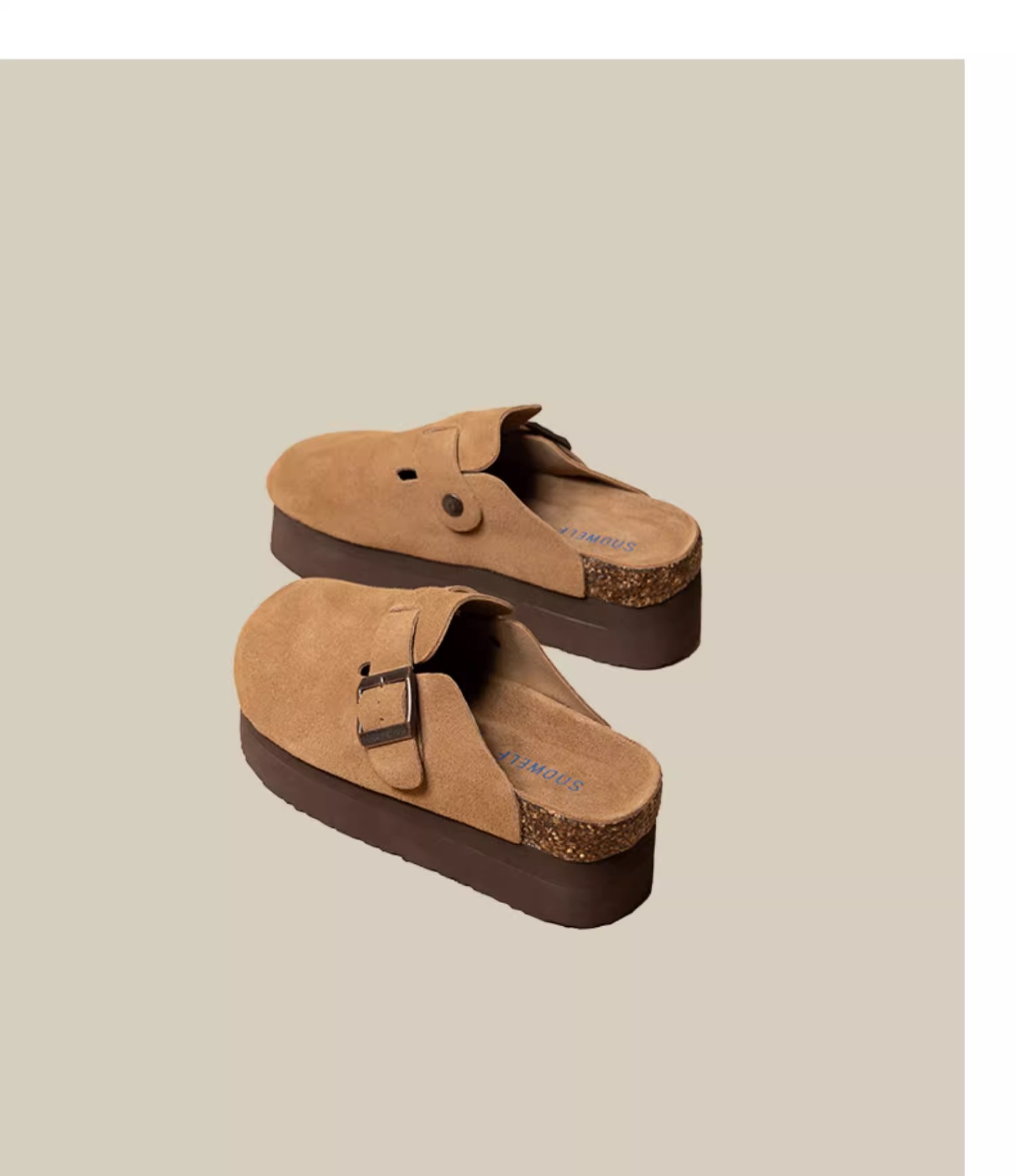 松糕厚底勃肯鞋女增高包頭半拖鞋外穿2025新款春秋一腳蹬博肯拖鞋