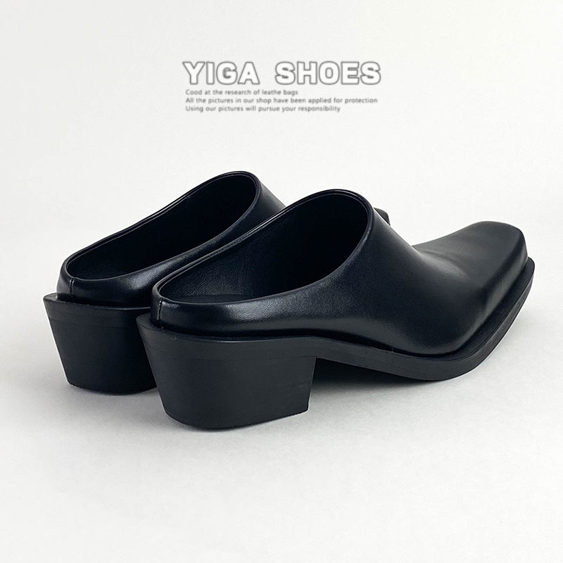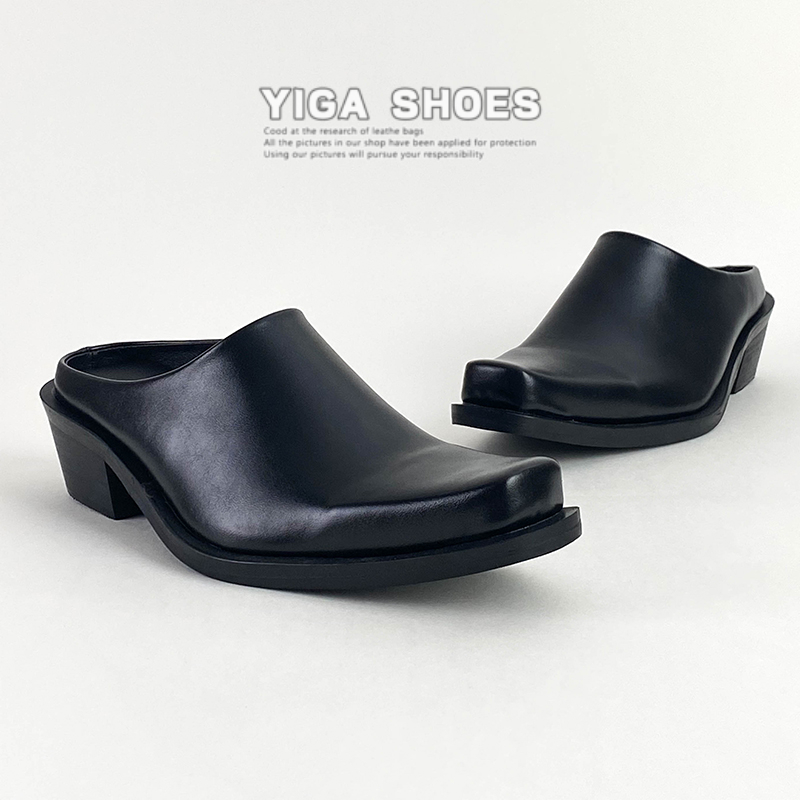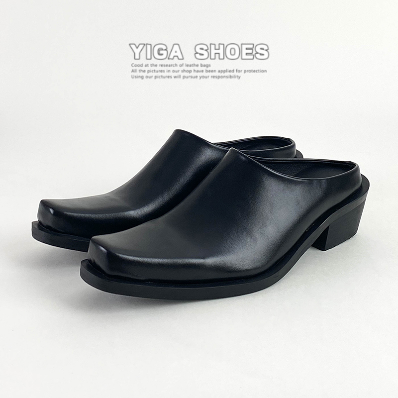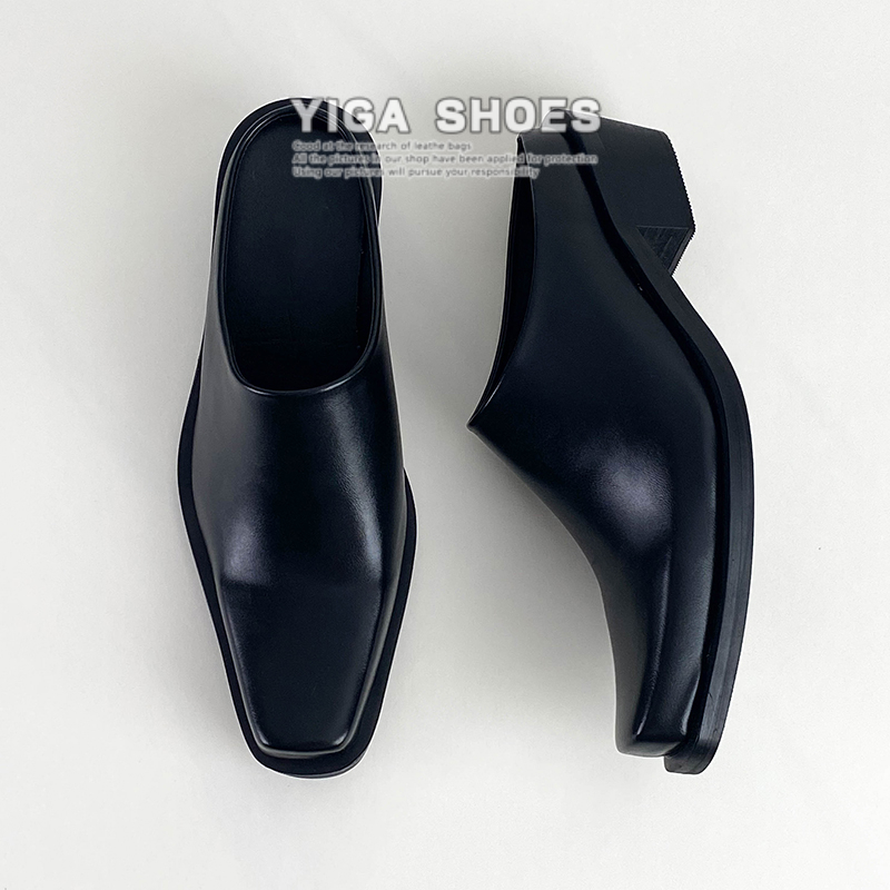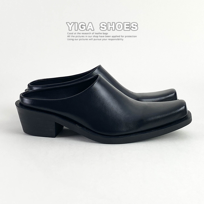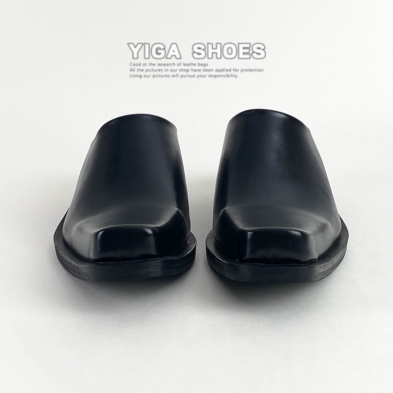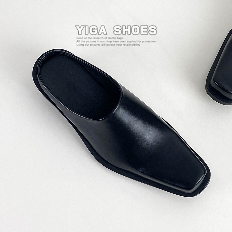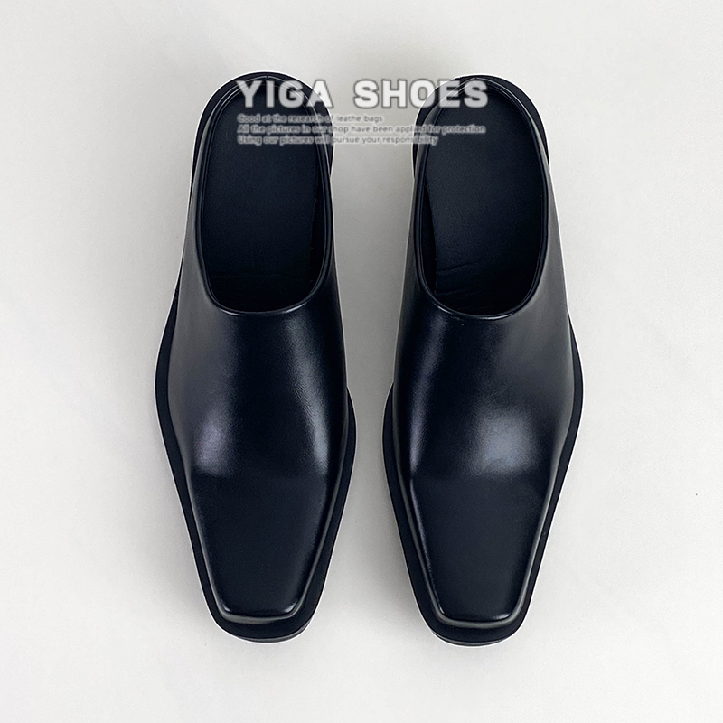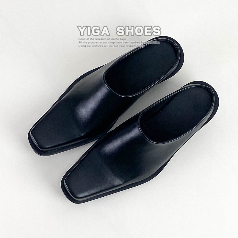 巴黎bootcu尖頭皮鞋柔軟包頭半拖鞋外穿真皮一腳蹬懶人穆勒鞋涼拖