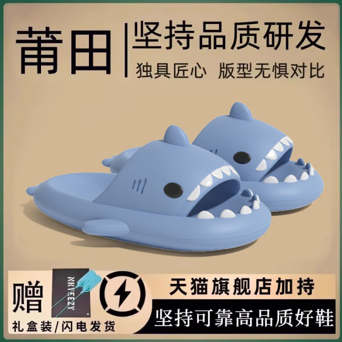 一字拖女鯊魚拖鞋夏季居家外穿厚底耐磨踩屎感情侶款eva涼拖鞋男