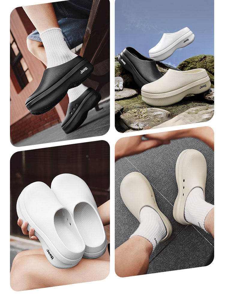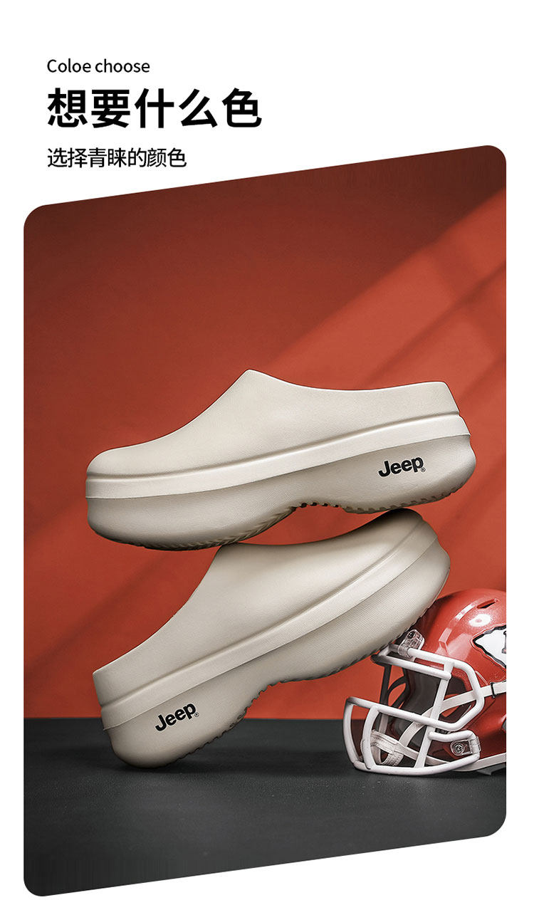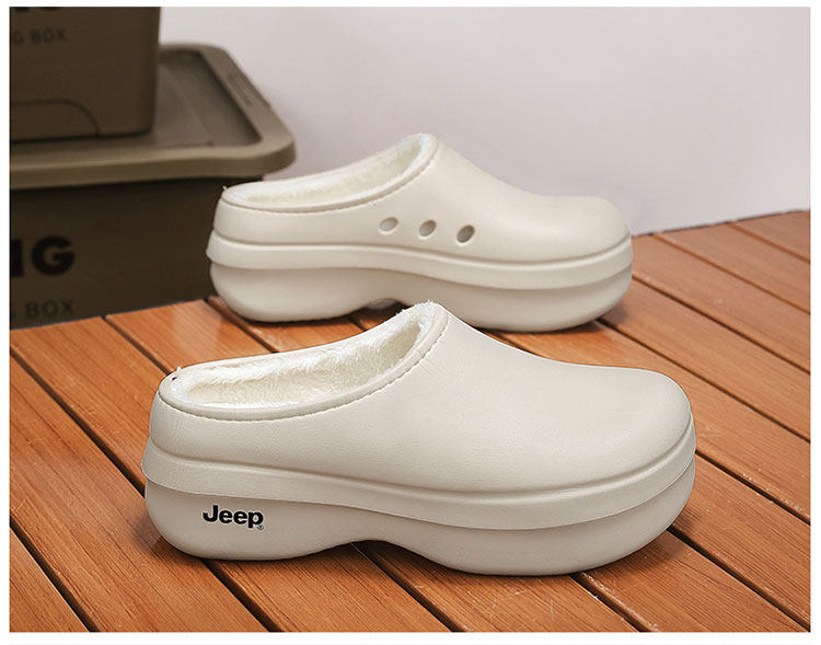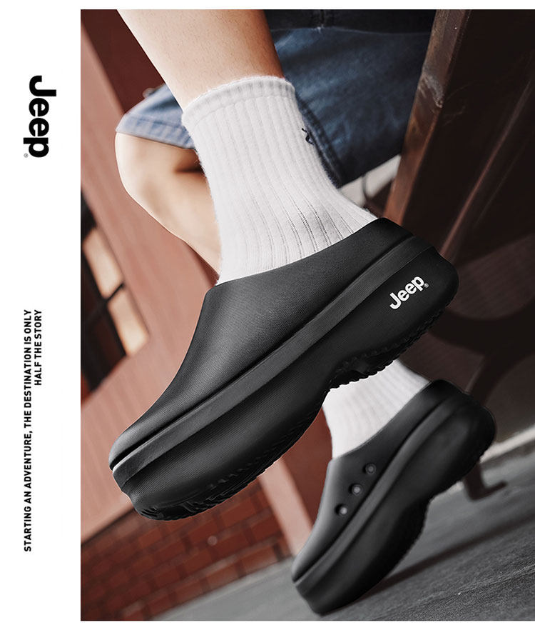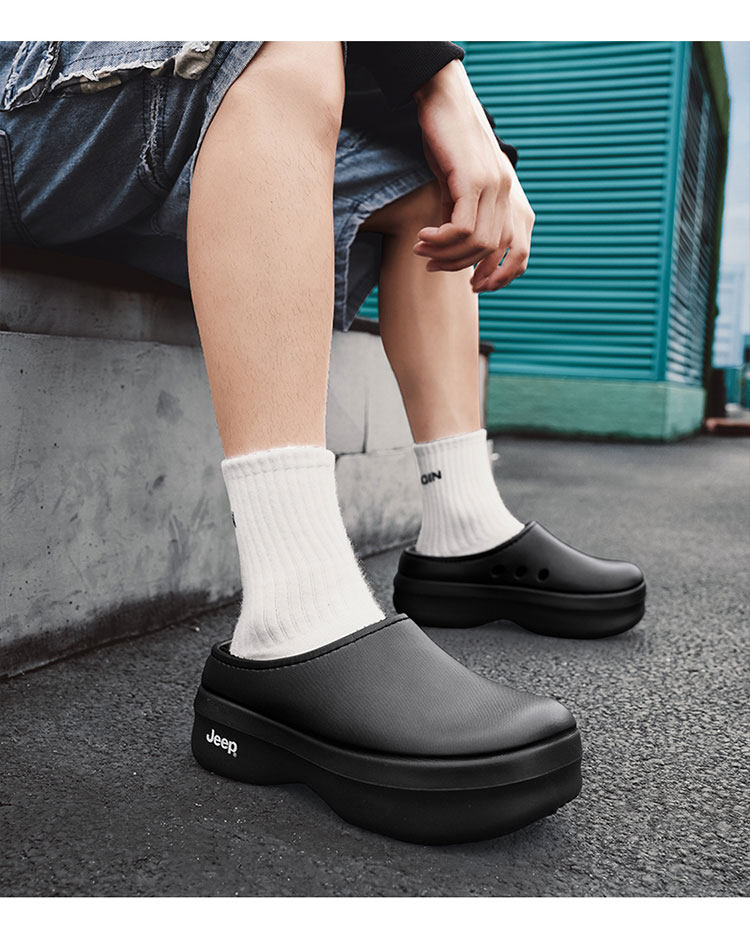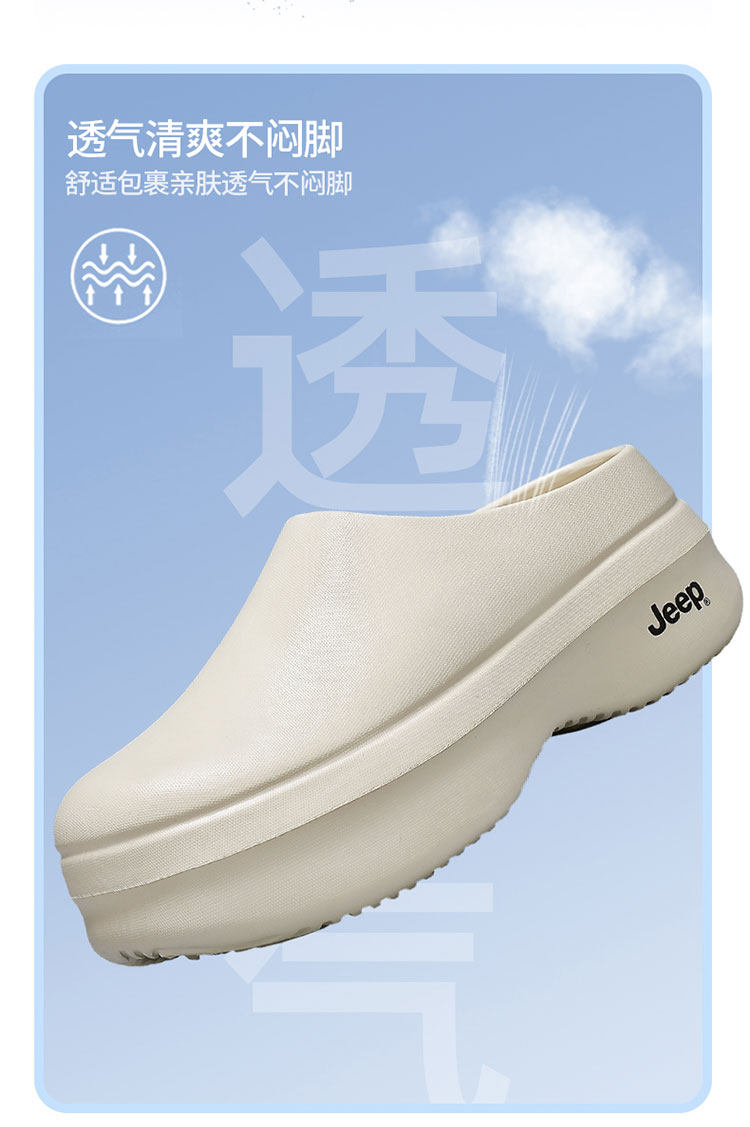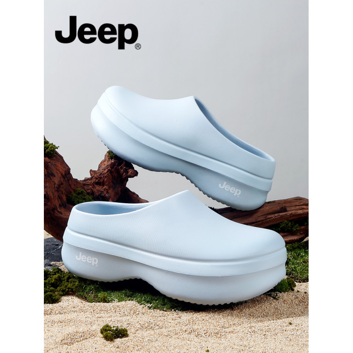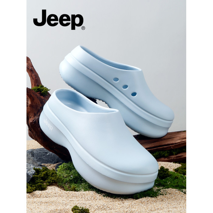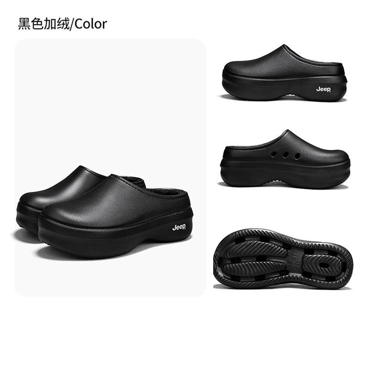 JEEP廚師鞋女冬外穿2025新款厚底增高勃肯半拖男藍色包頭洞洞拖鞋