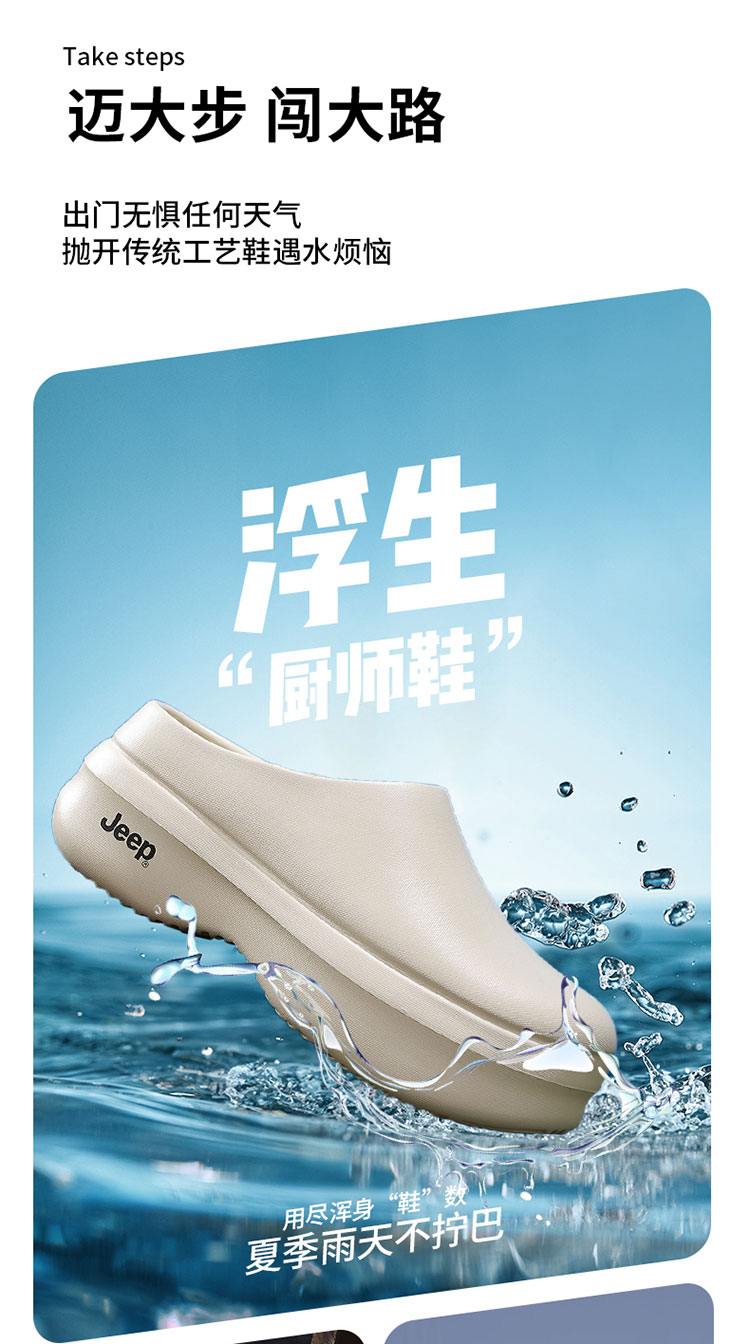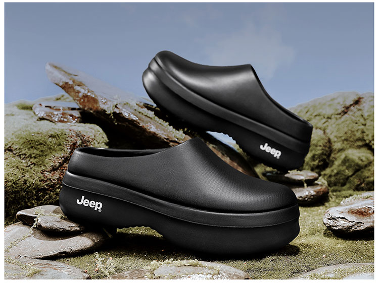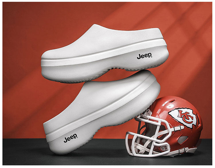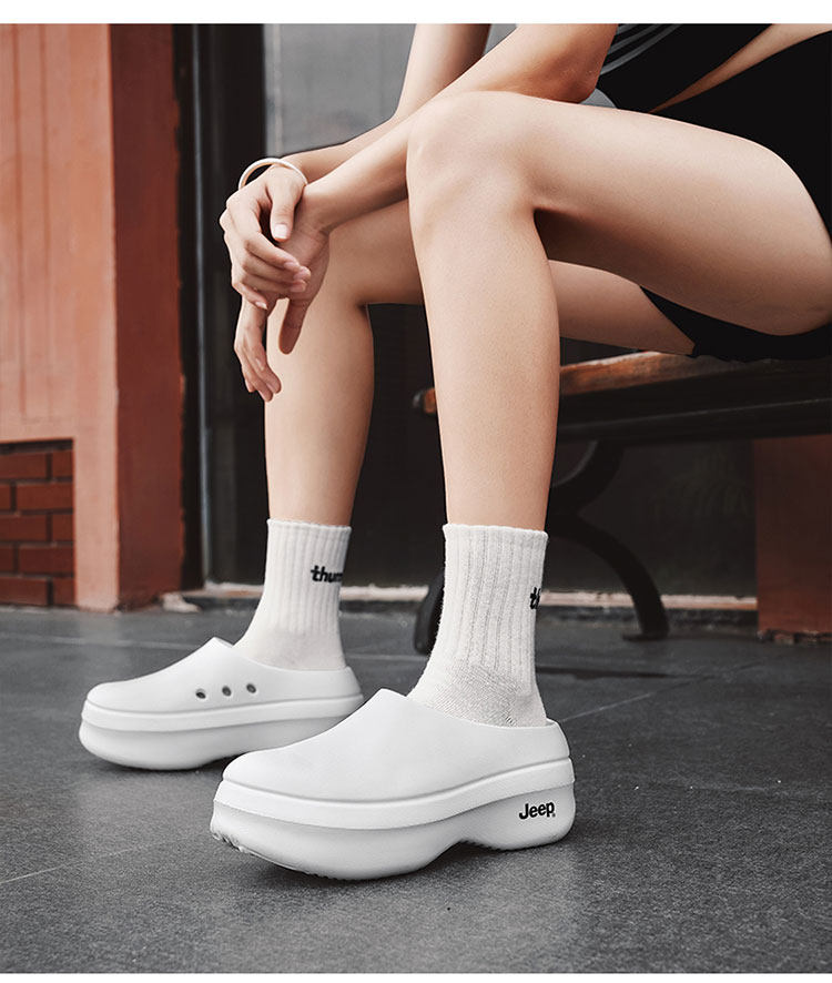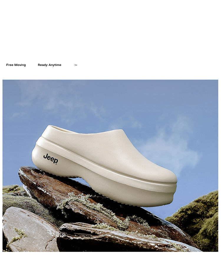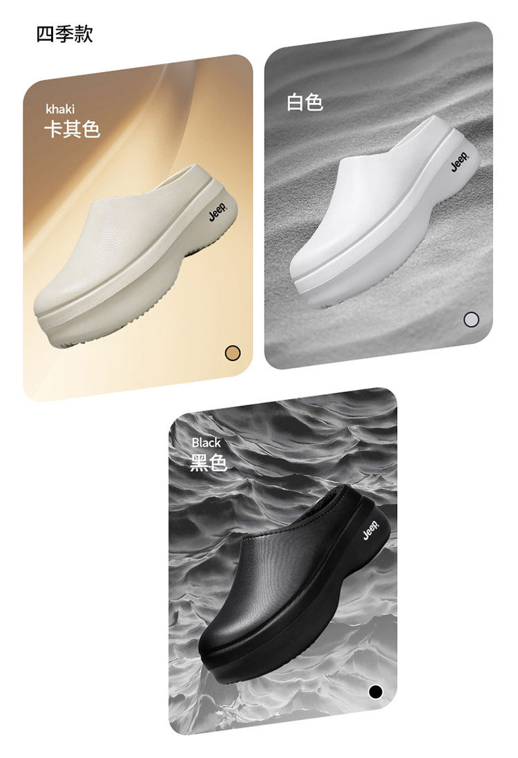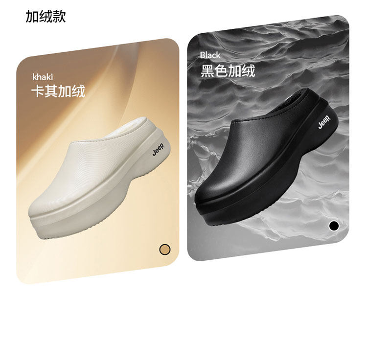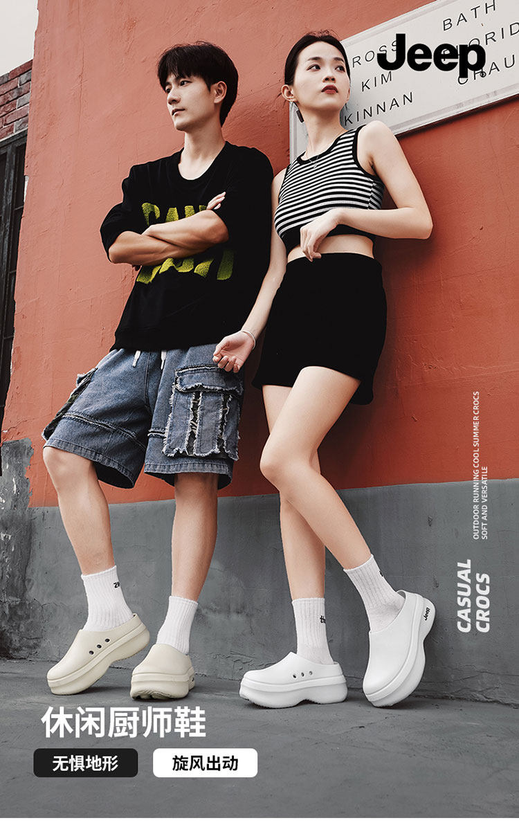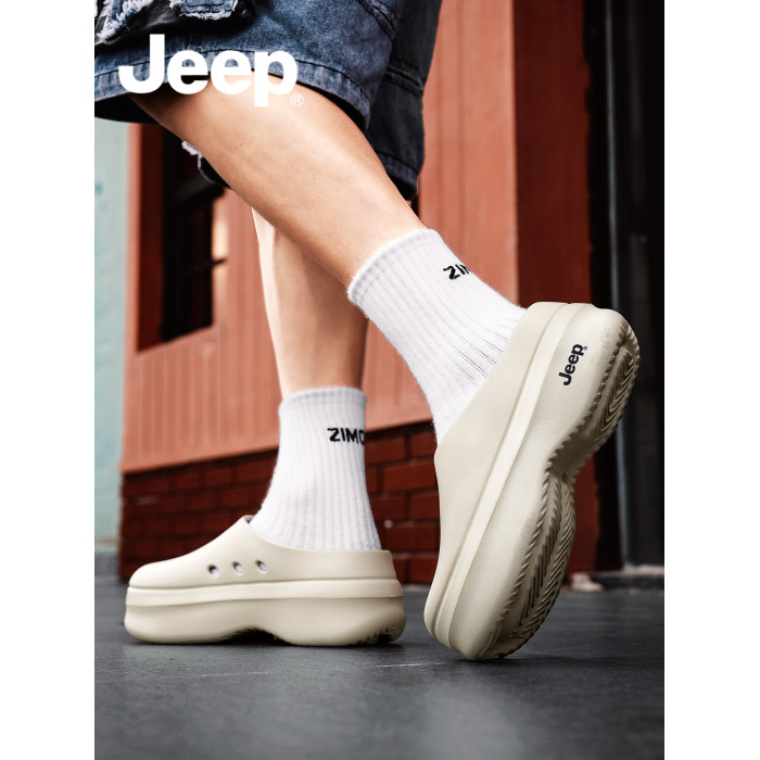 JEEP廚師鞋女冬外穿2025新款厚底增高勃肯半拖男藍色包頭洞洞拖鞋