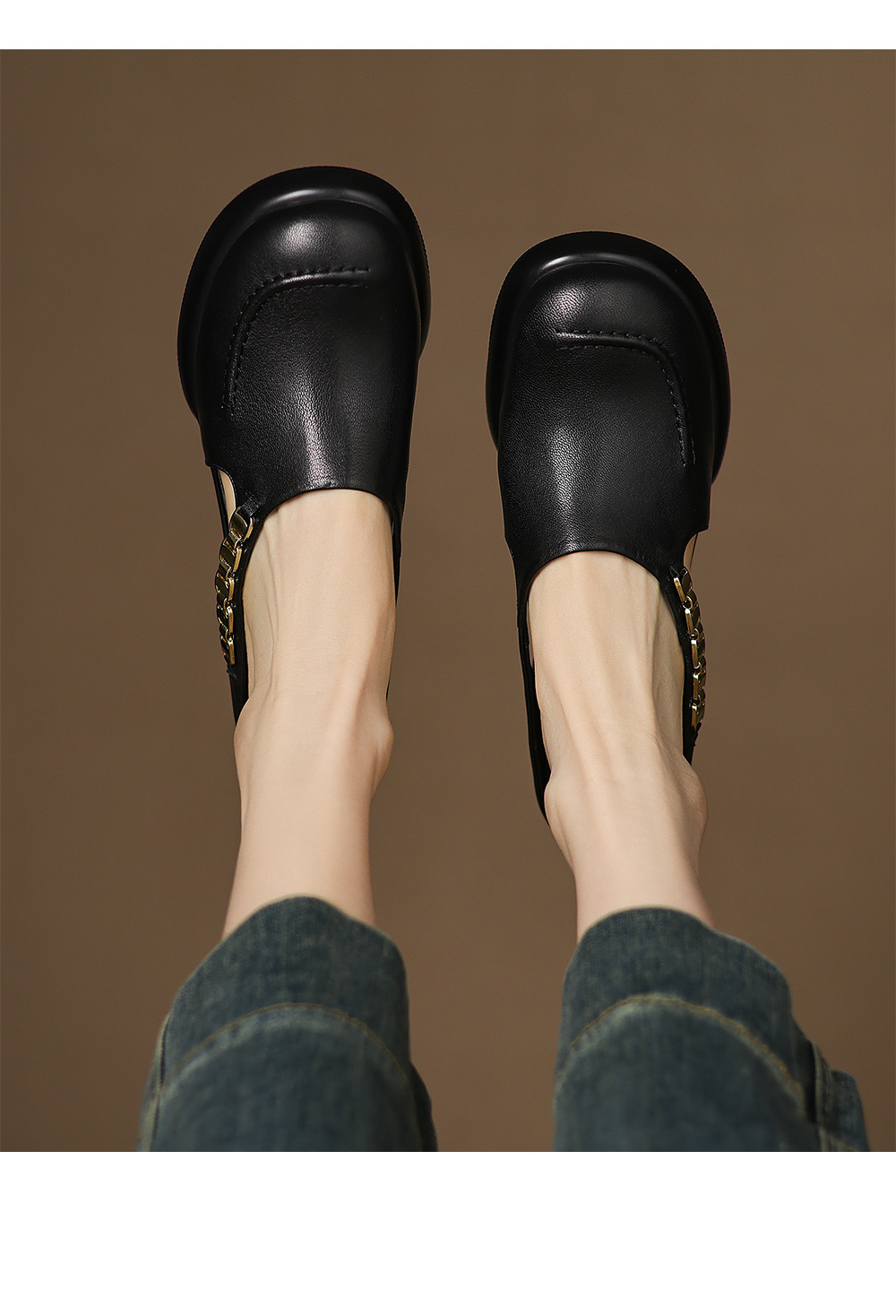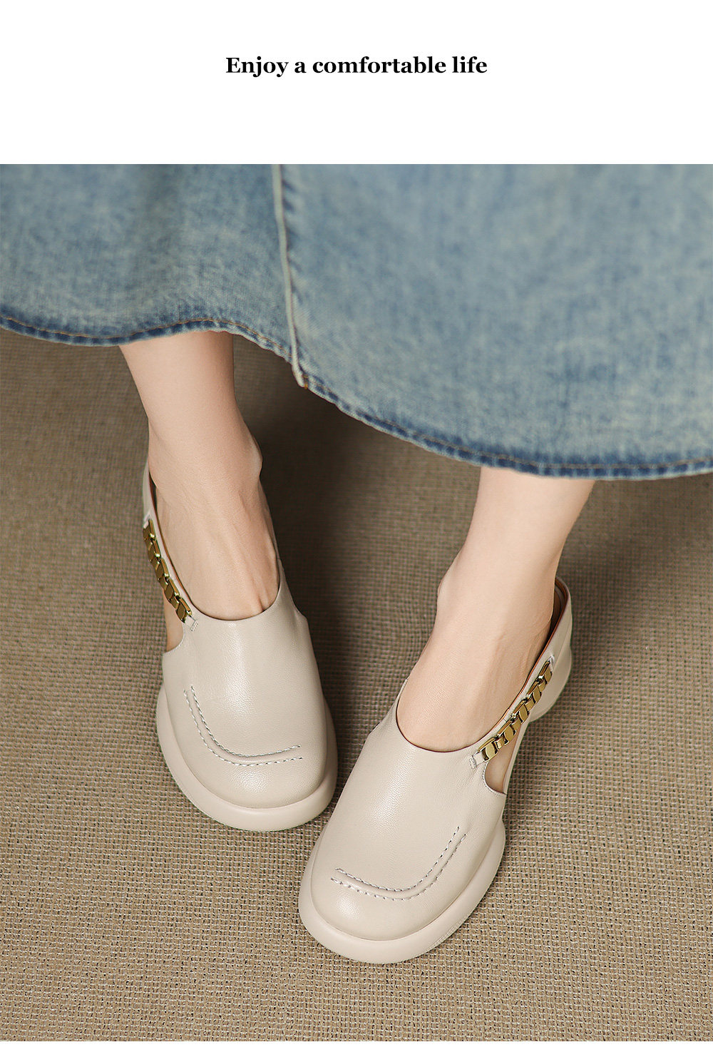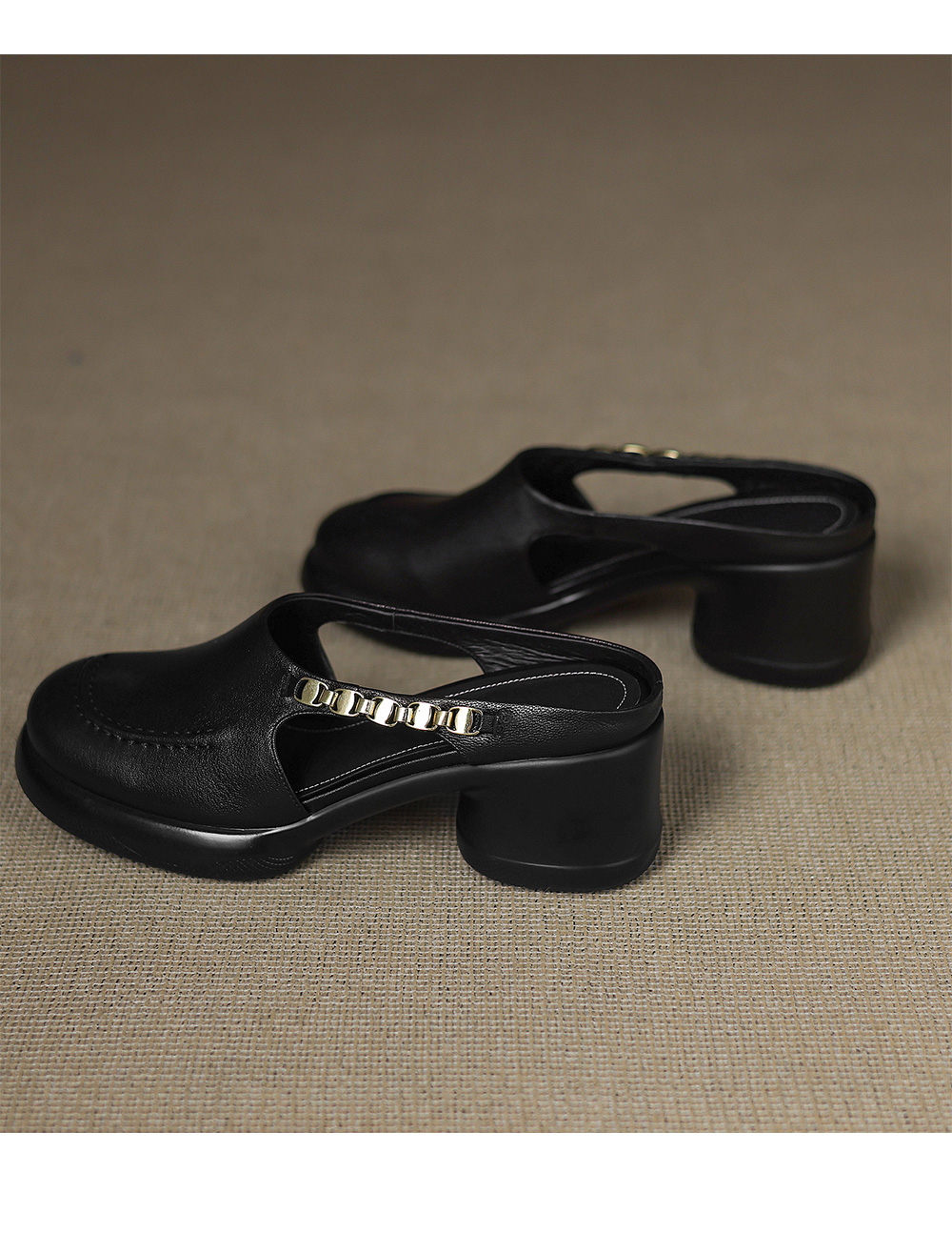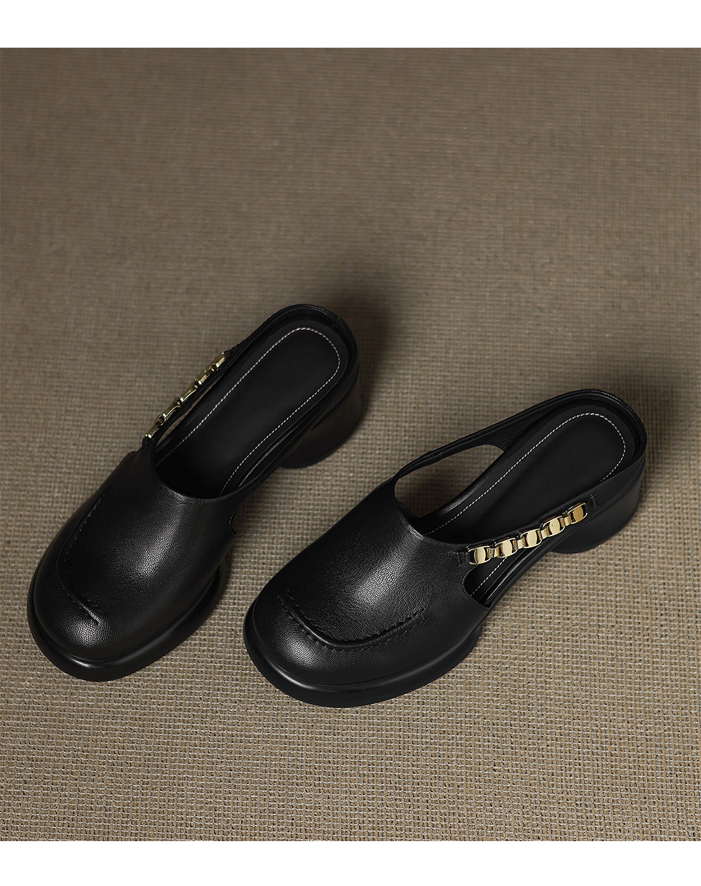 踩屎感厚底真皮包頭半拖鞋女夏季外穿圓頭一腳蹬穆勒鞋高跟涼拖鞋