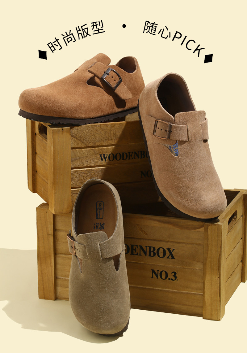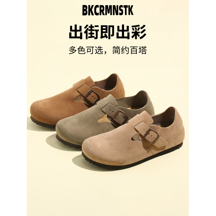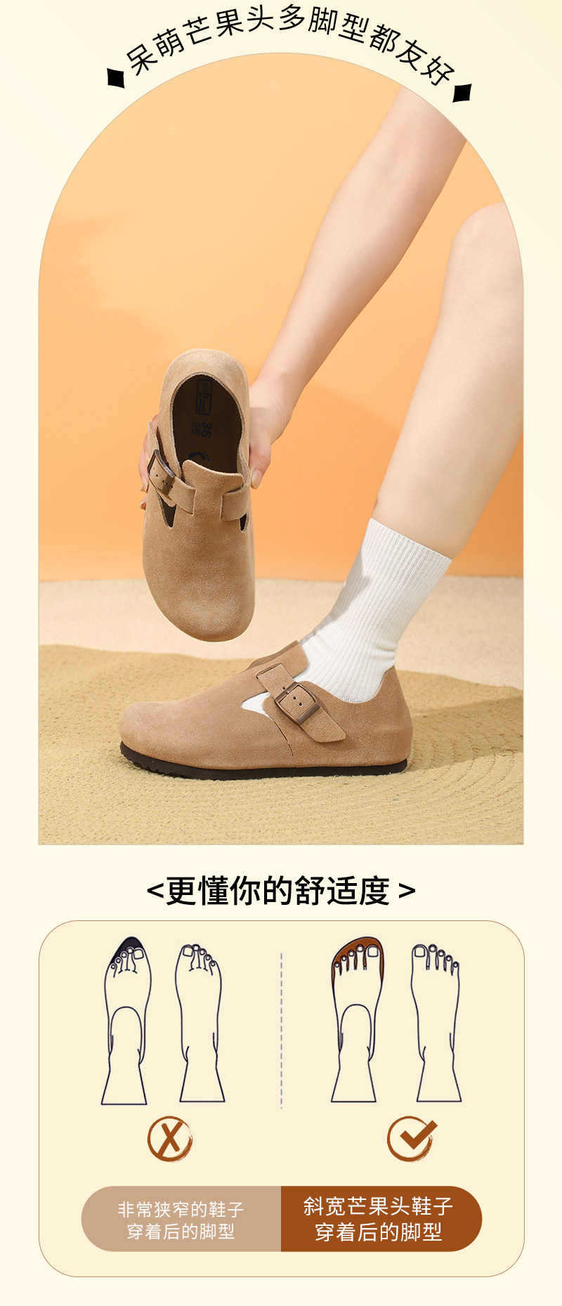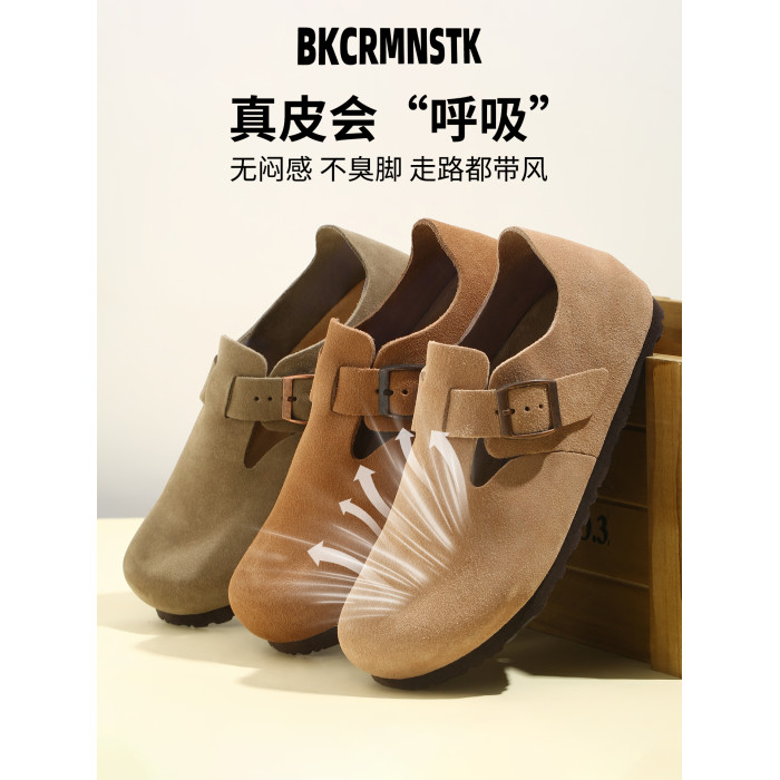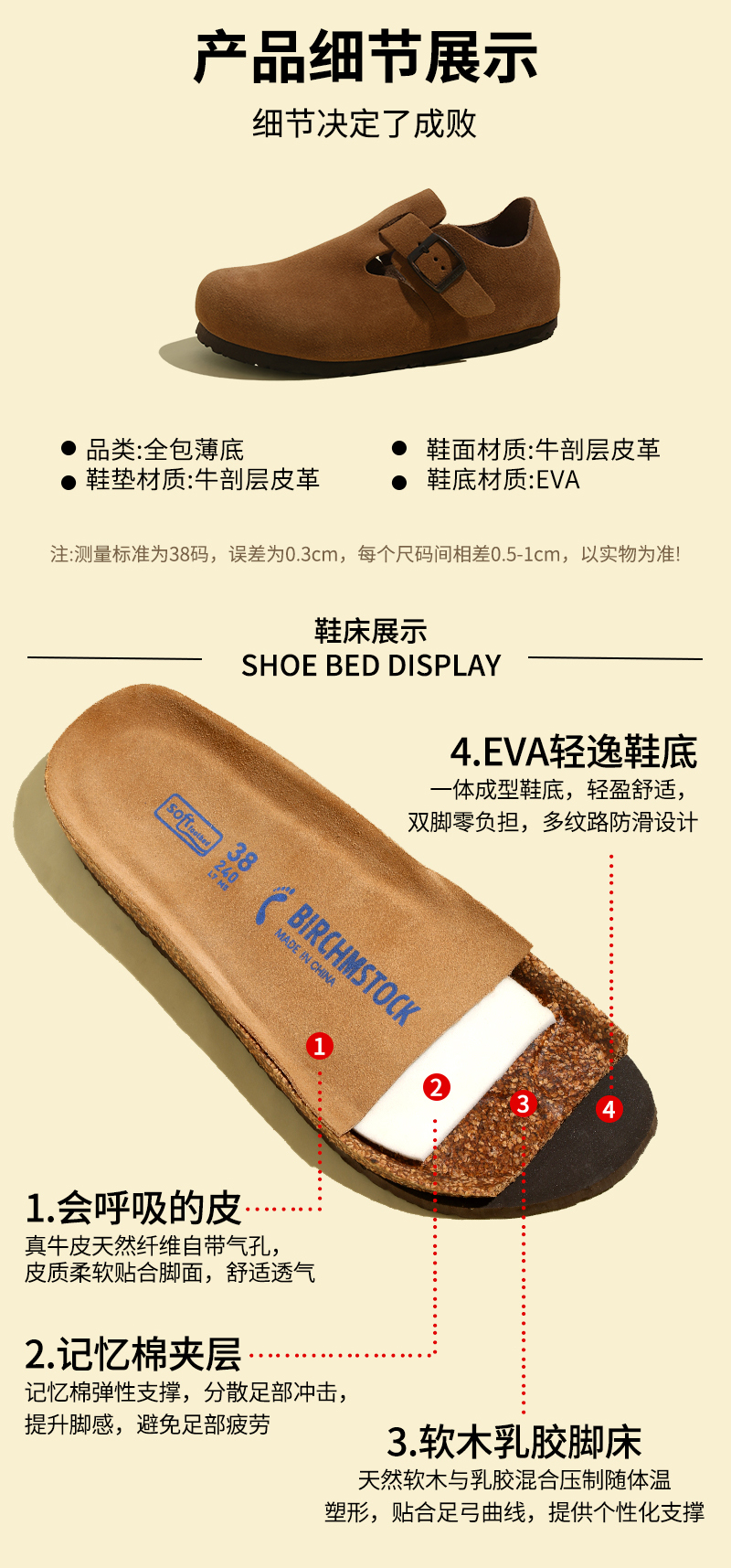 桑坡勃肯鞋全包男女同款真皮牛皮春夏休閒時尚軟木平底包頭博肯鞋
