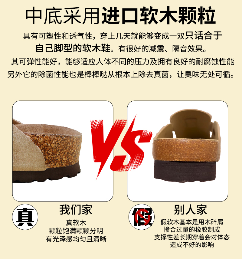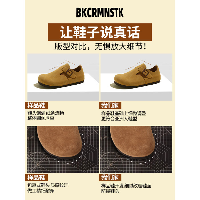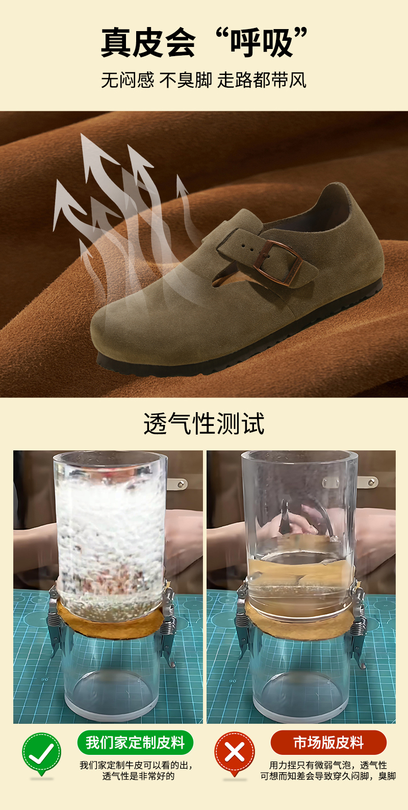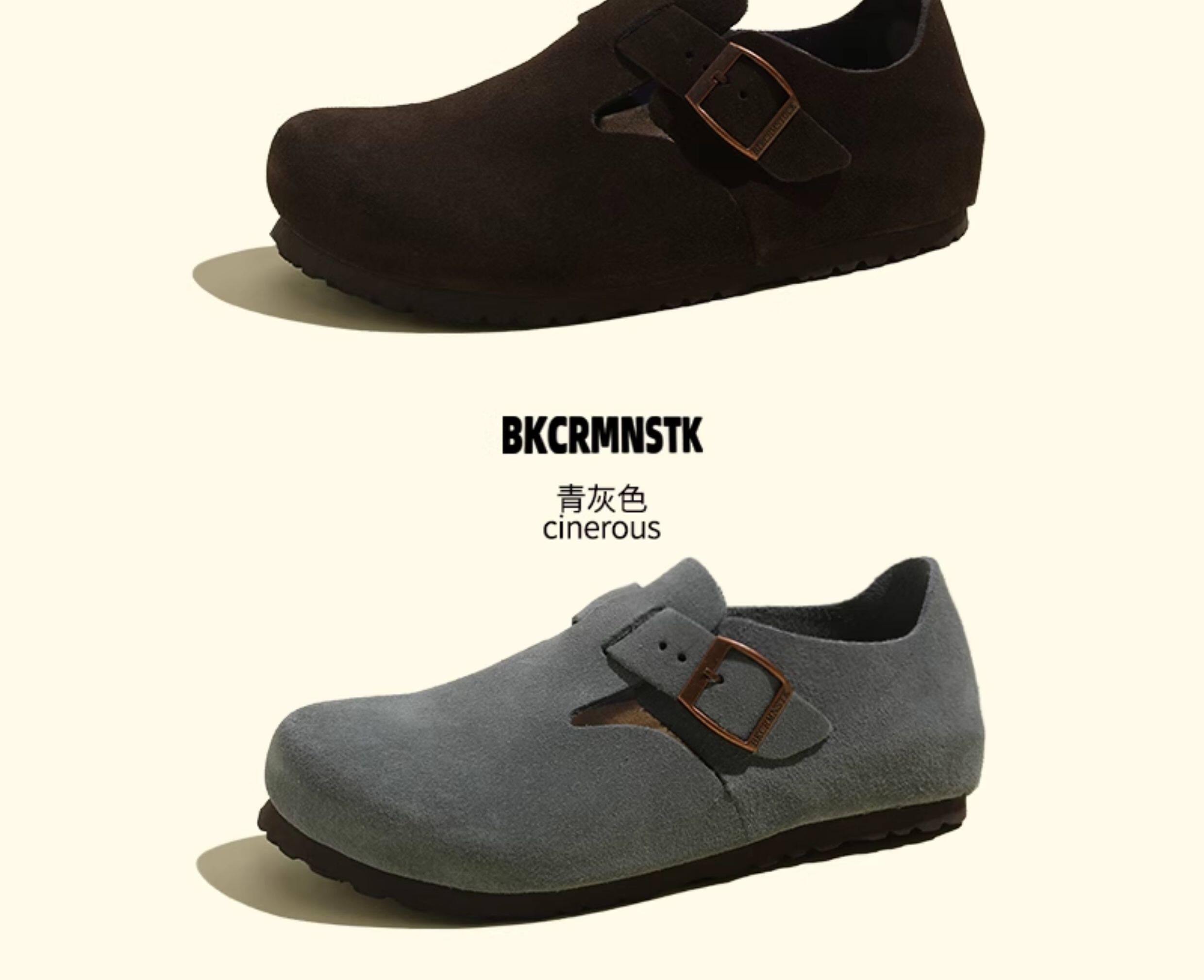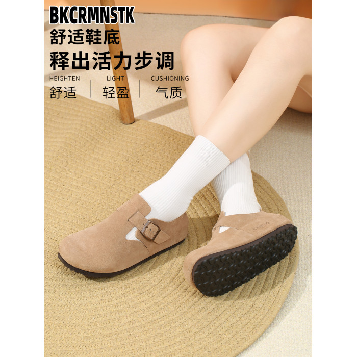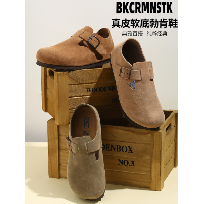 桑坡勃肯鞋全包男女同款真皮牛皮春夏休閒時尚軟木平底包頭博肯鞋