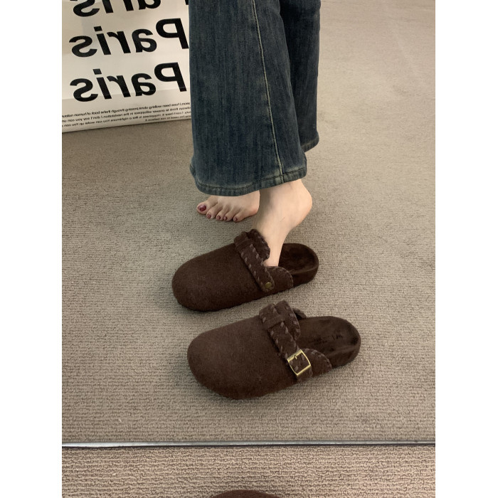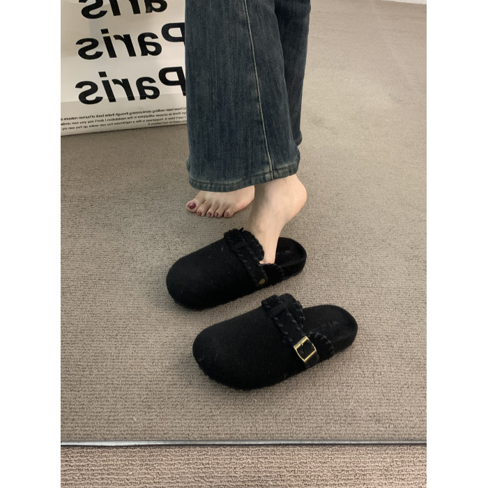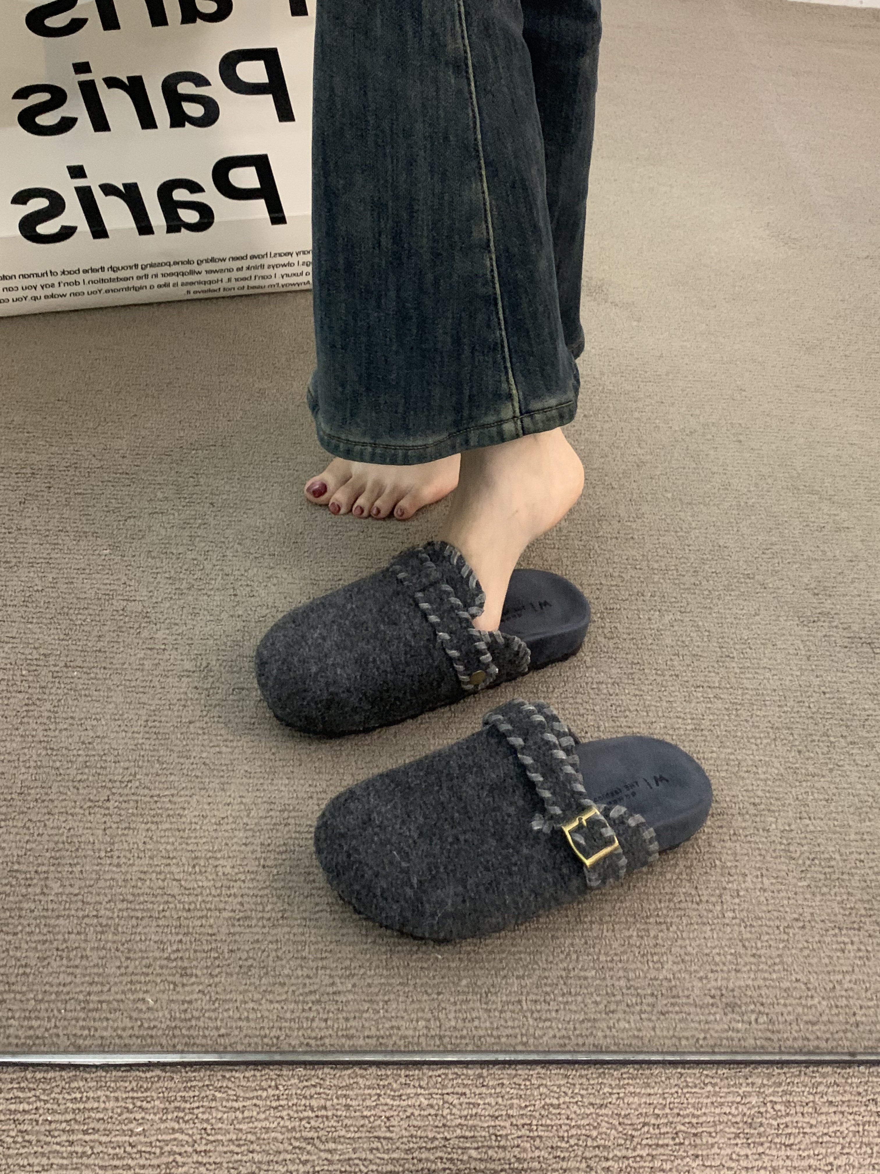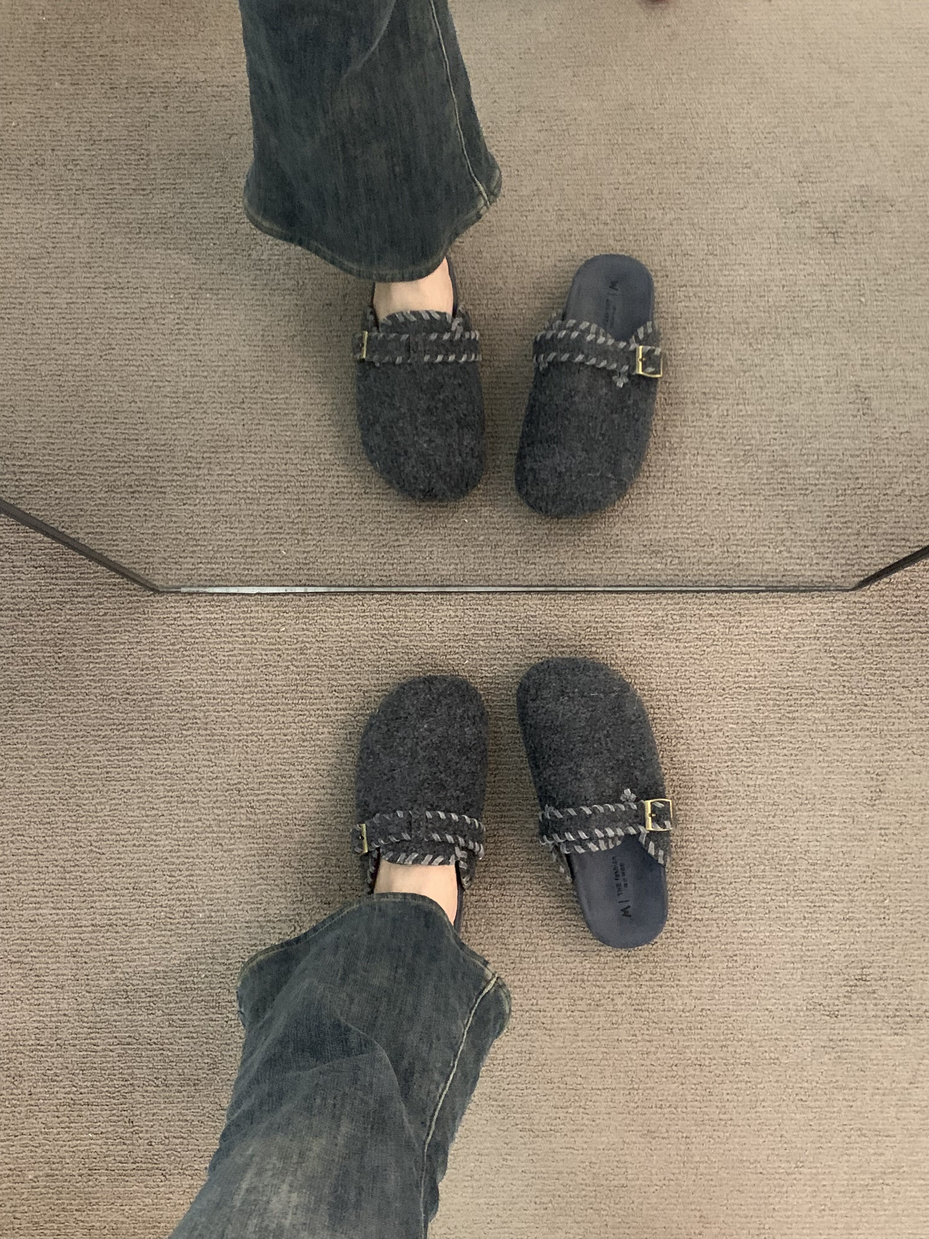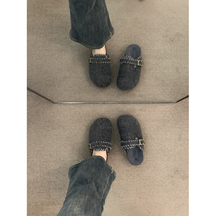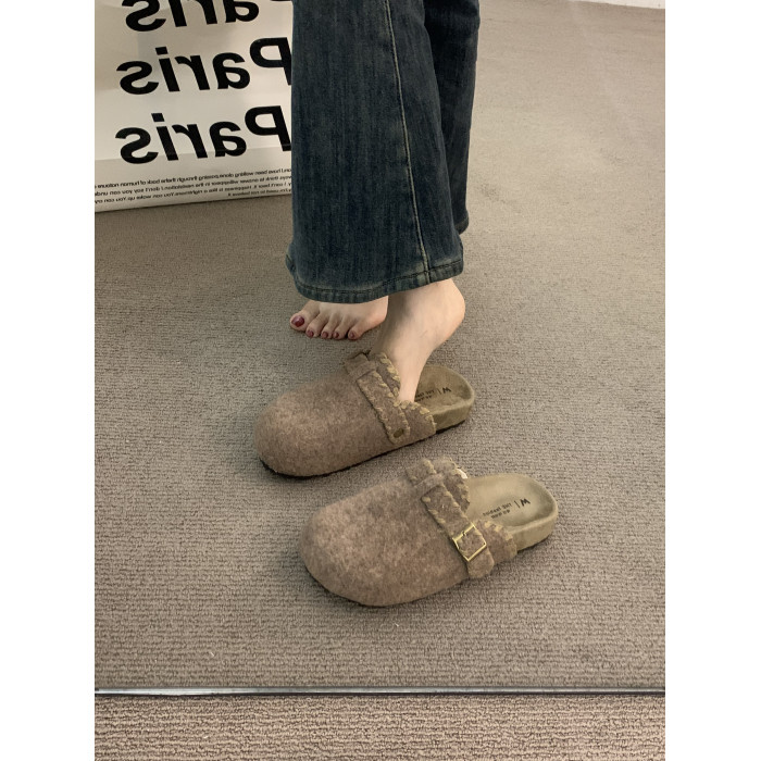 厚底灰色勃肯鞋包頭毛毛拖鞋女外穿2025新款秋冬一腳蹬半拖棉拖鞋