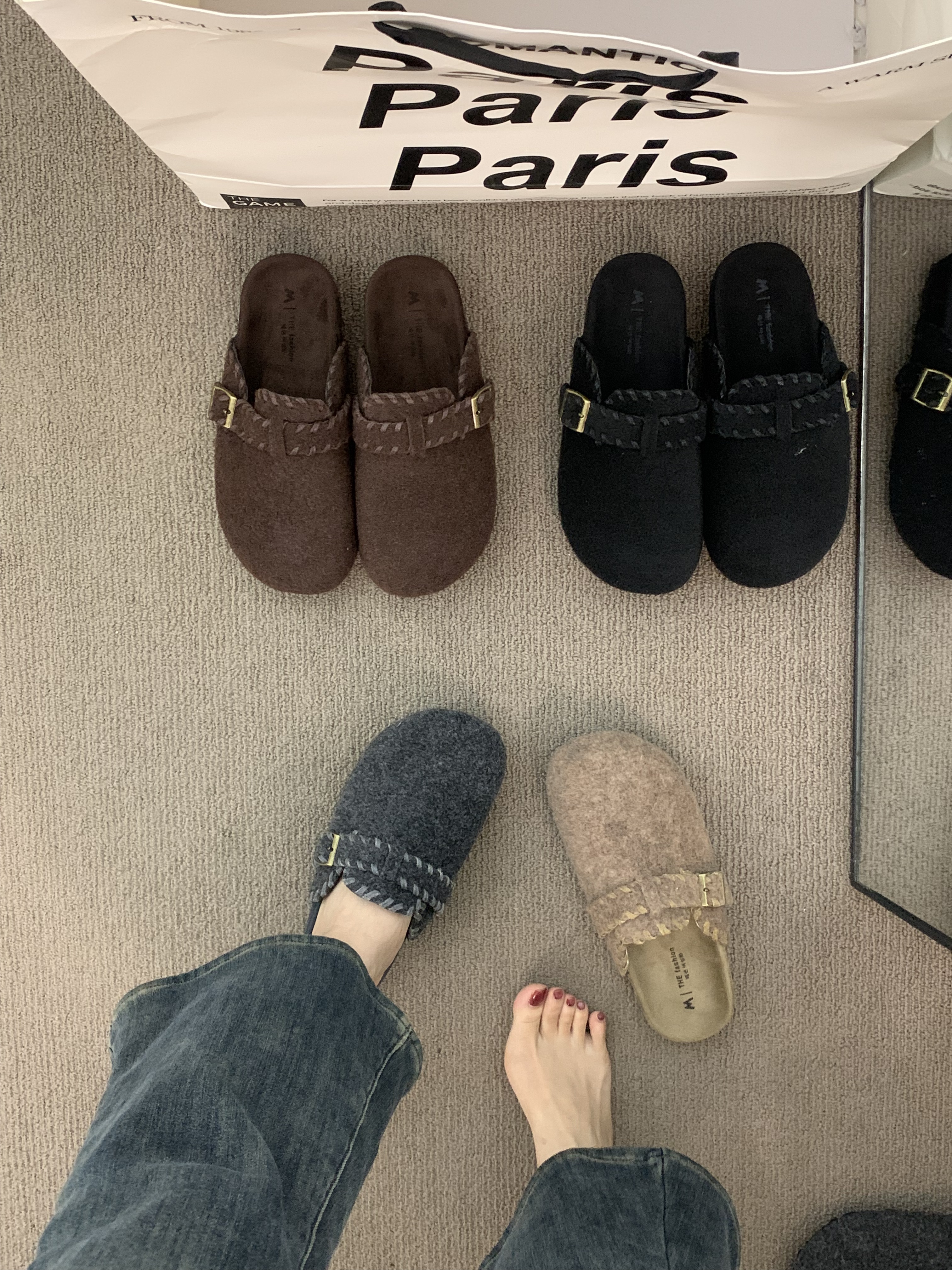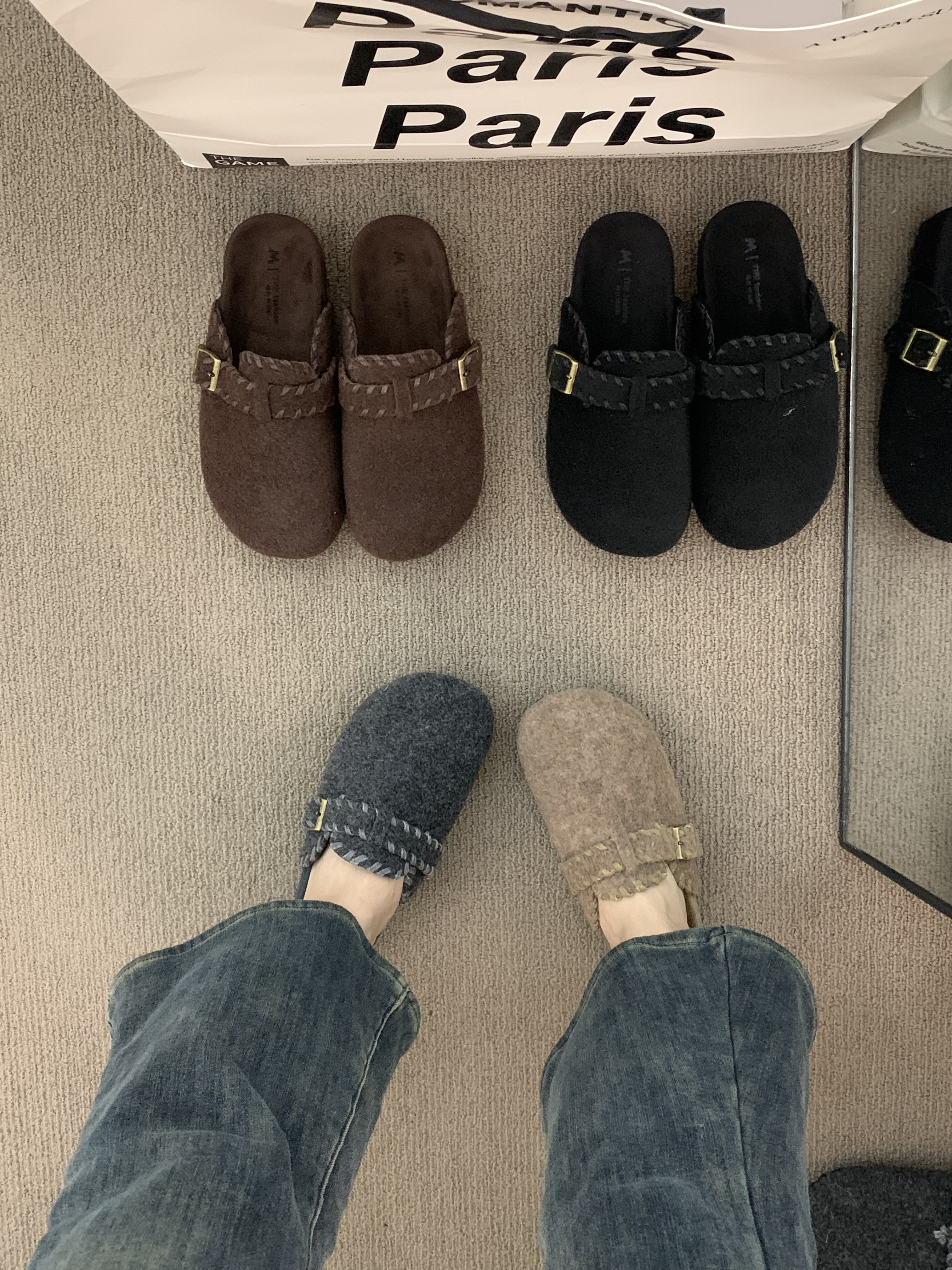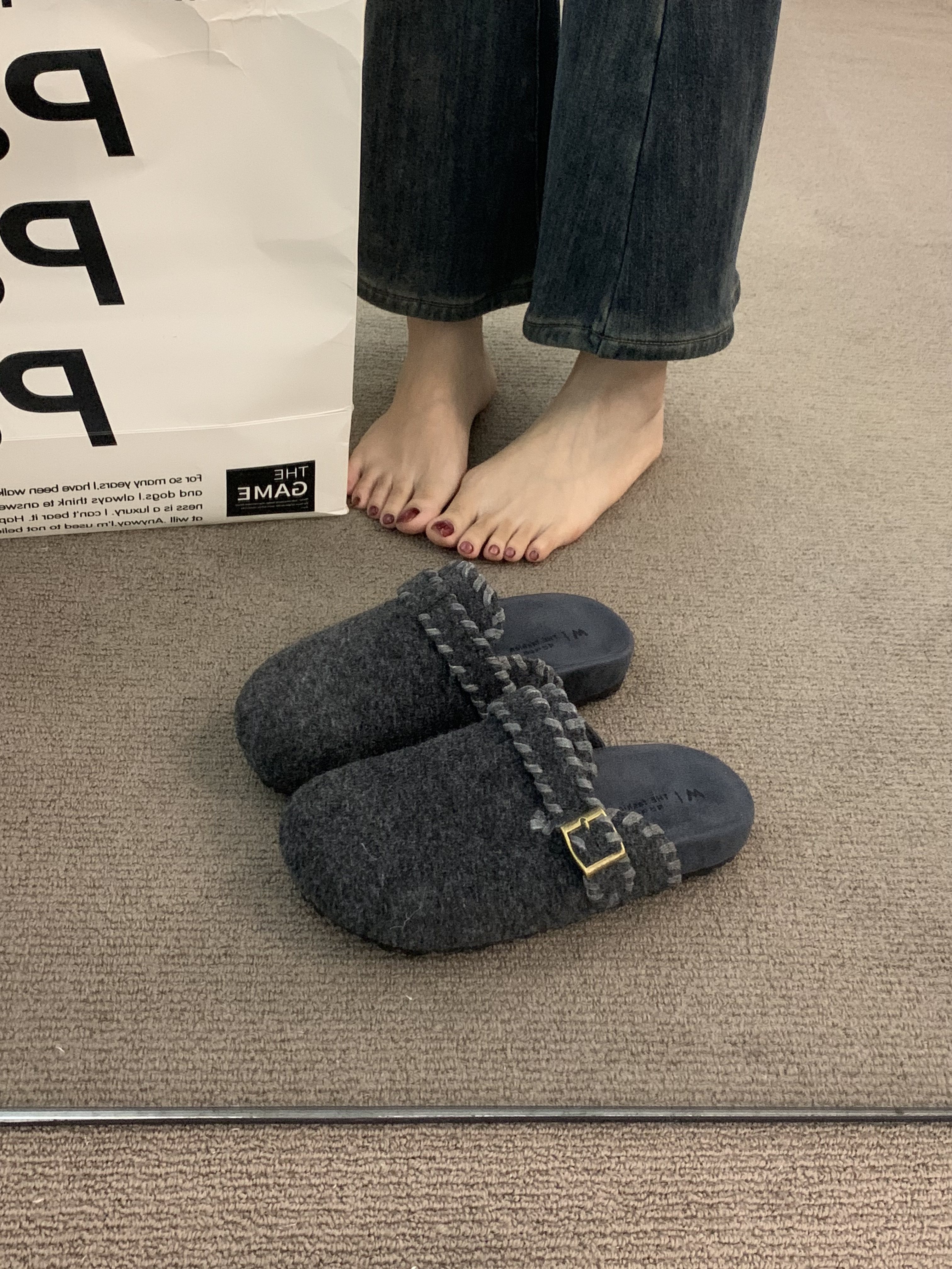 厚底灰色勃肯鞋包頭毛毛拖鞋女外穿2025新款秋冬一腳蹬半拖棉拖鞋