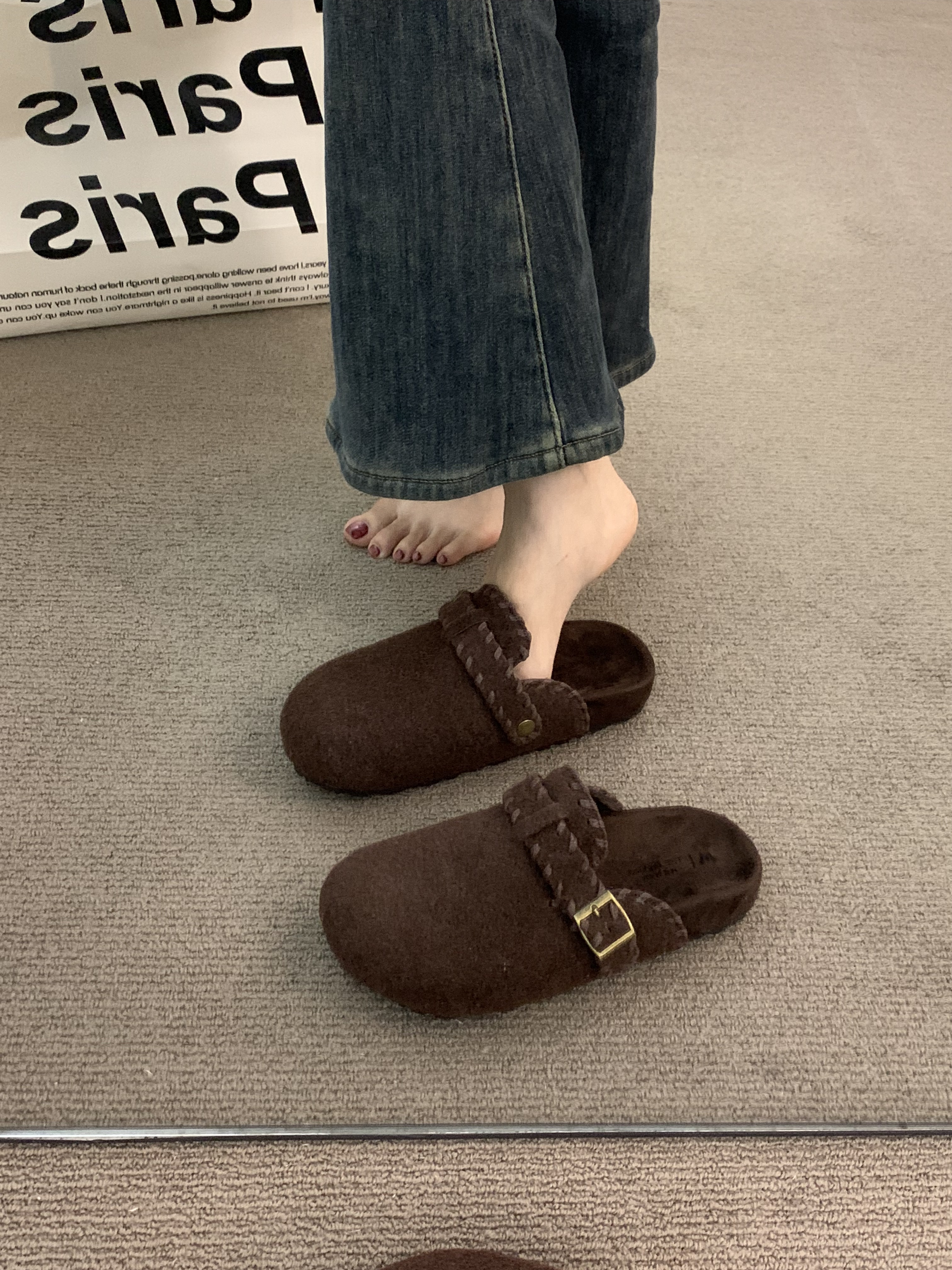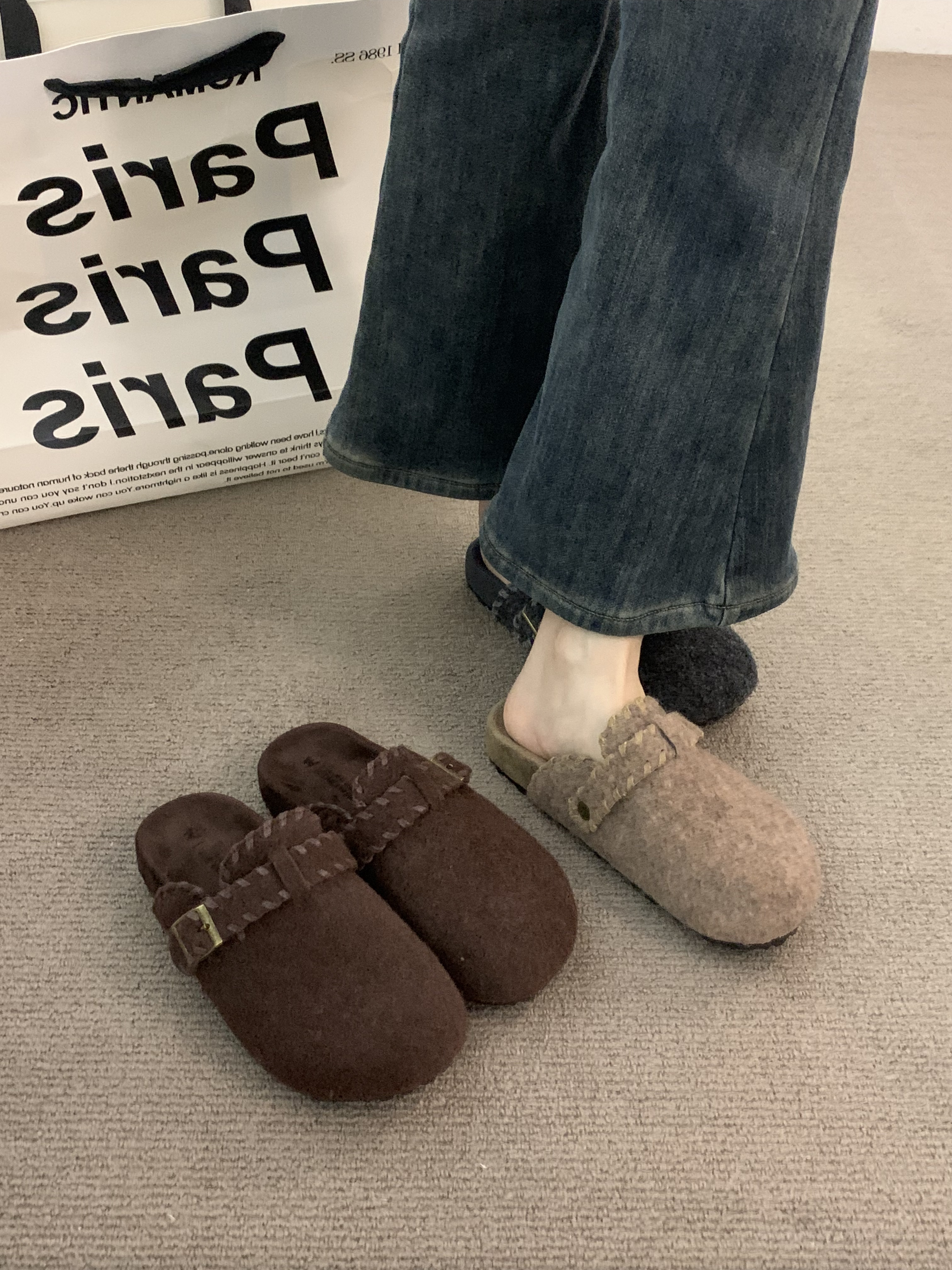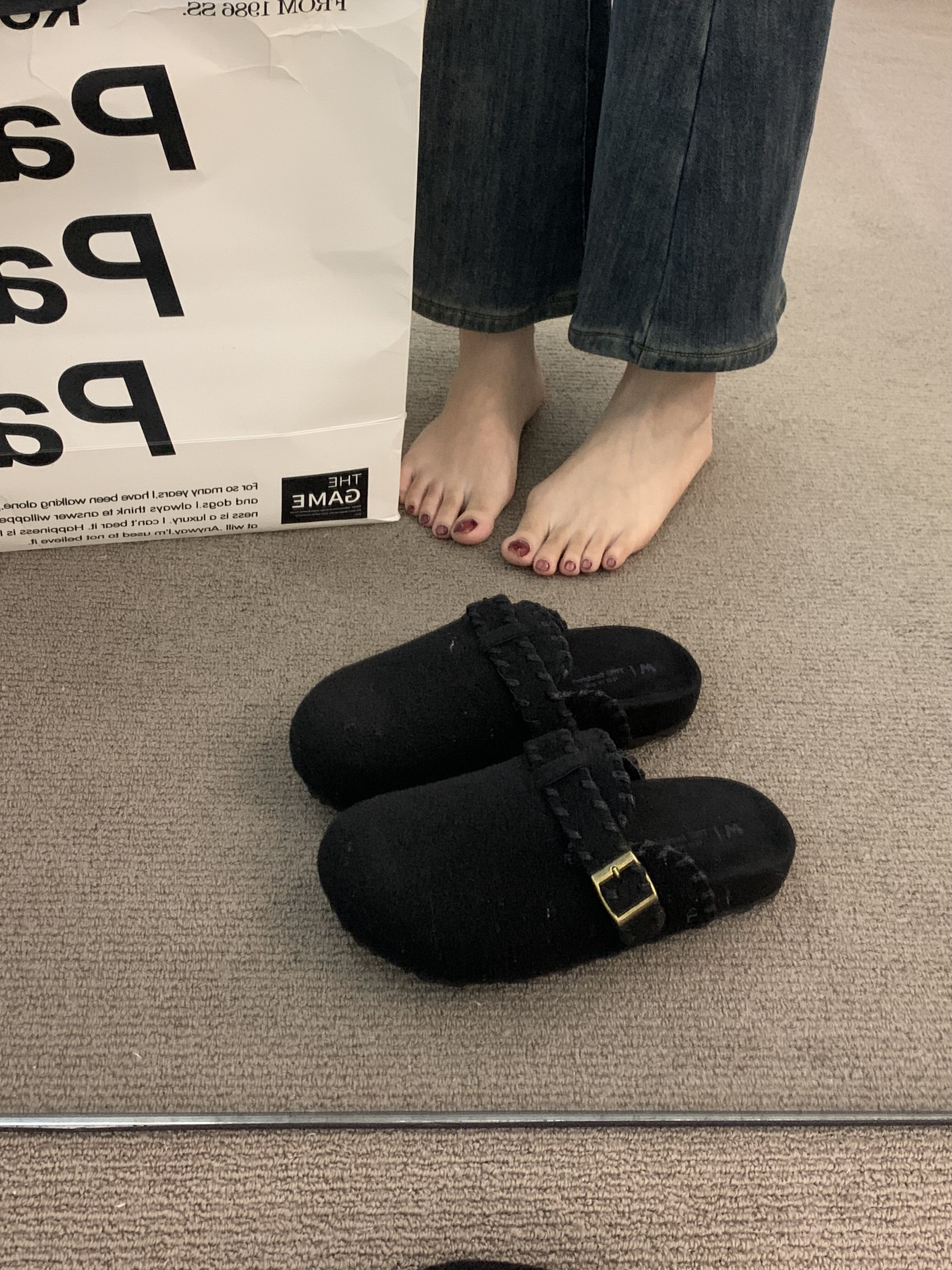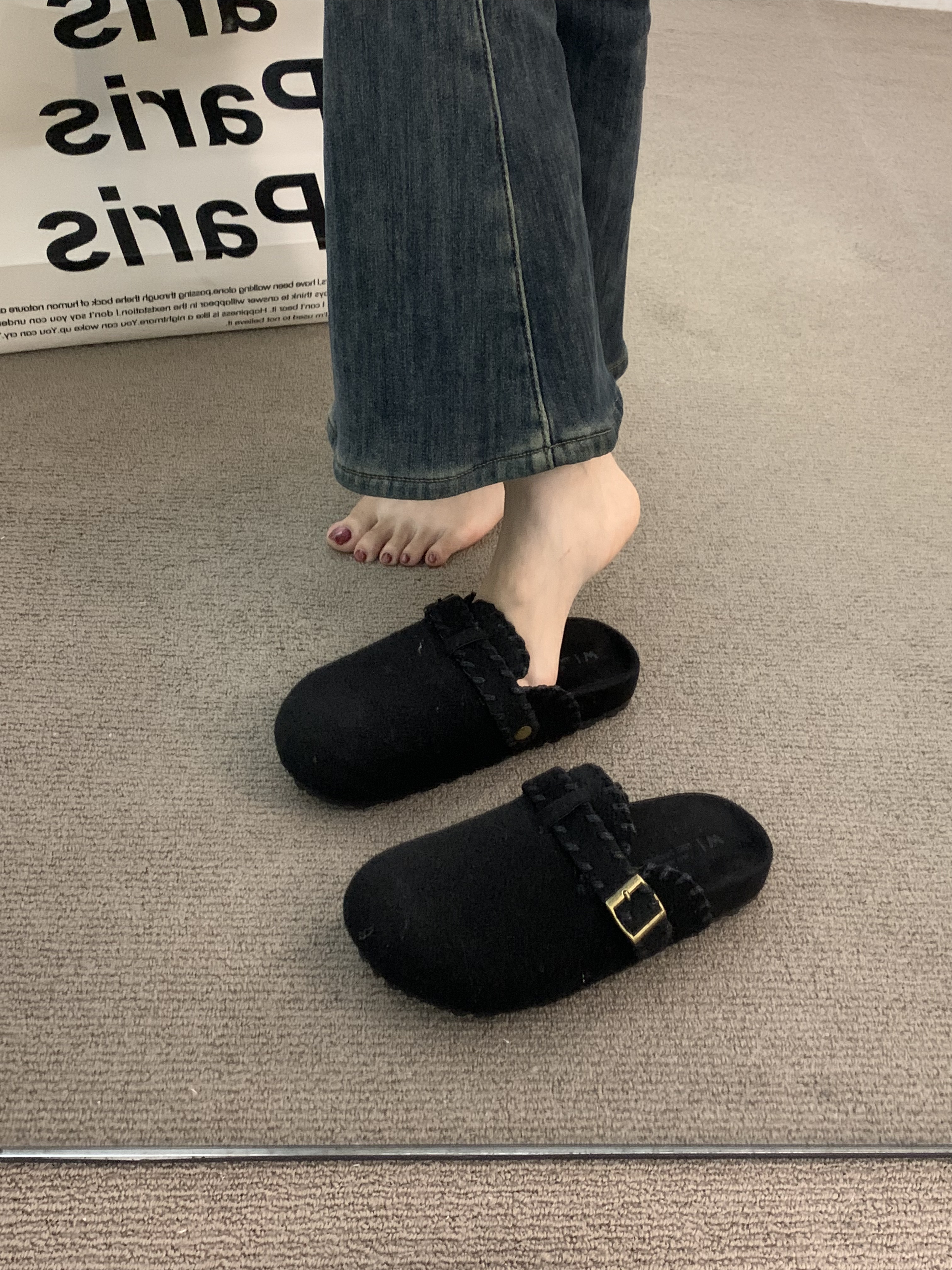 厚底灰色勃肯鞋包頭毛毛拖鞋女外穿2025新款秋冬一腳蹬半拖棉拖鞋