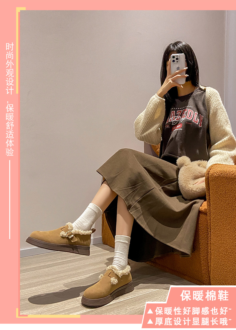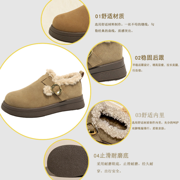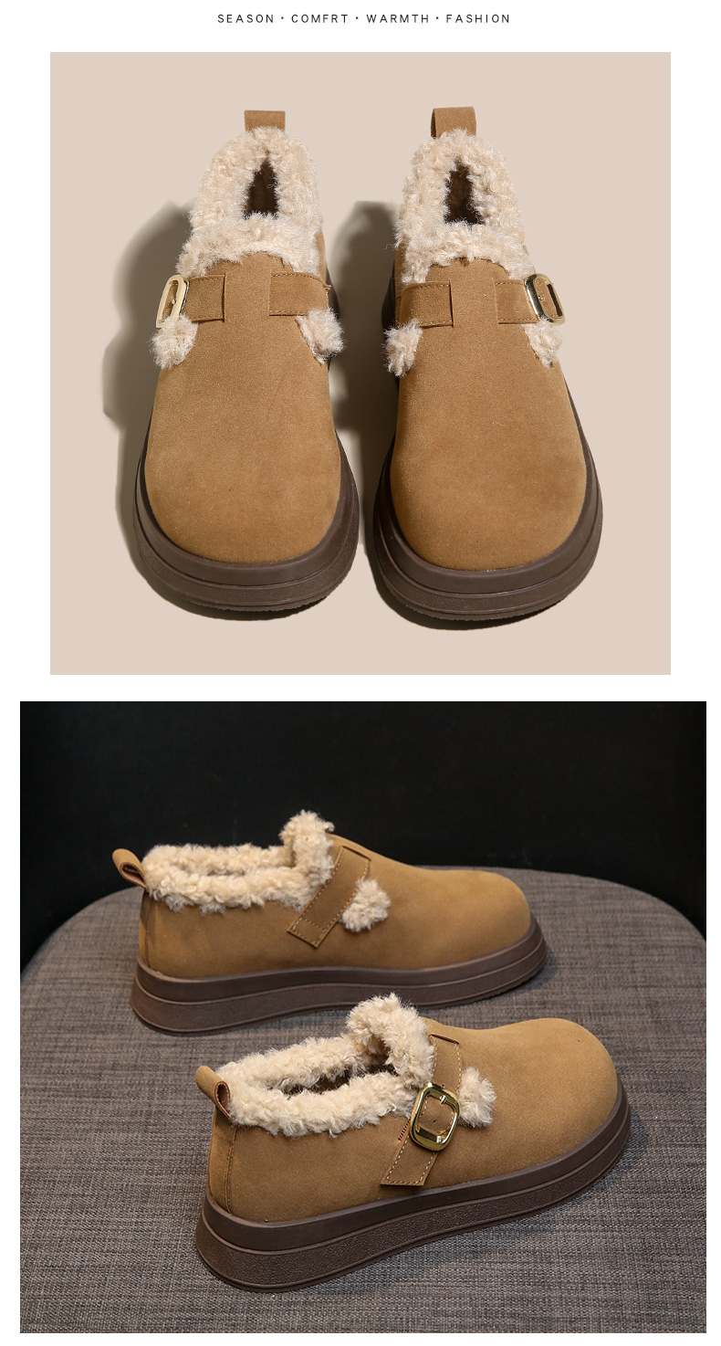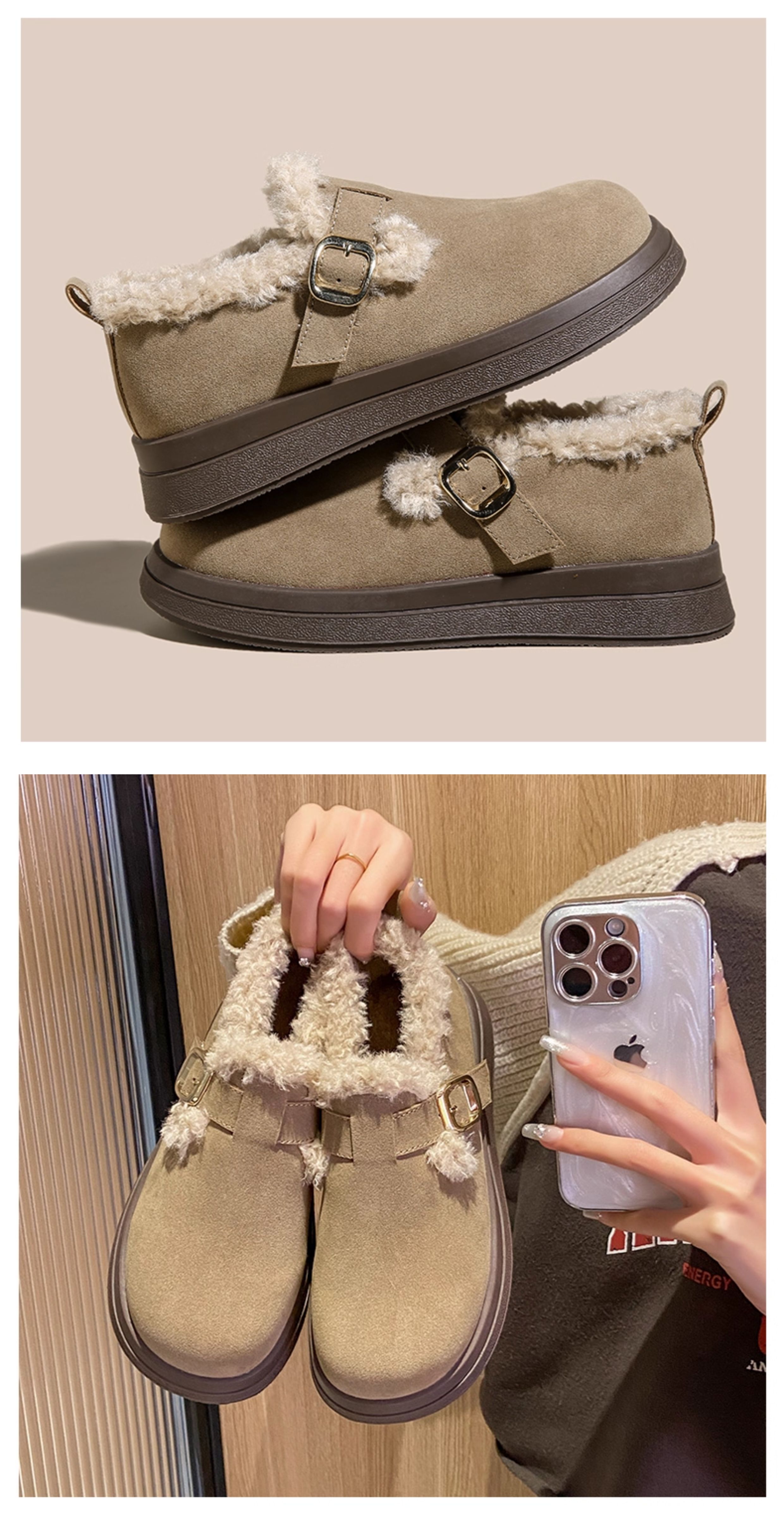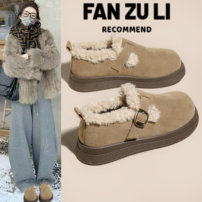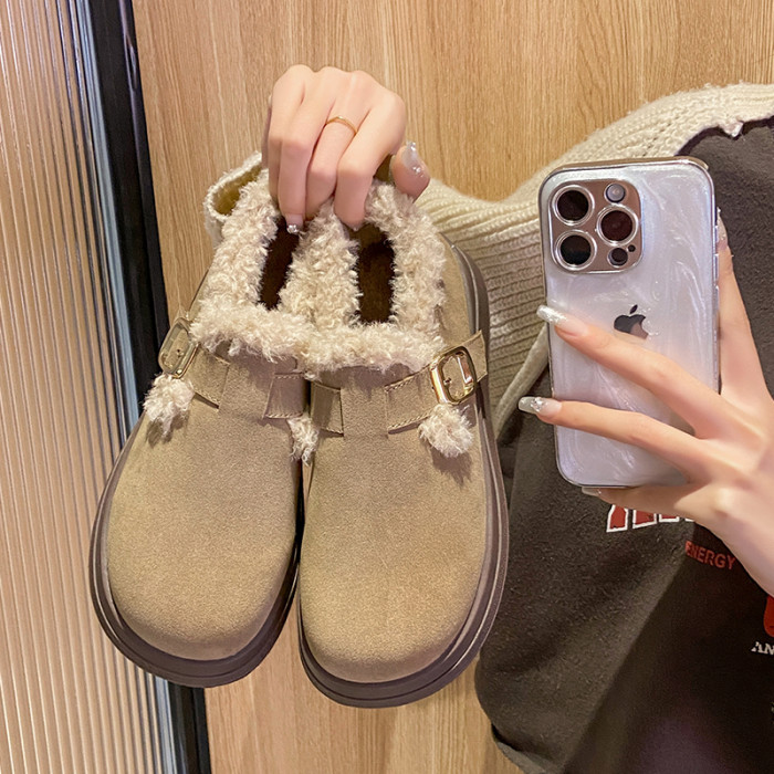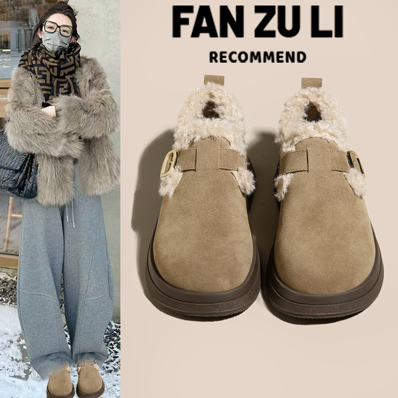 加絨勃肯鞋女2025新款冬季懶人鞋包頭博肯女鞋低幫雪地靴保暖棉鞋