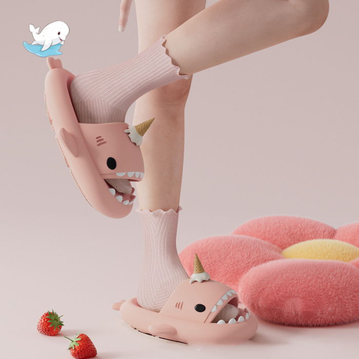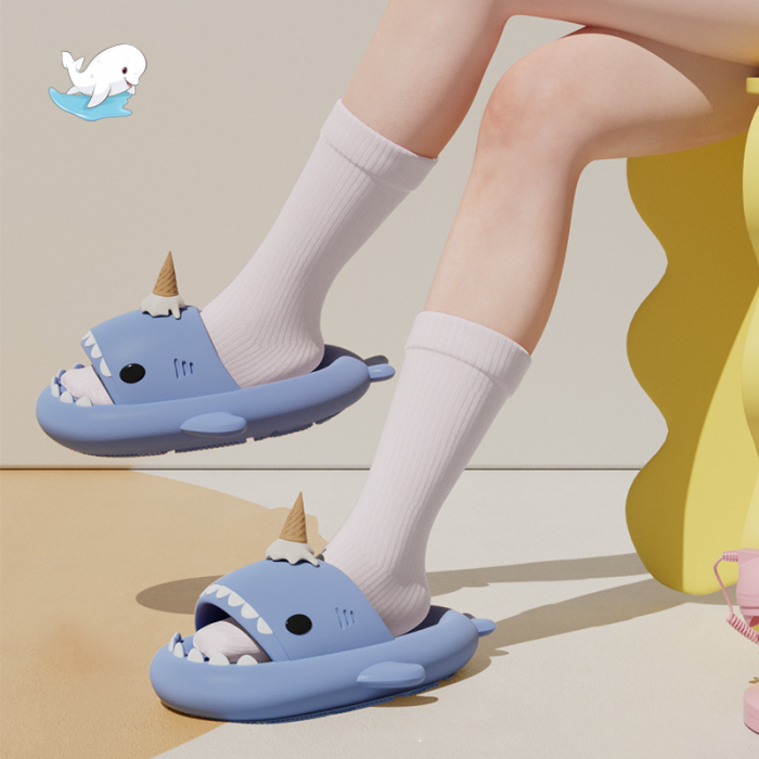 冰淇淋鯊魚拖鞋加厚防臭抗菌防滑男女情侶居家外穿室內洗澡涼拖鞋