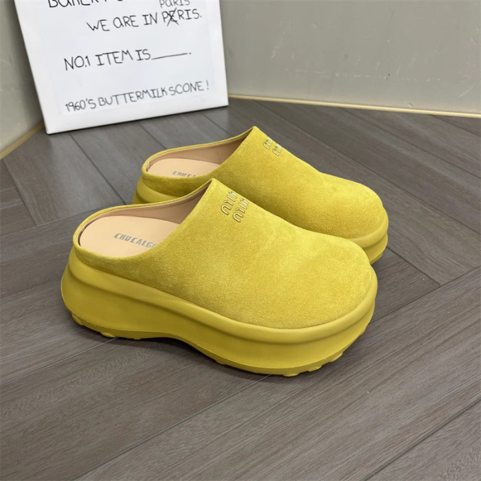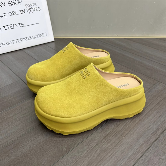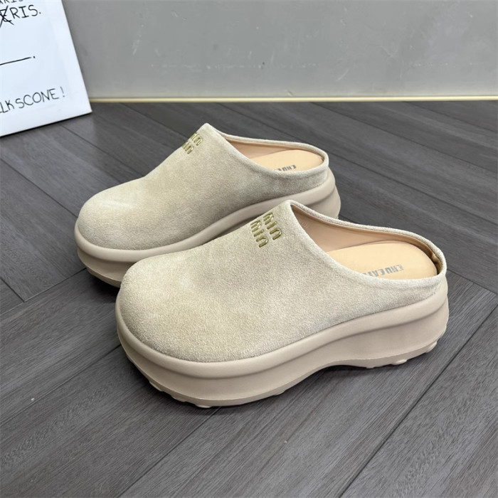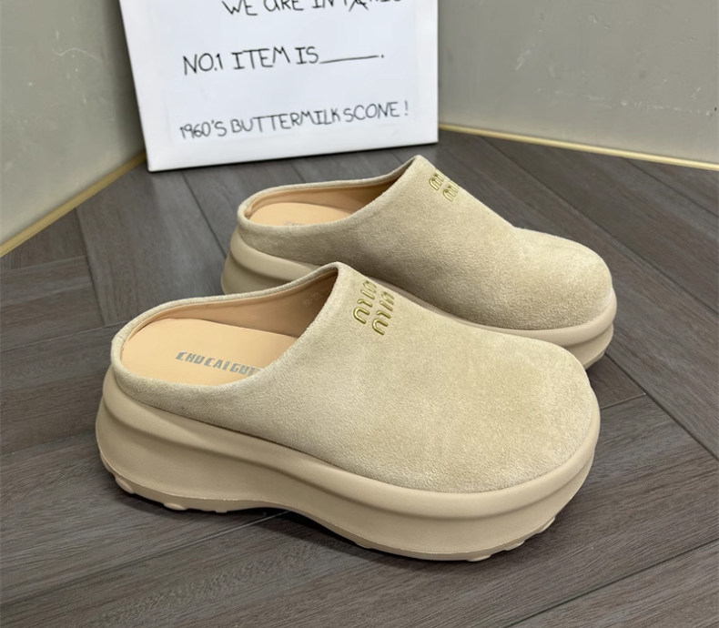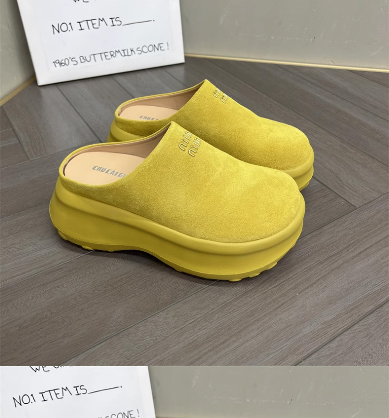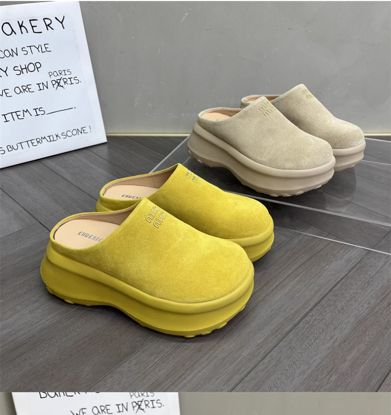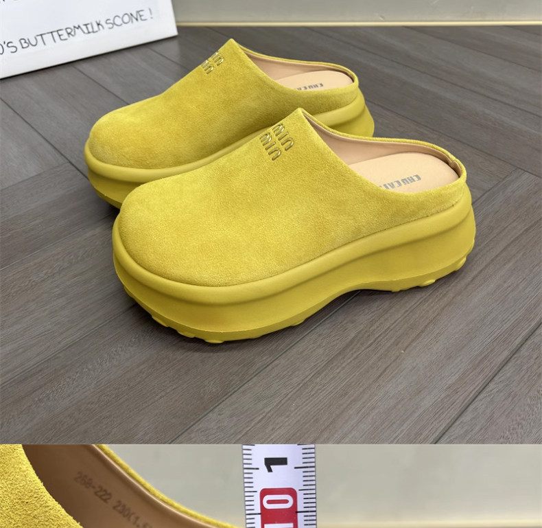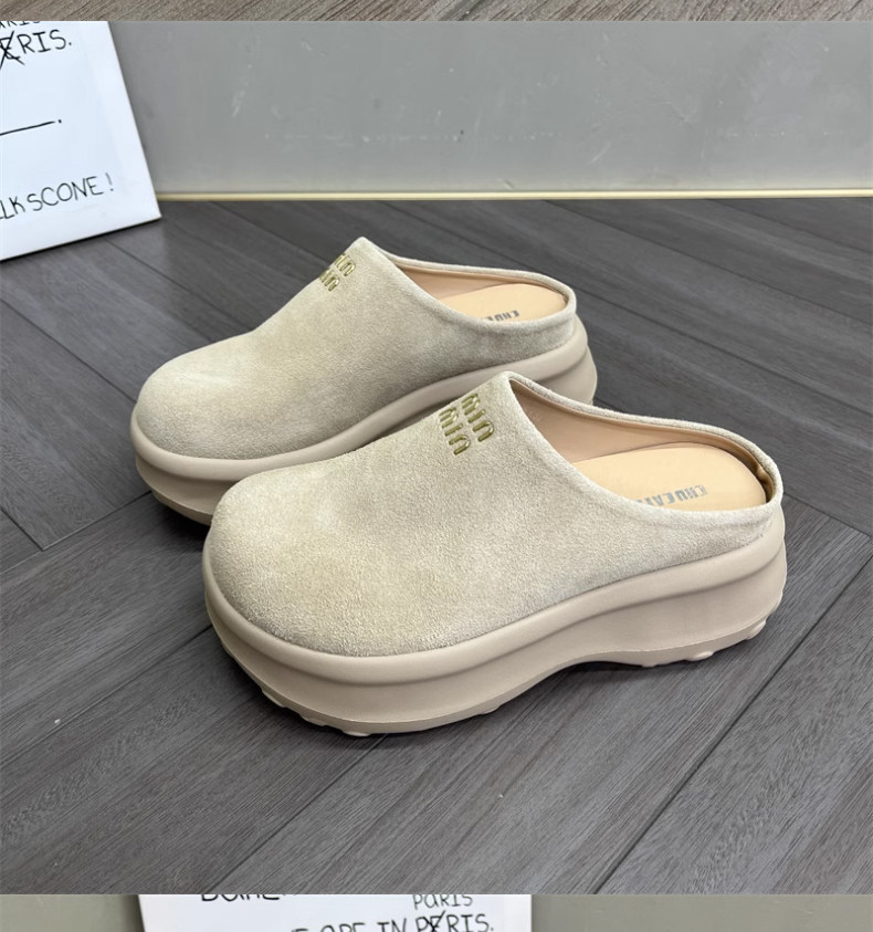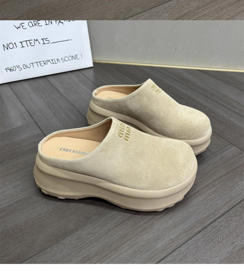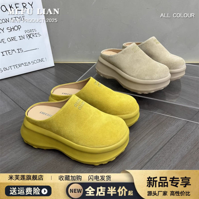 厚底包頭半拖鞋勃肯鞋女2025春秋新款絨面松糕底小個子增高拖鞋子