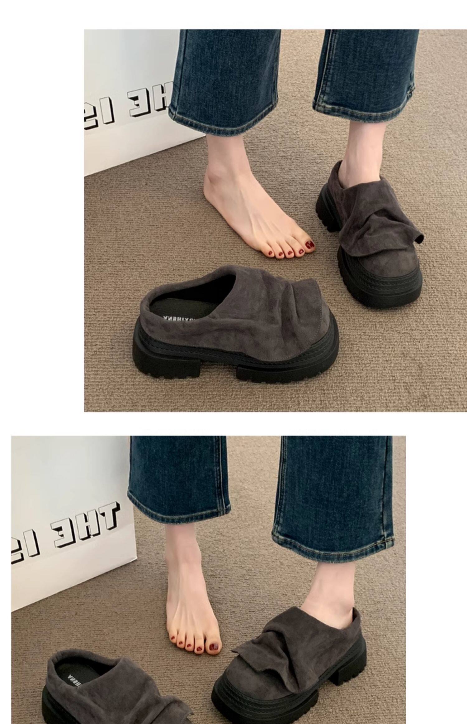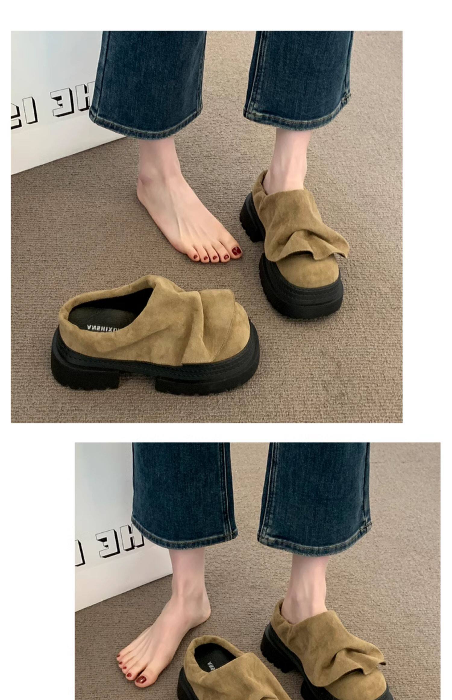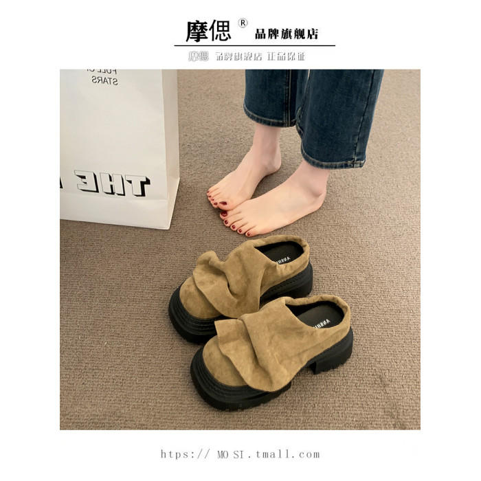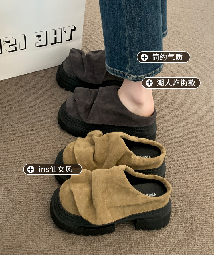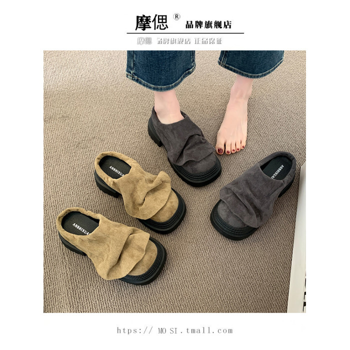 歐貨松糕厚底增高勃肯鞋包頭半拖鞋女外穿2025新款夏季醜萌涼拖鞋