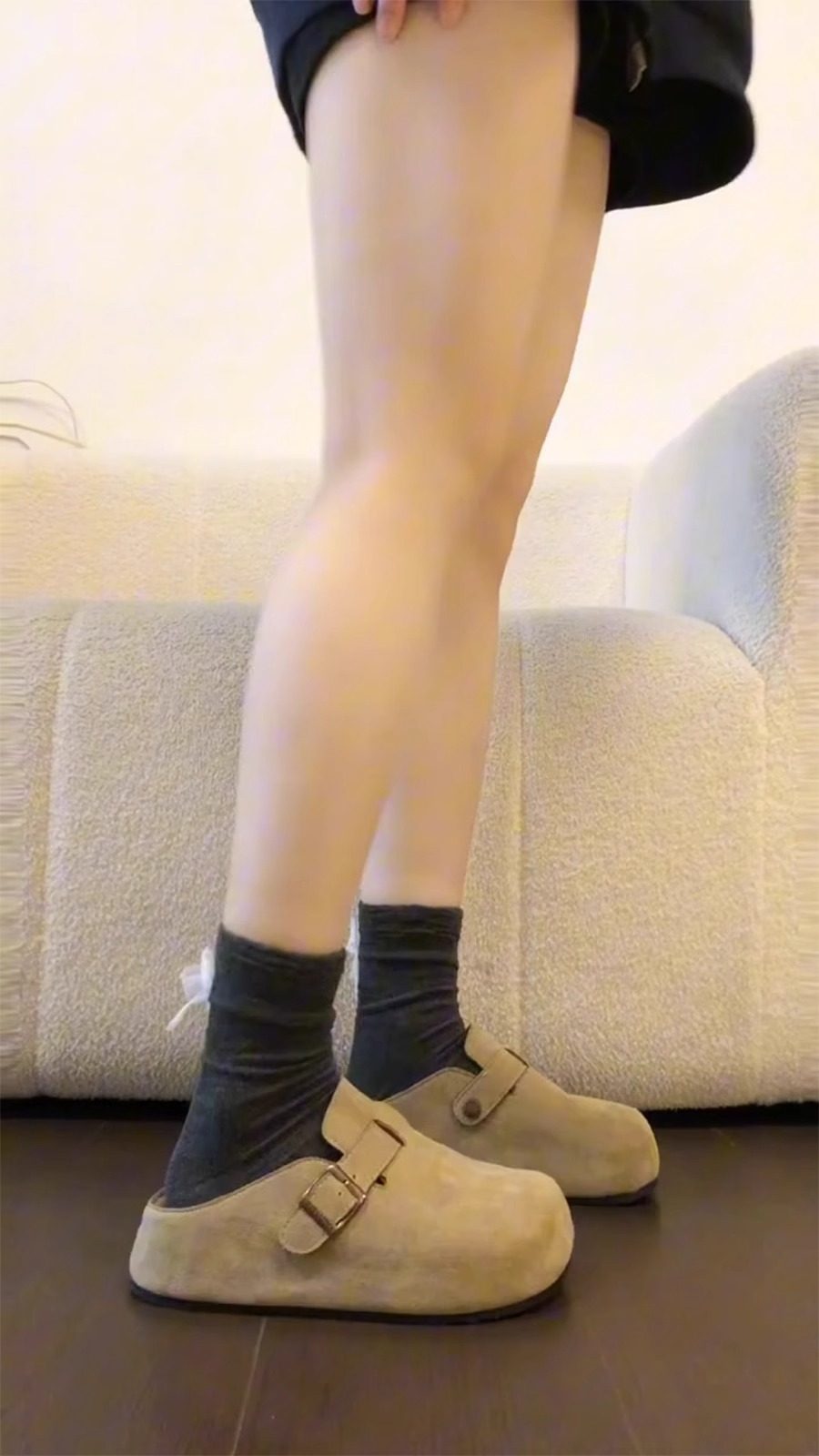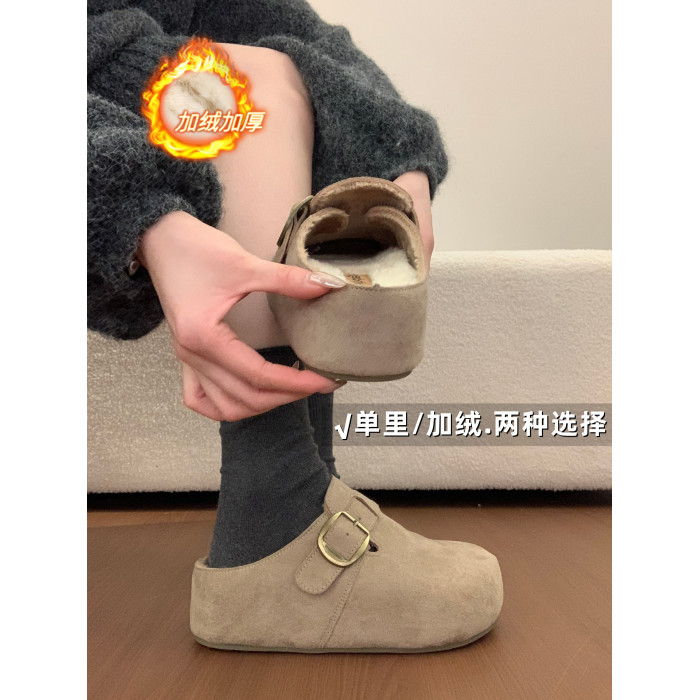 厚底勃肯鞋女2025秋冬新款加絨一腳蹬包頭半拖鞋外穿毛毛雪地棉拖