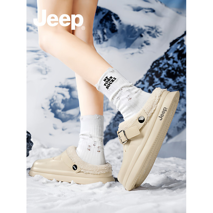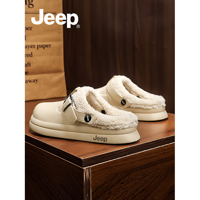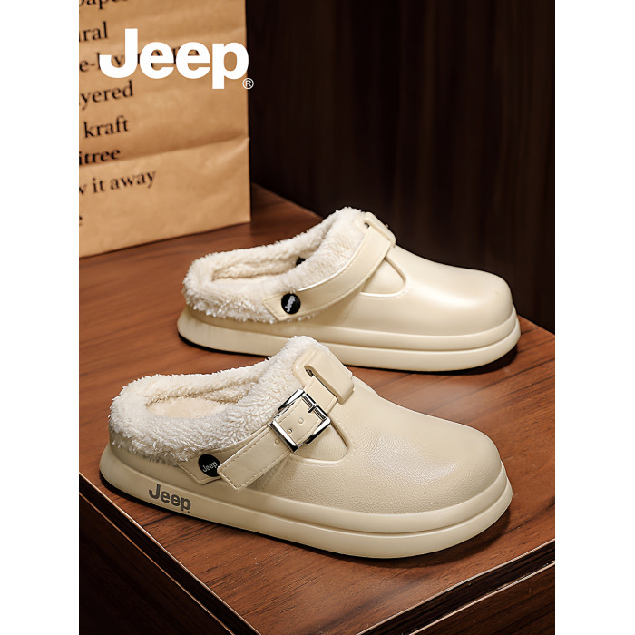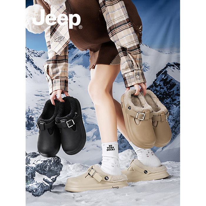 JEEP加絨勃肯鞋女冬外穿2025新款毛毛棉拖冬季半拖厚底洞洞棉拖鞋
