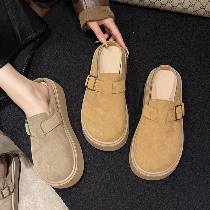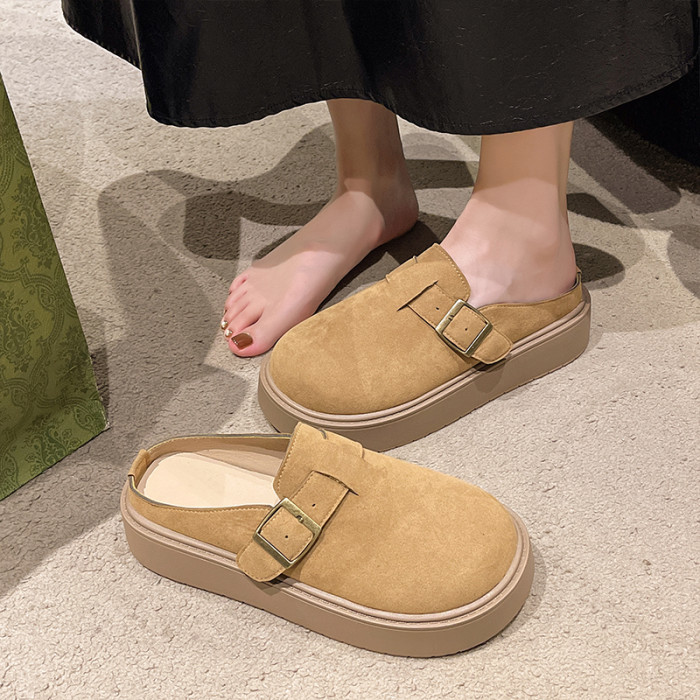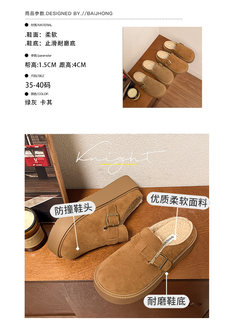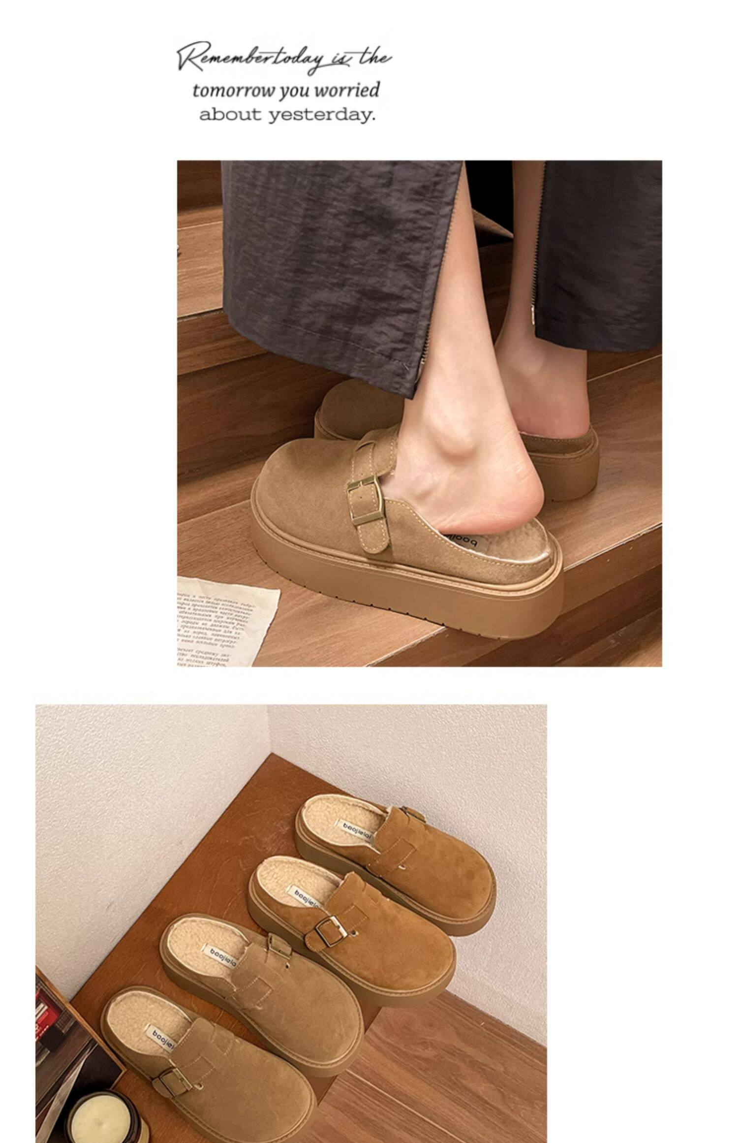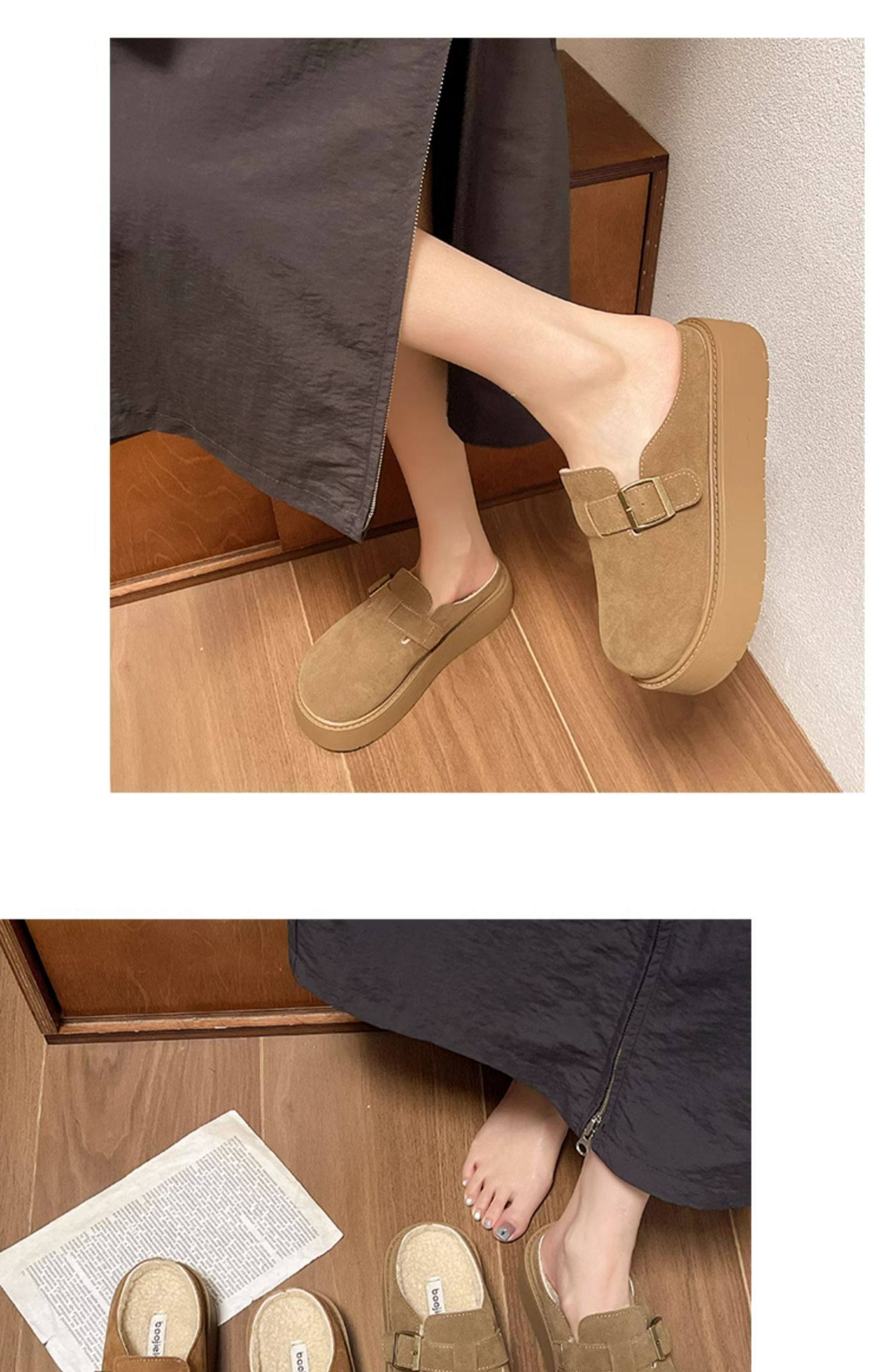 松糕厚底勃肯鞋女2025新款春季一腳蹬穆勒包頭半拖單鞋軟底博肯鞋