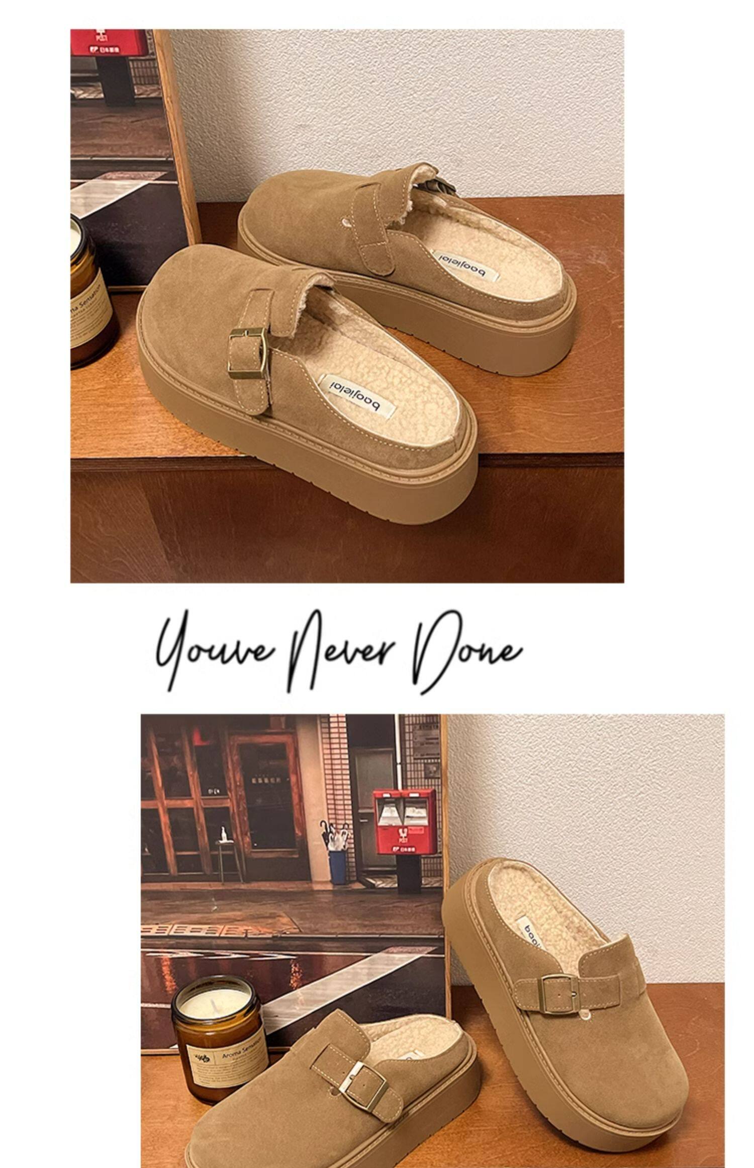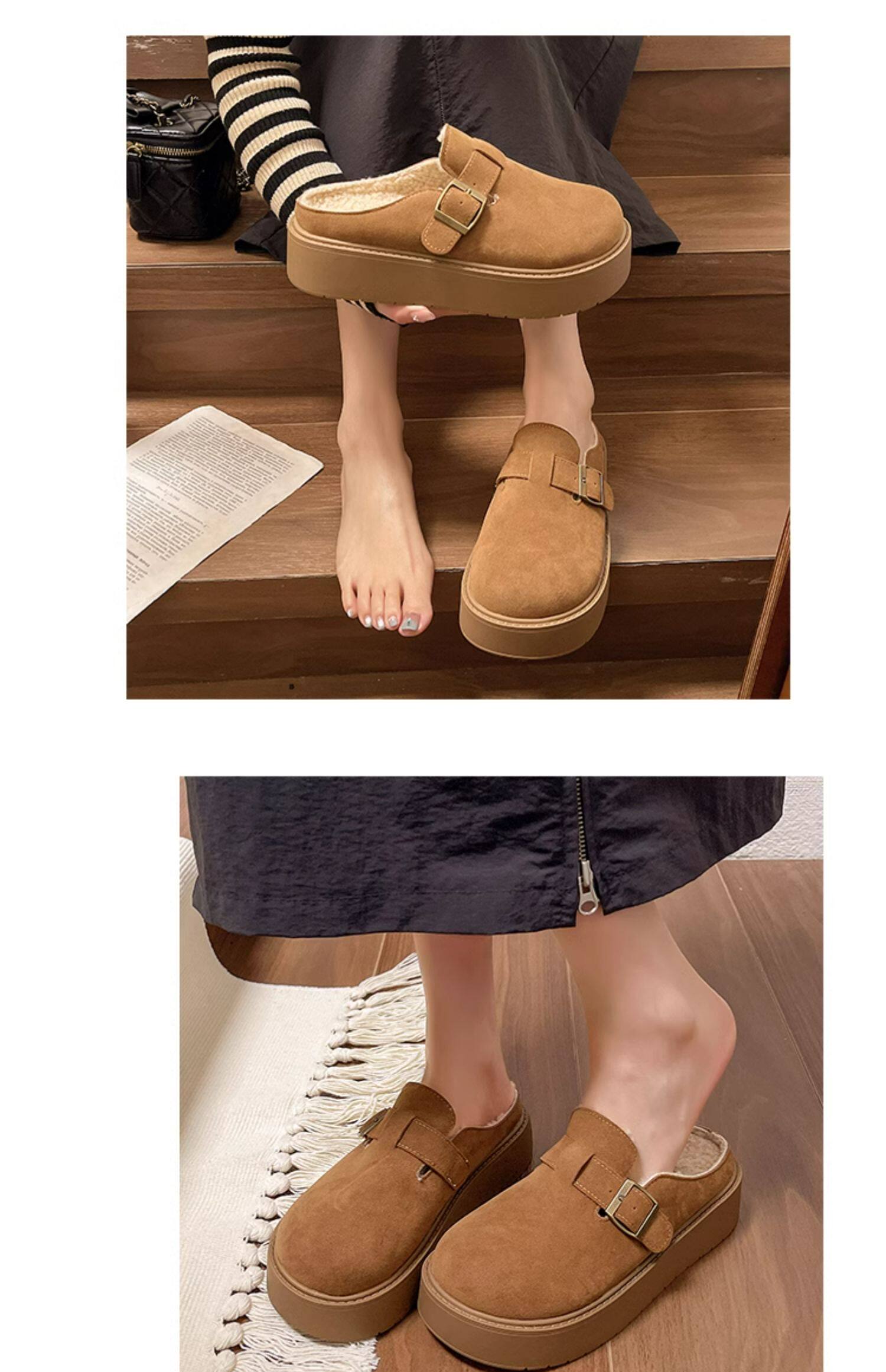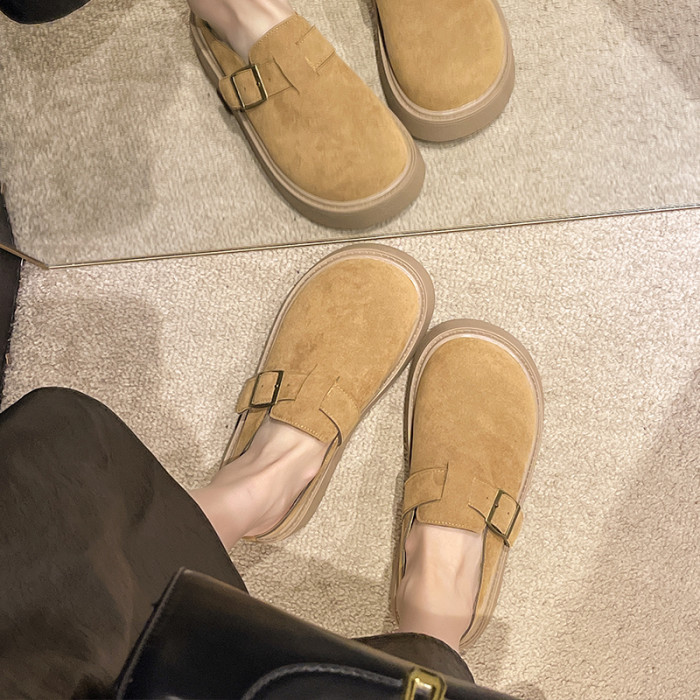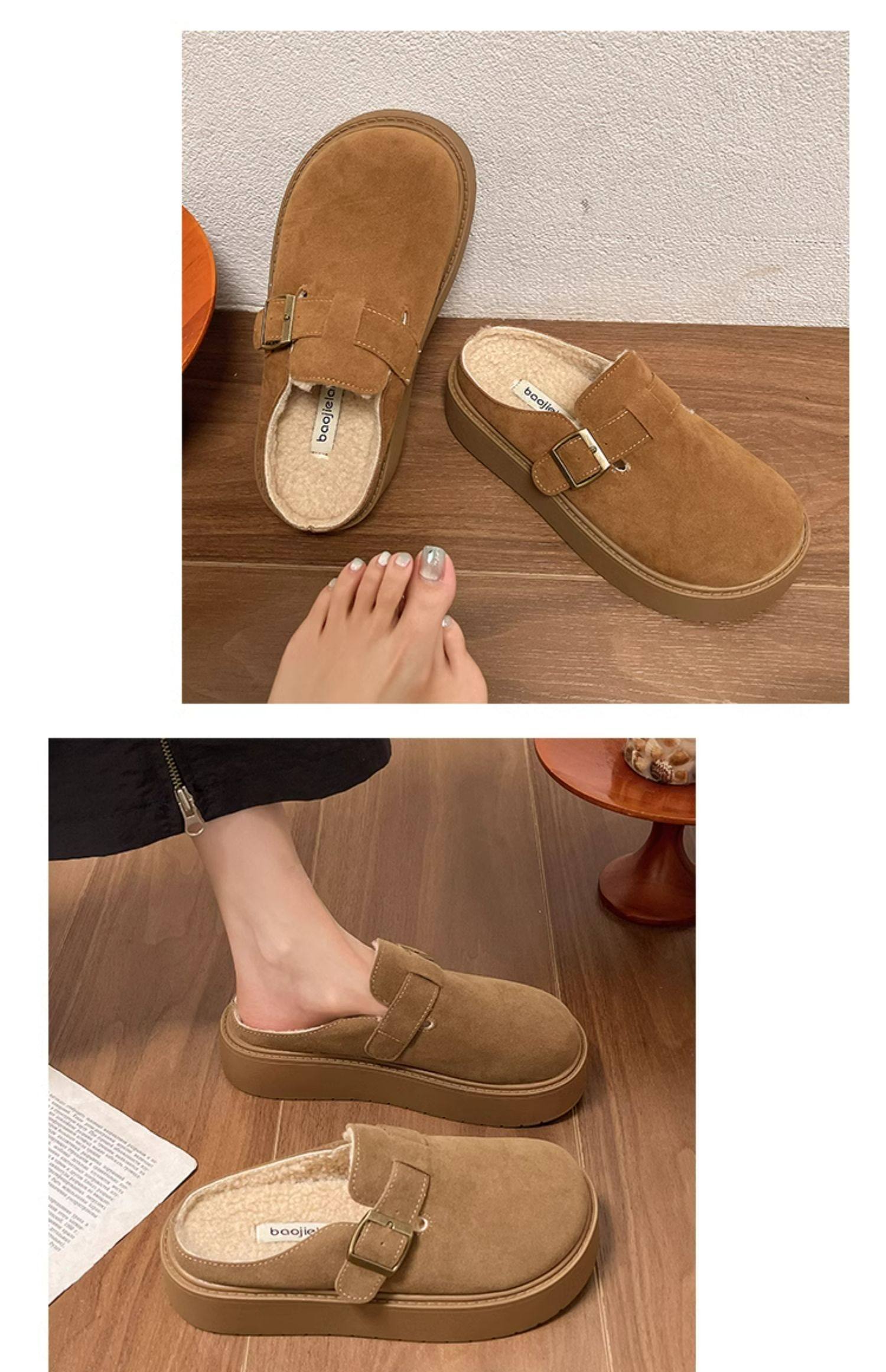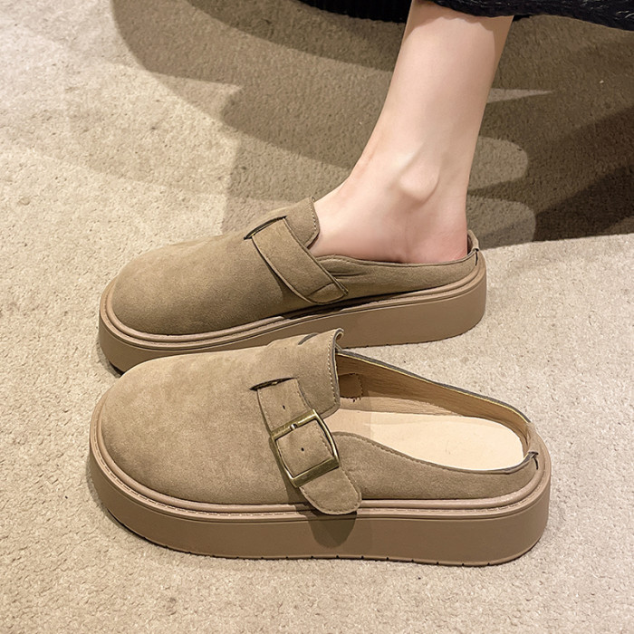 松糕厚底勃肯鞋女2025新款春季一腳蹬穆勒包頭半拖單鞋軟底博肯鞋