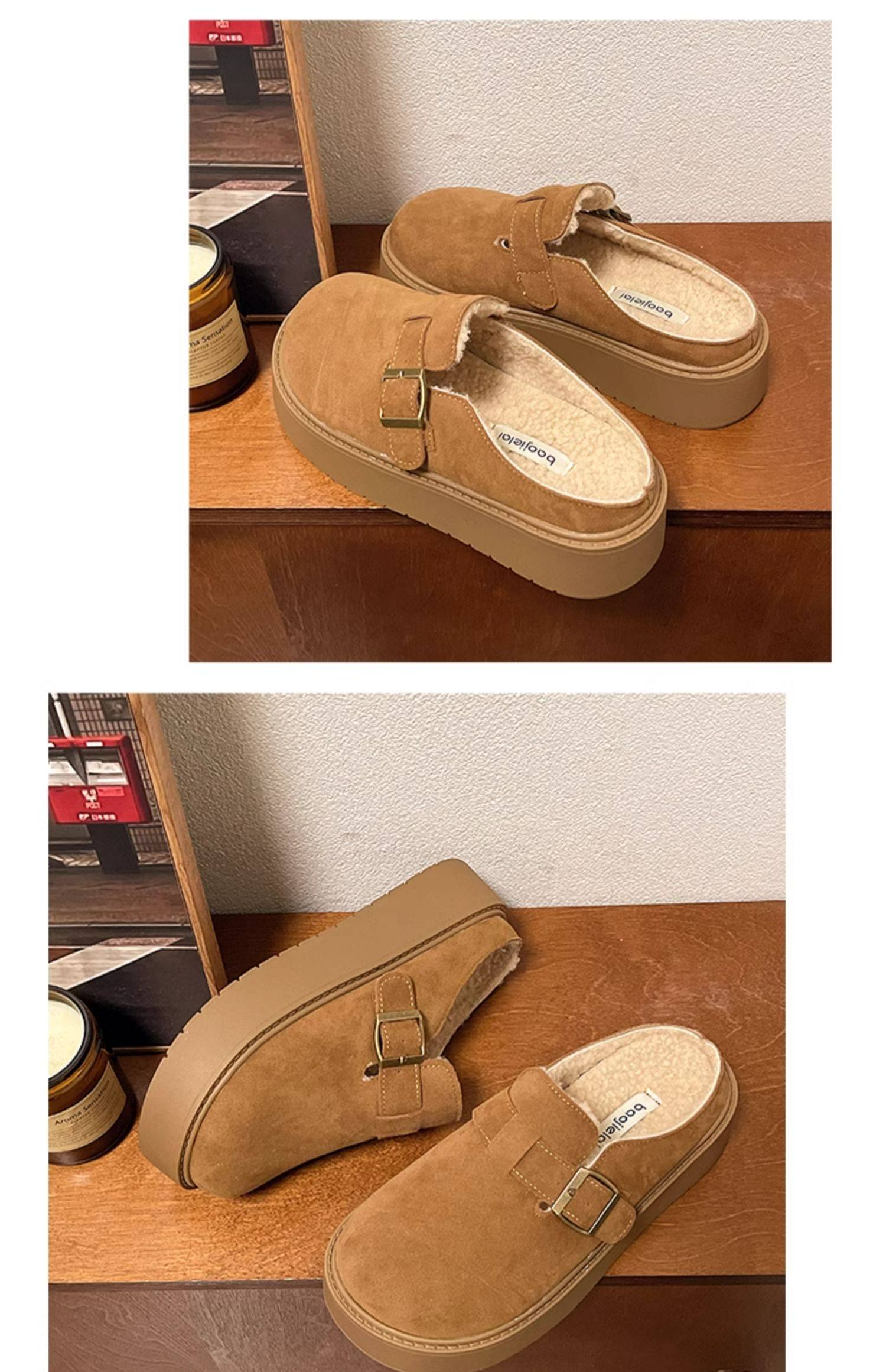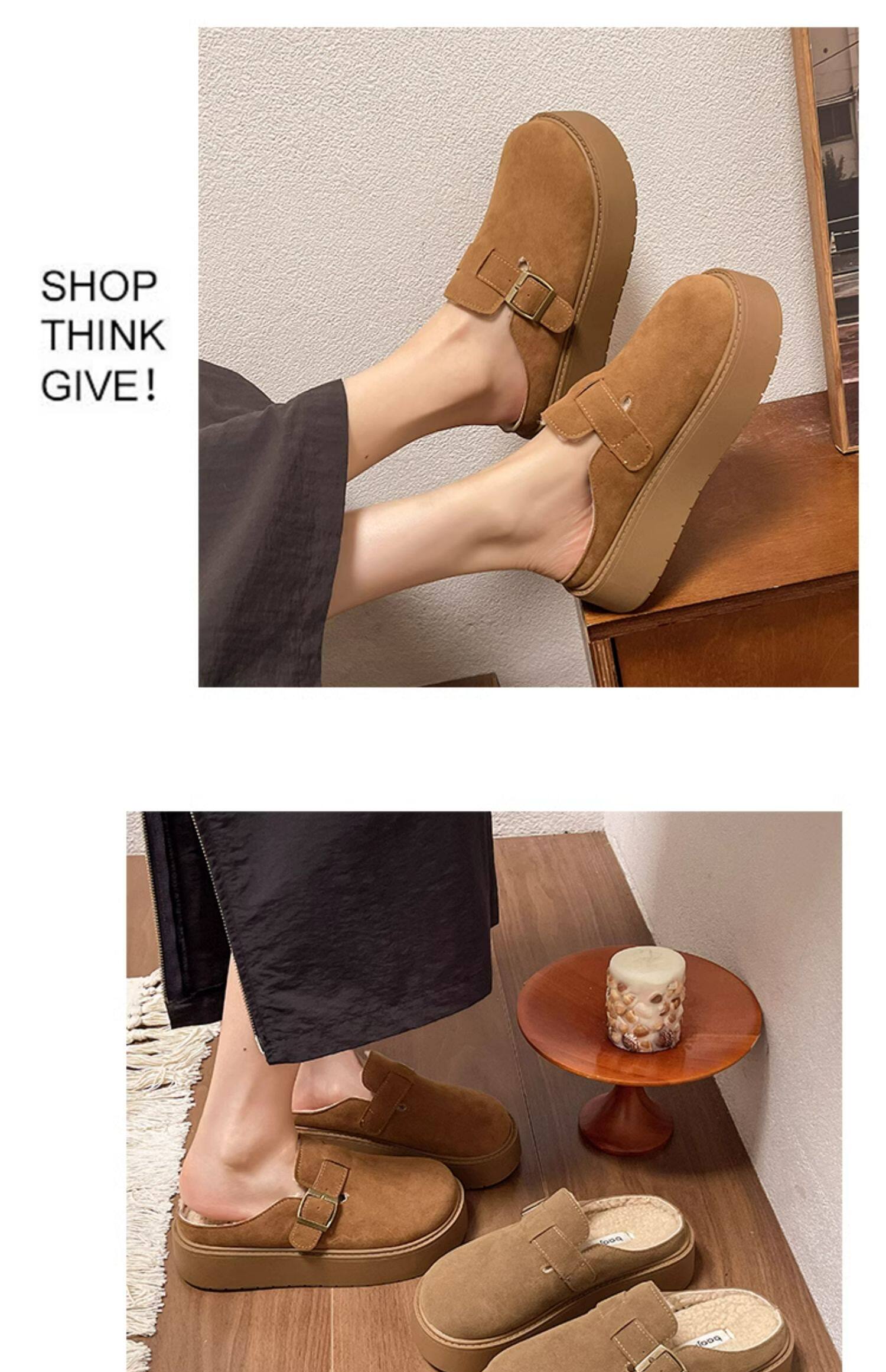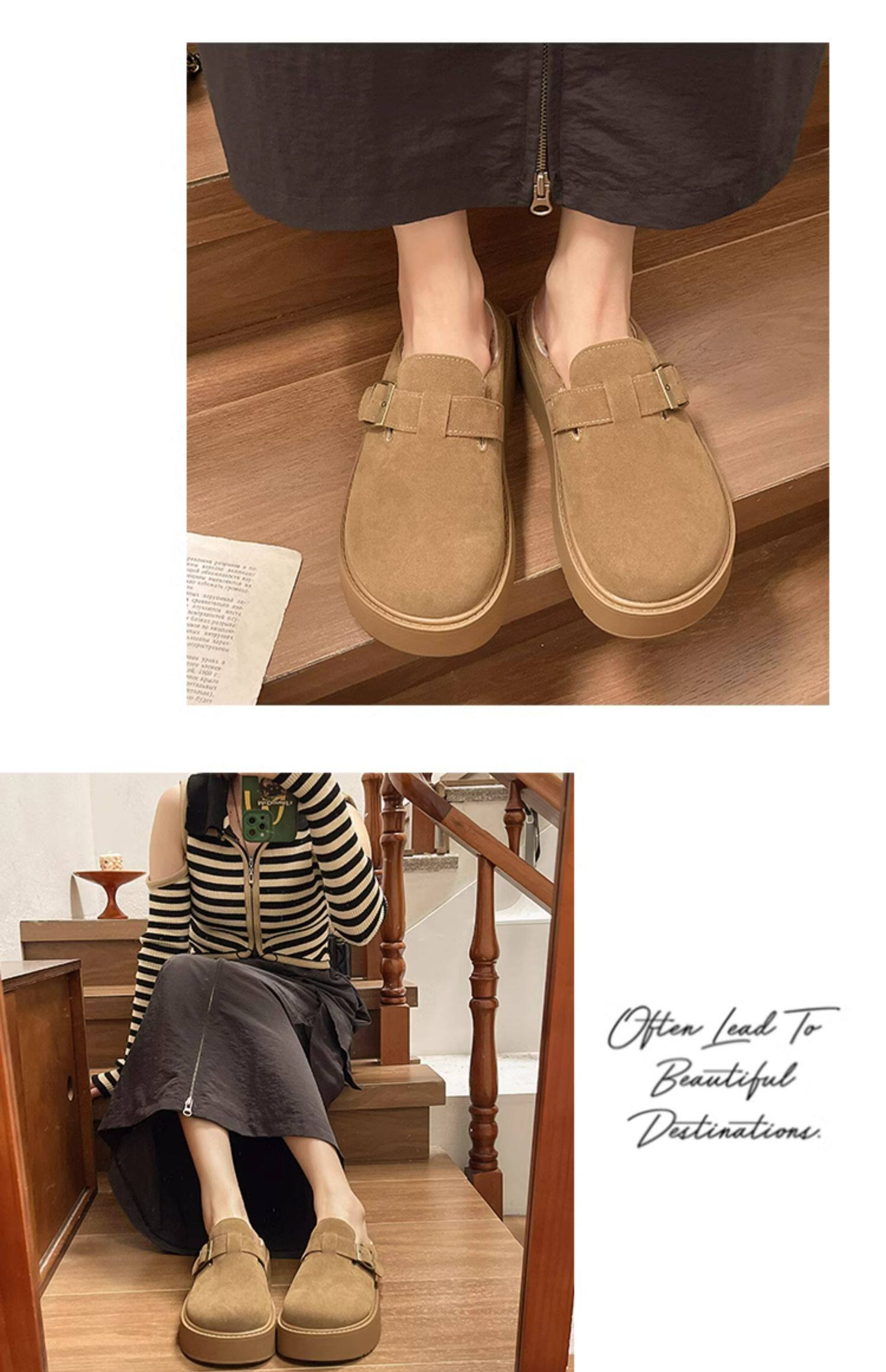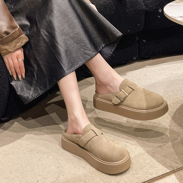 松糕厚底勃肯鞋女2025新款春季一腳蹬穆勒包頭半拖單鞋軟底博肯鞋