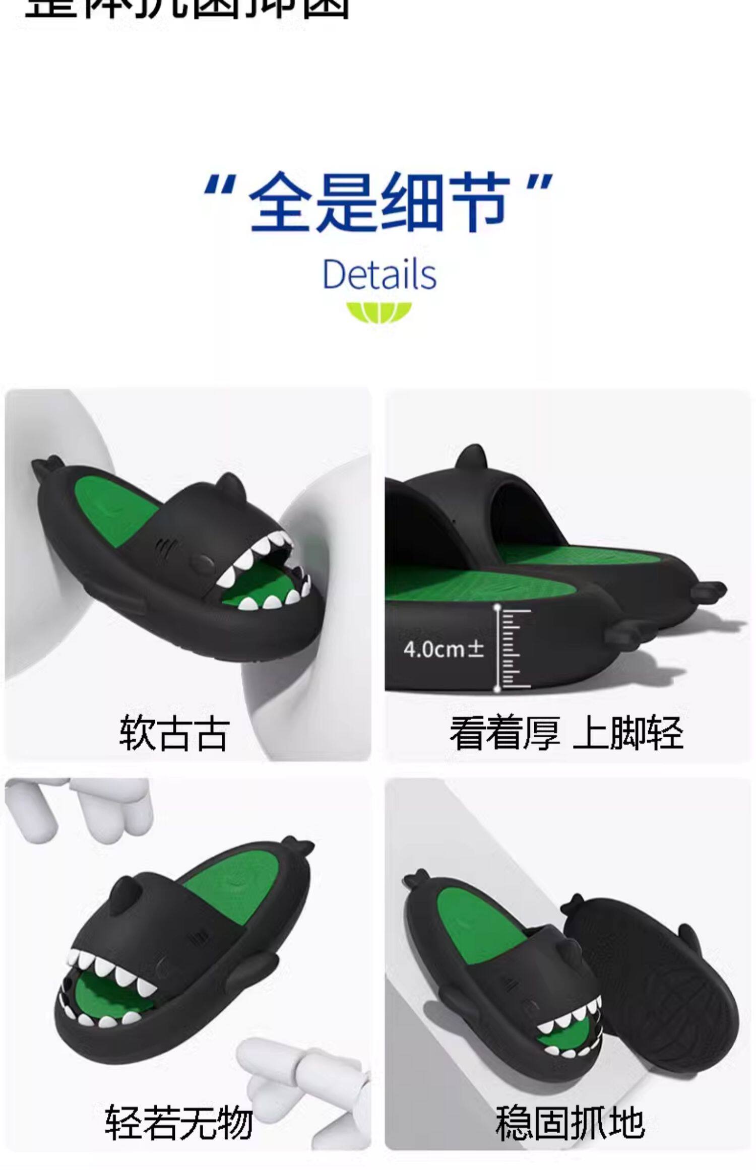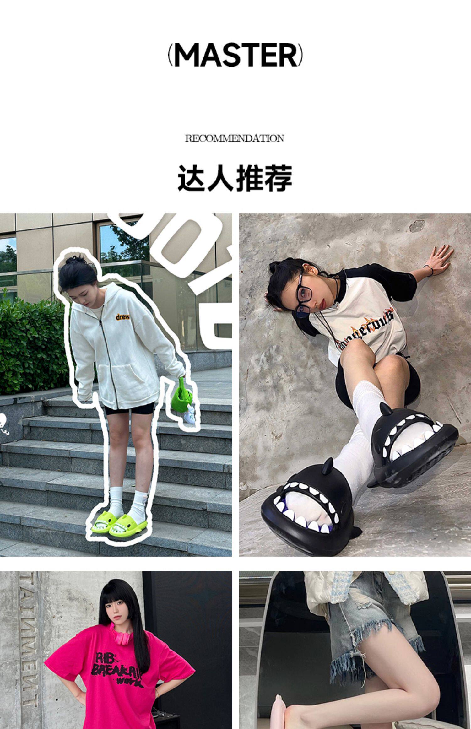 chikoku鯊魚拖鞋女夏季外穿運動厚軟底防滑居家抑菌可愛情侶ins潮