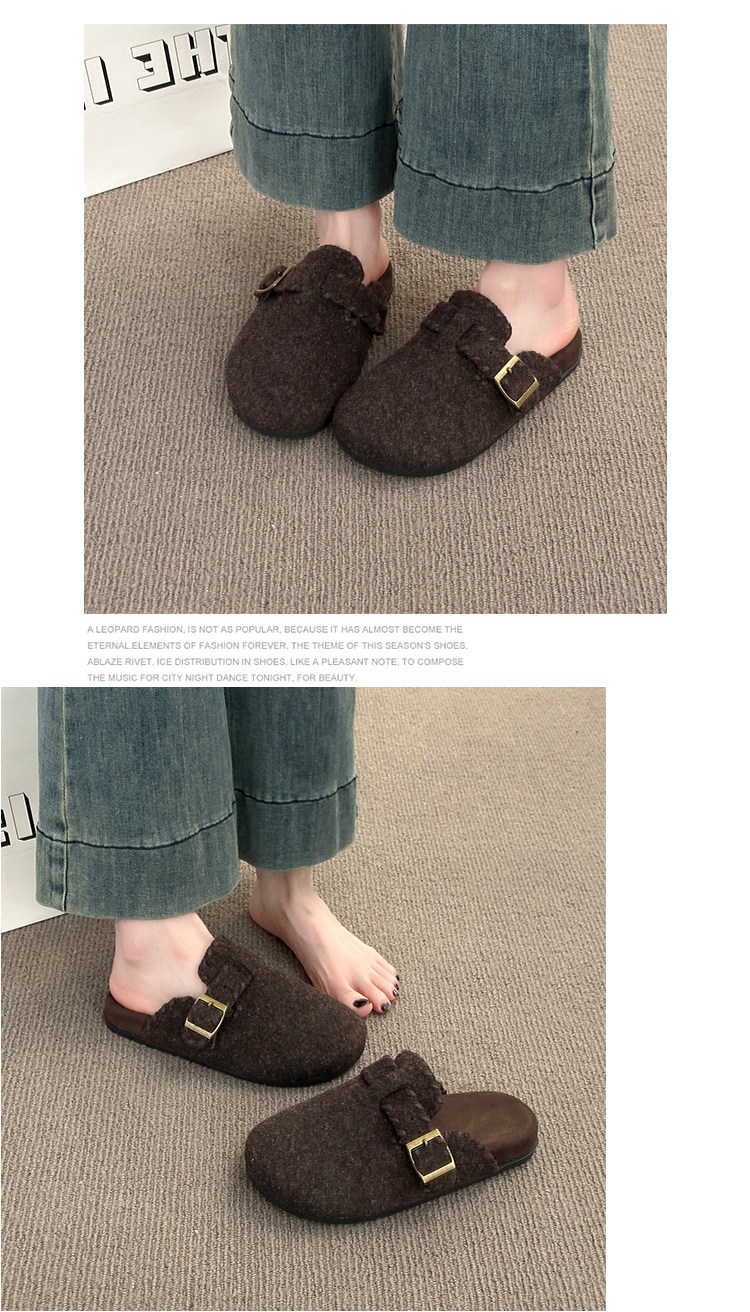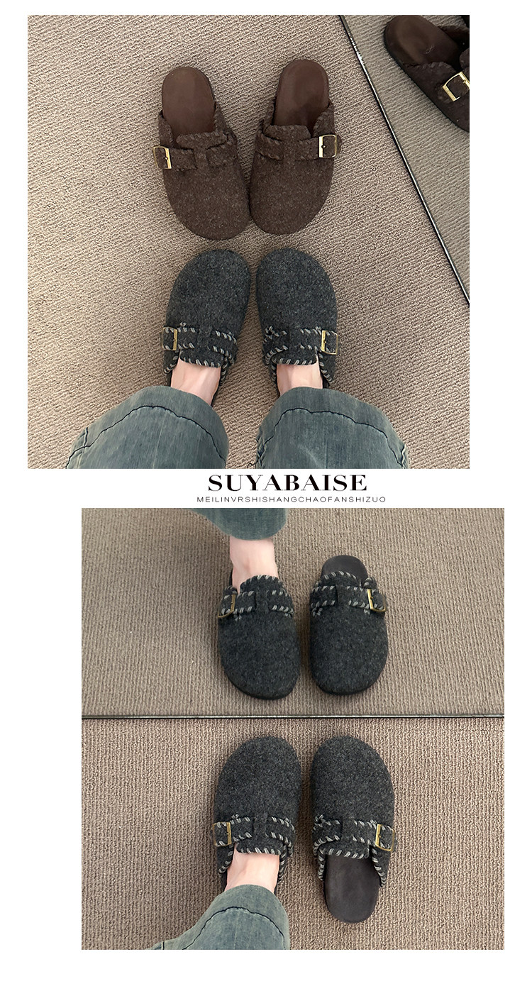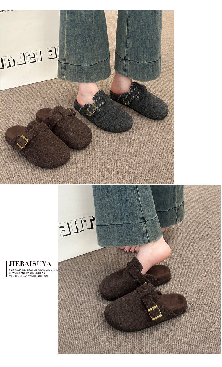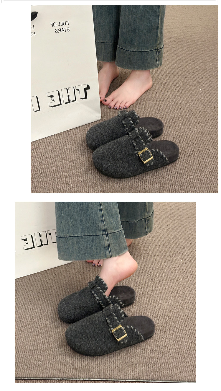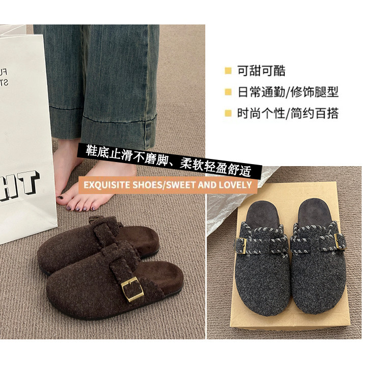 厚底灰色勃肯鞋包頭毛毛拖鞋女外穿2025新款秋冬一腳蹬半拖棉拖鞋