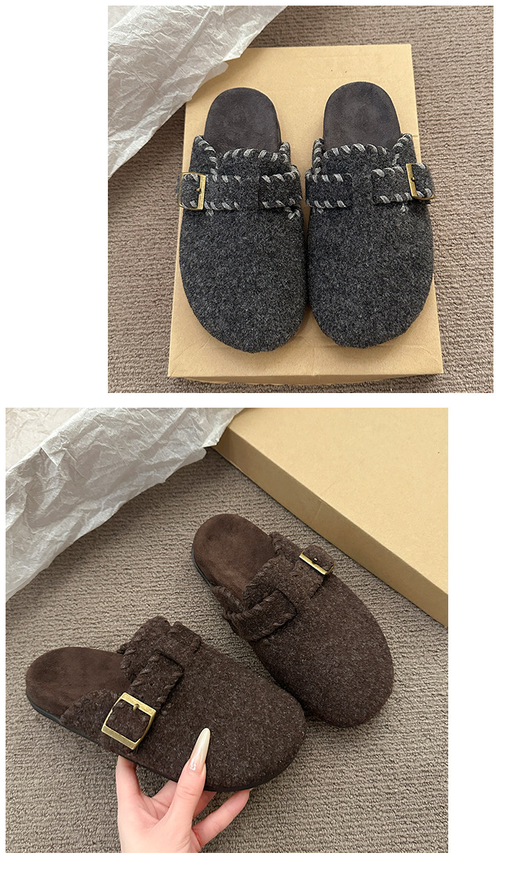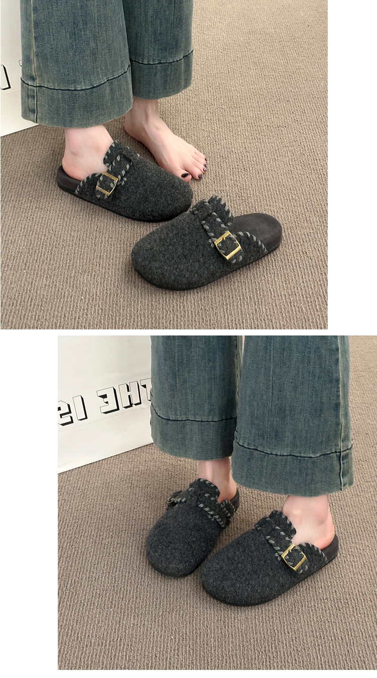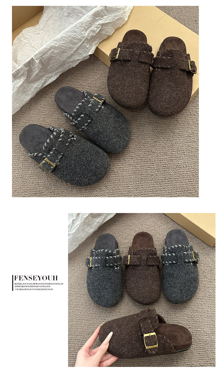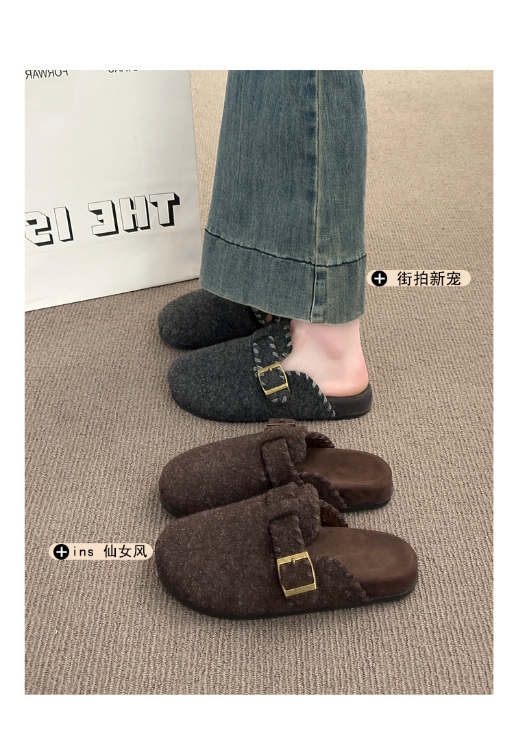 厚底灰色勃肯鞋包頭毛毛拖鞋女外穿2025新款秋冬一腳蹬半拖棉拖鞋