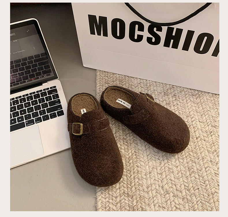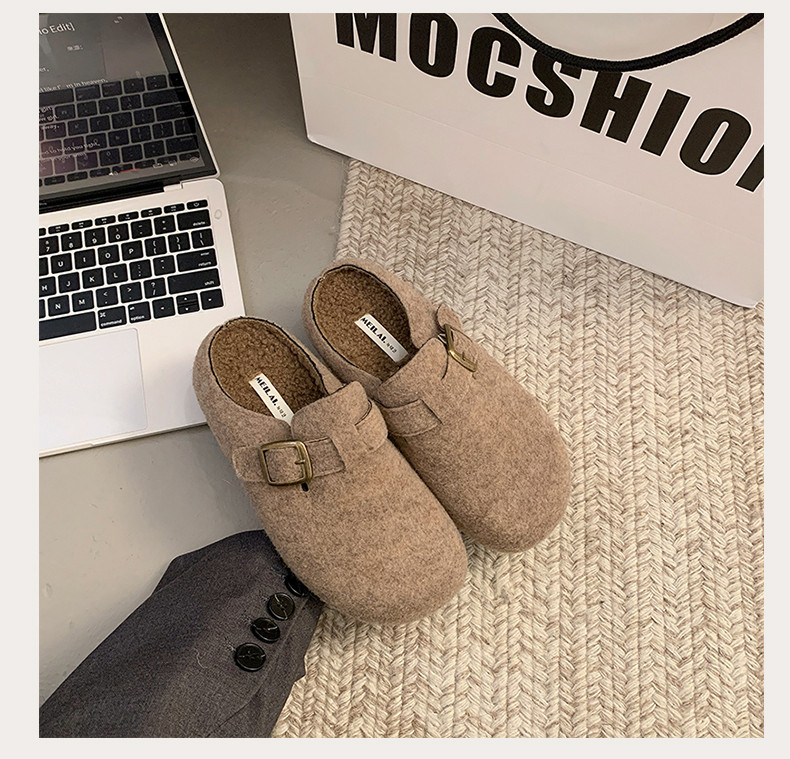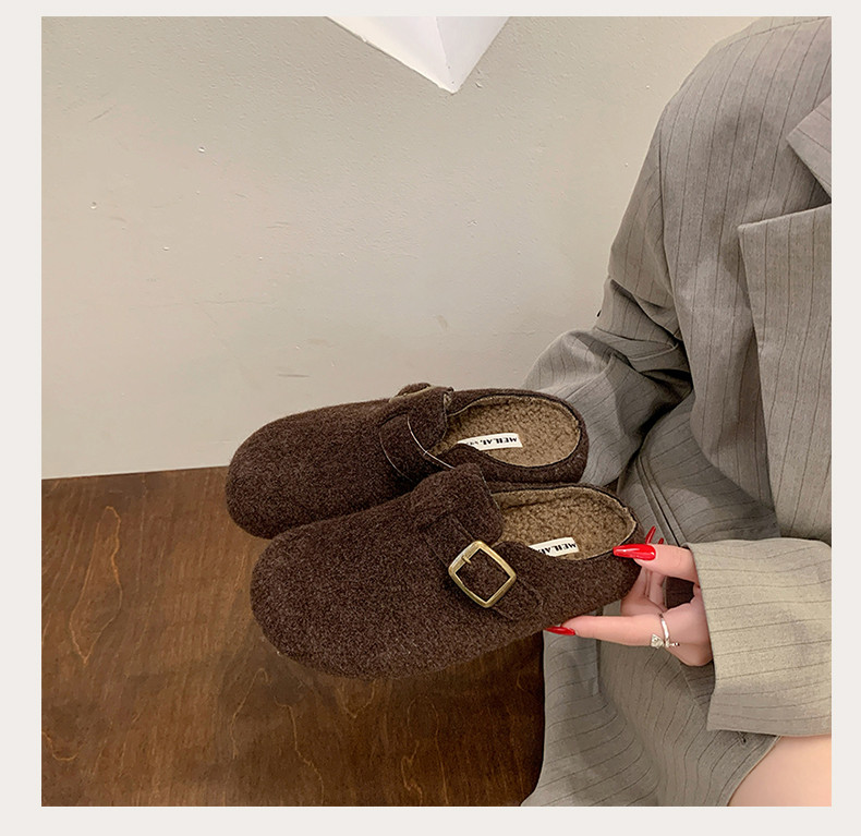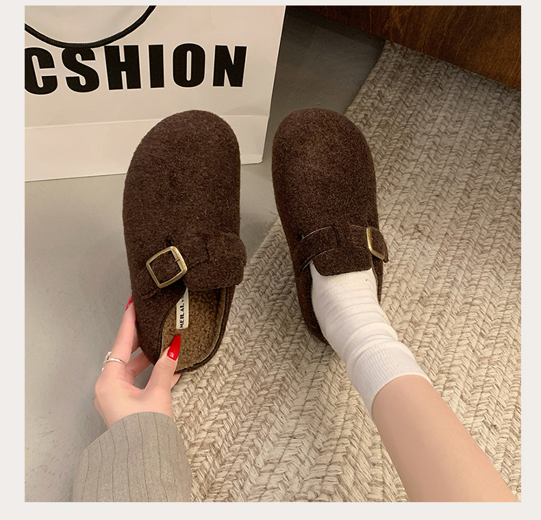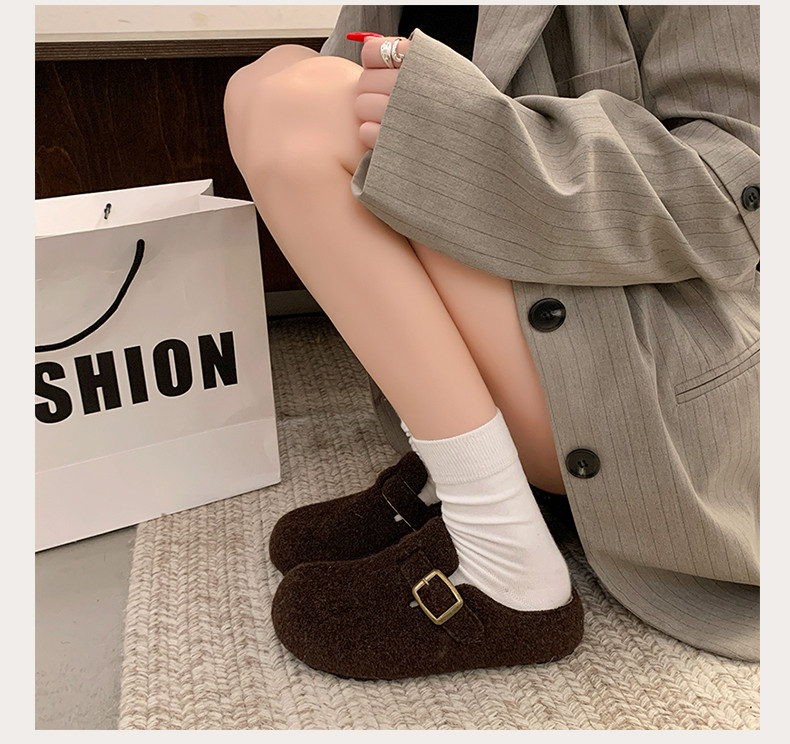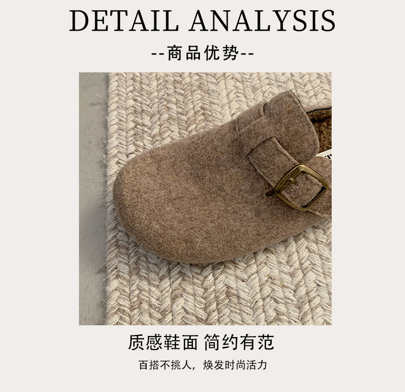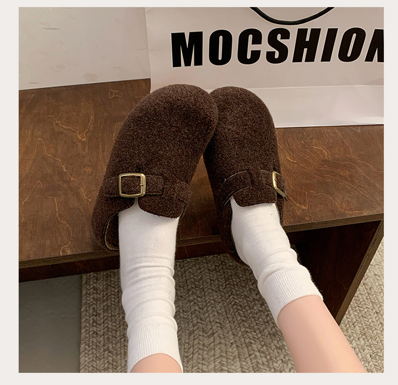 復古勃肯鞋毛毛拖鞋女外穿2025新款秋冬一腳蹬懶人鞋加絨包頭棉拖