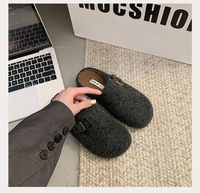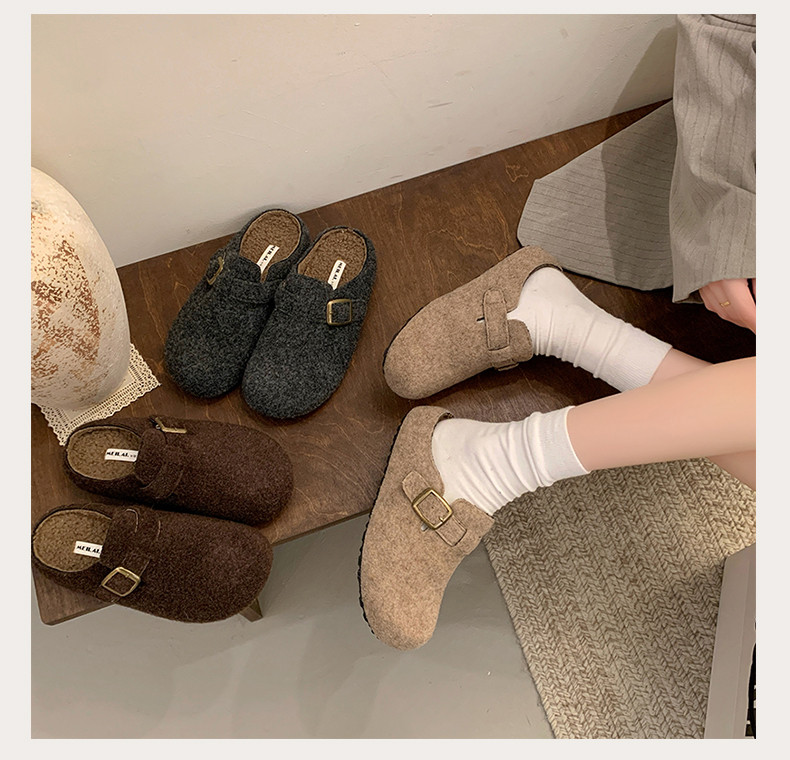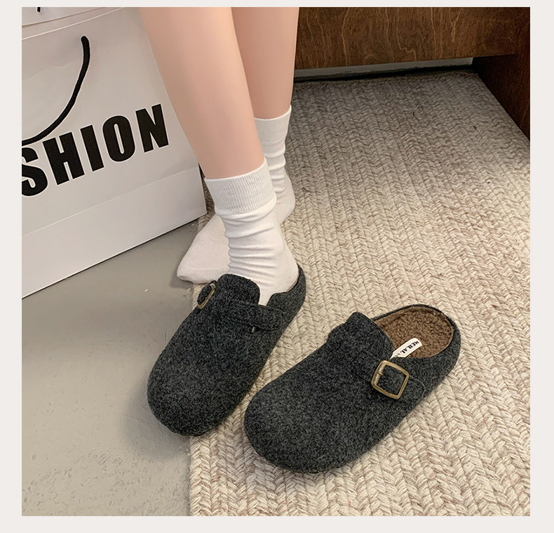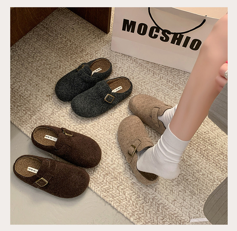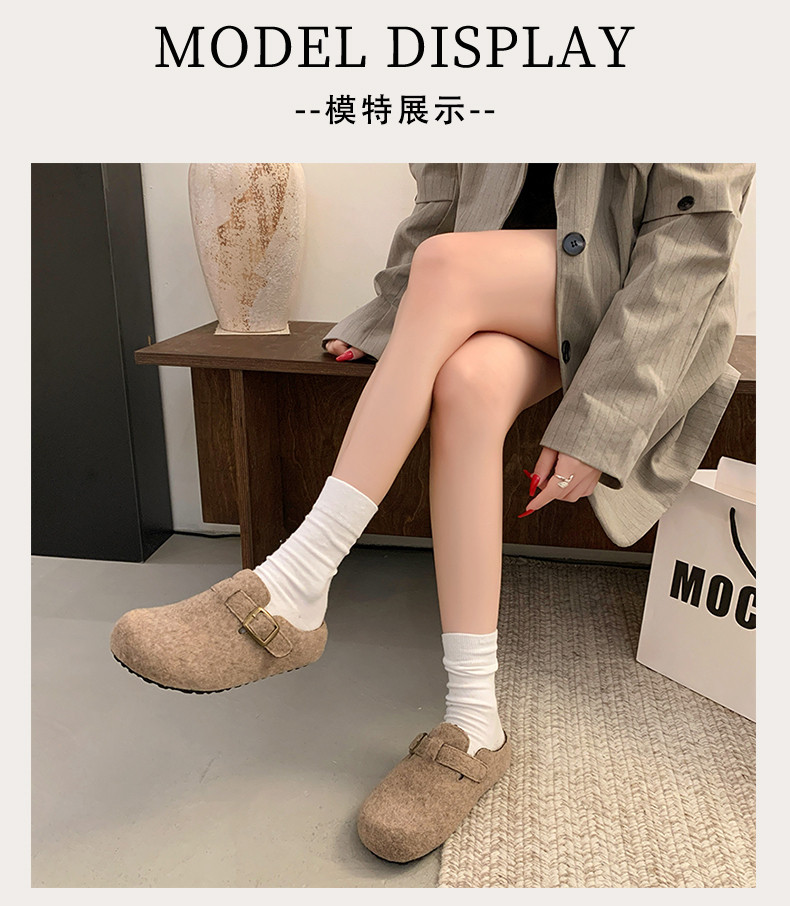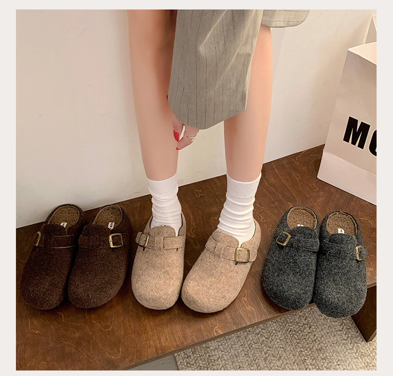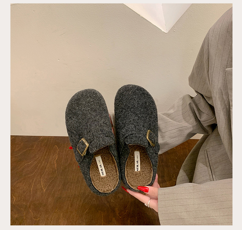 復古勃肯鞋毛毛拖鞋女外穿2025新款秋冬一腳蹬懶人鞋加絨包頭棉拖