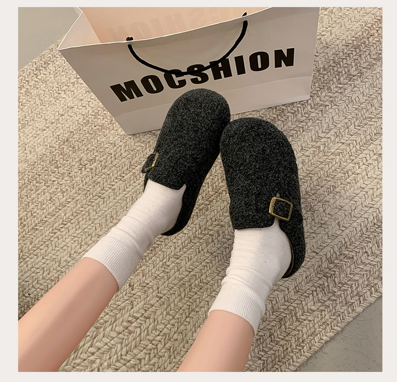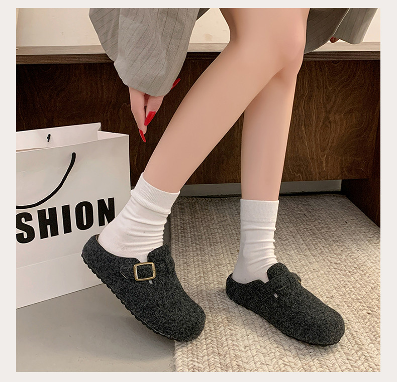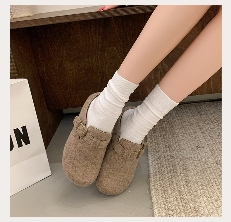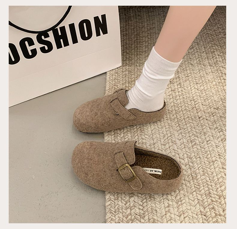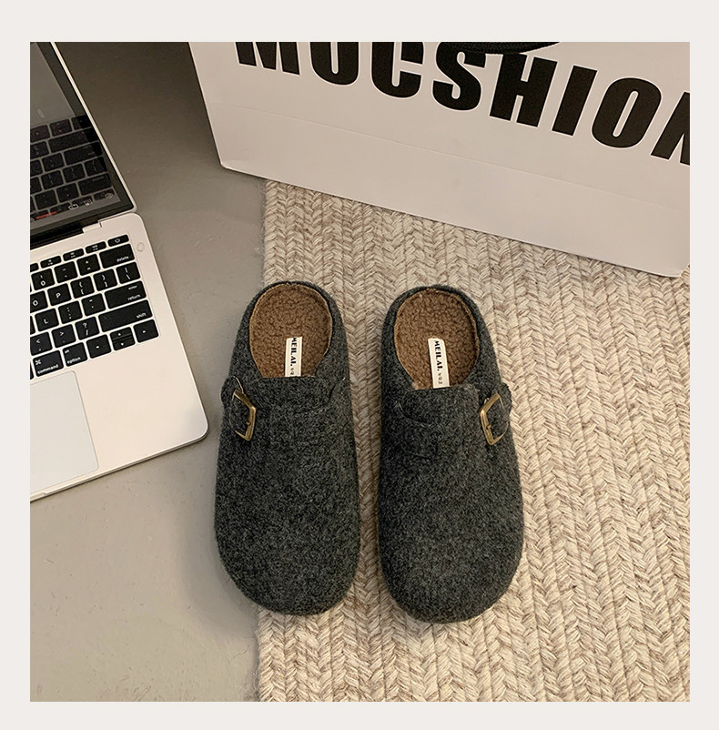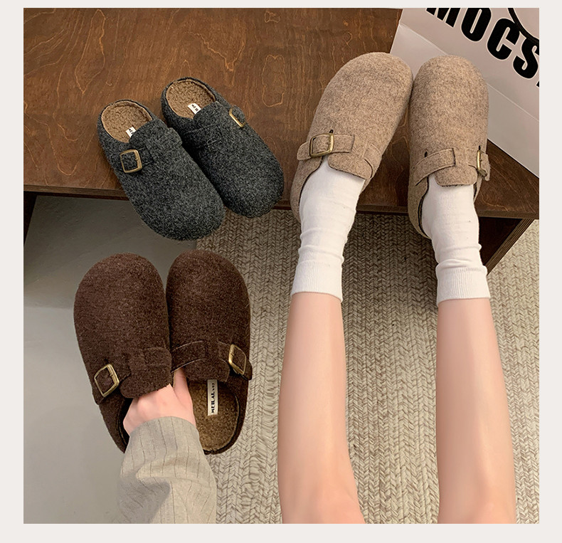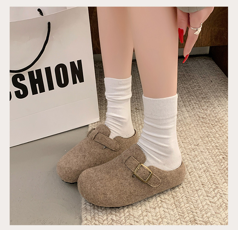 復古勃肯鞋毛毛拖鞋女外穿2025新款秋冬一腳蹬懶人鞋加絨包頭棉拖
